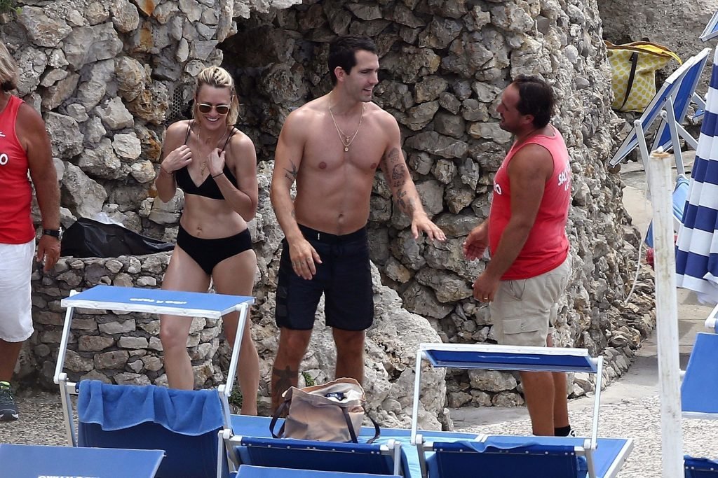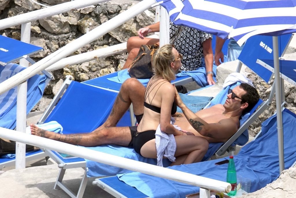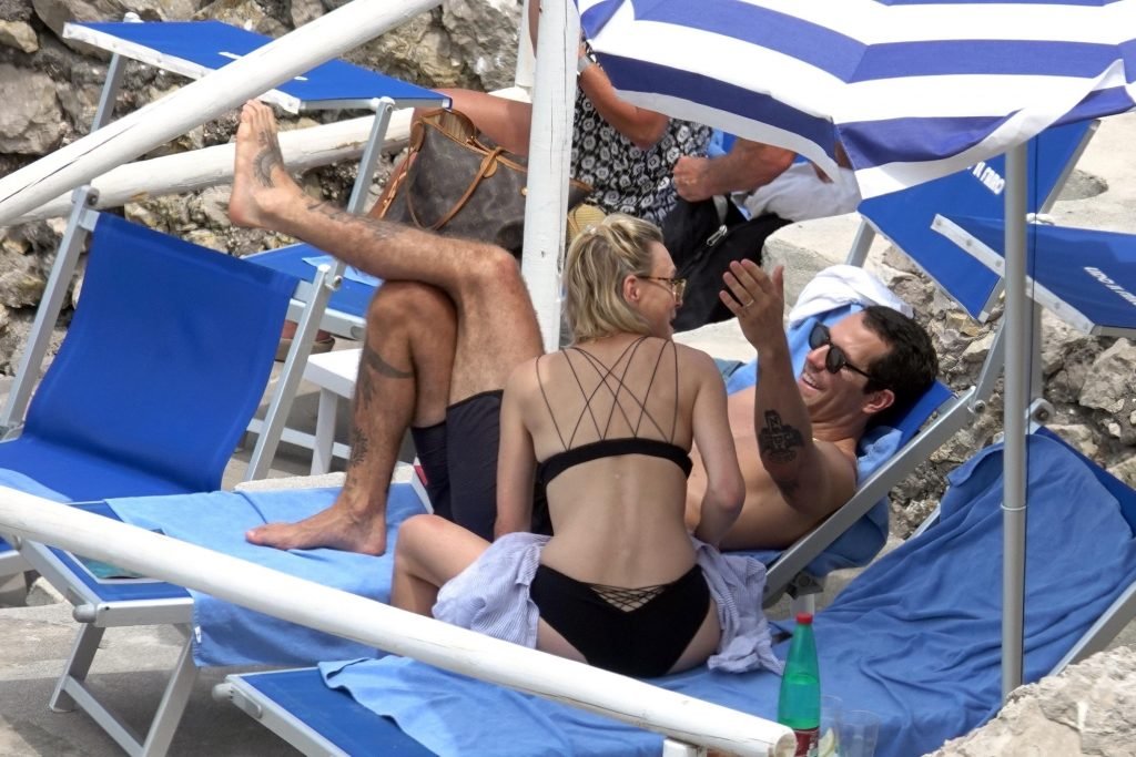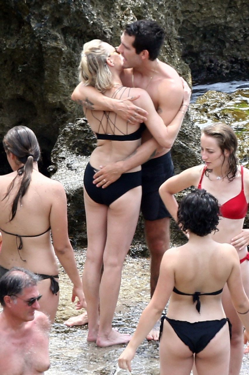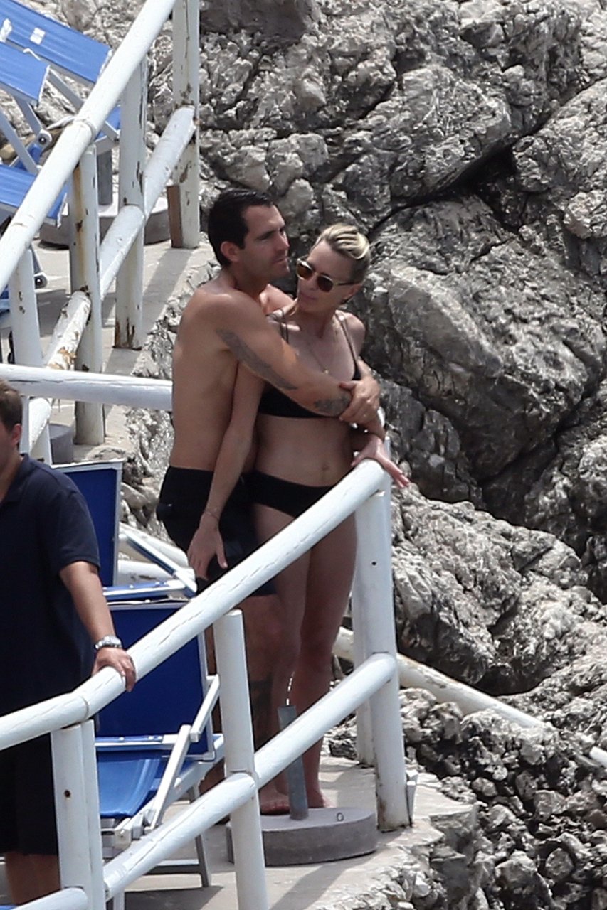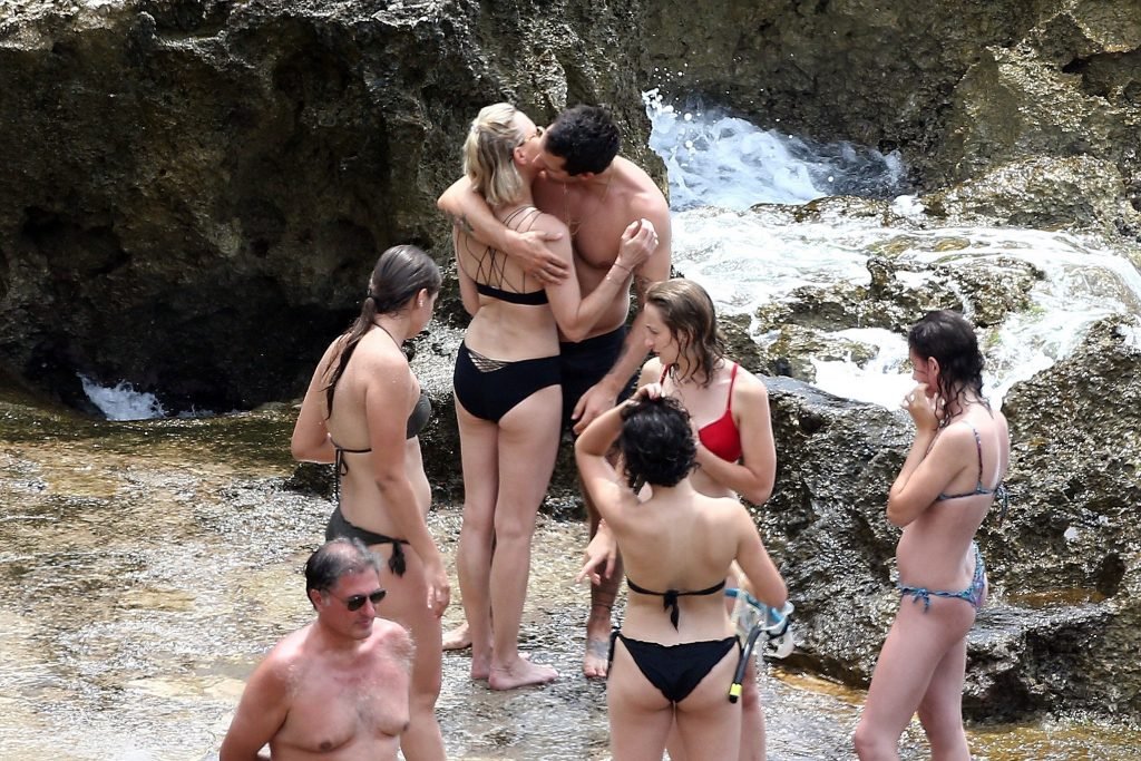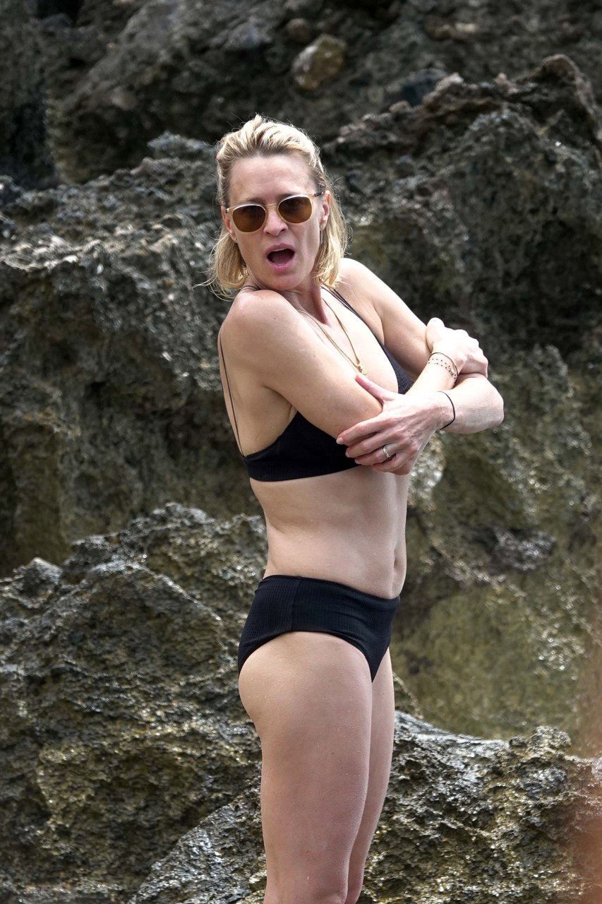 Robin Wright et le cadre de Saint Laurent Clément Giraudet profitent ensemble de vacances romantiques. Le duo est vu exhibant leurs corps en maillot de bain alors qu’ils profitent de la zone de baignade de leur hôtel, allant même jusqu’à se montrer affectueux avec des câlins et des baisers, 22/07/2018.
