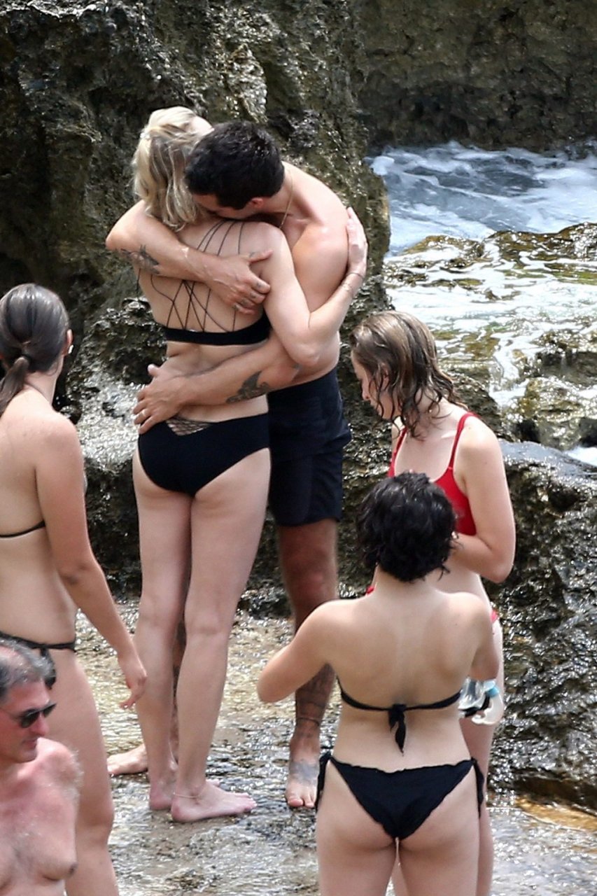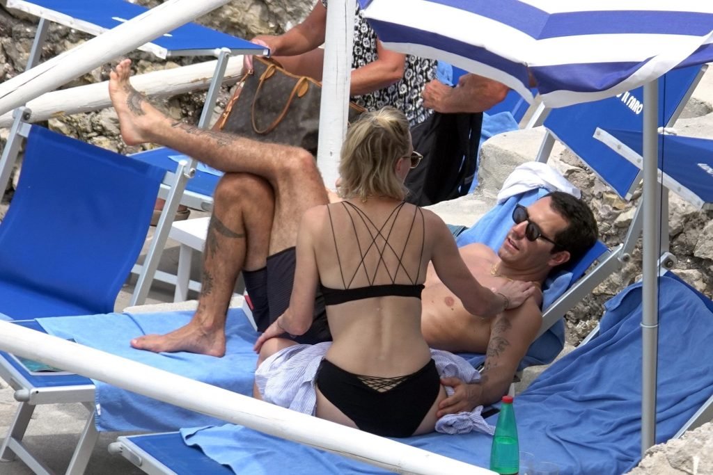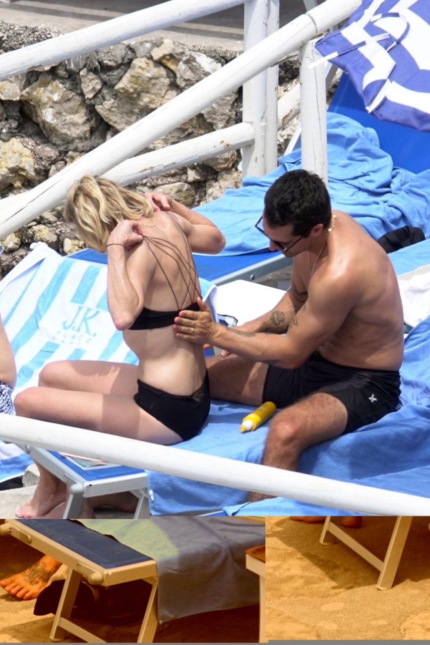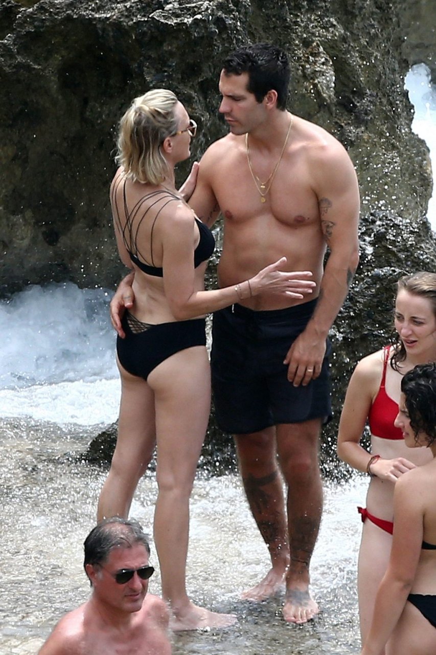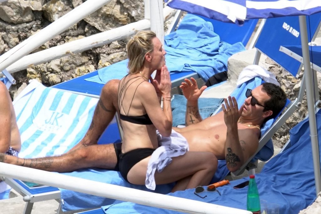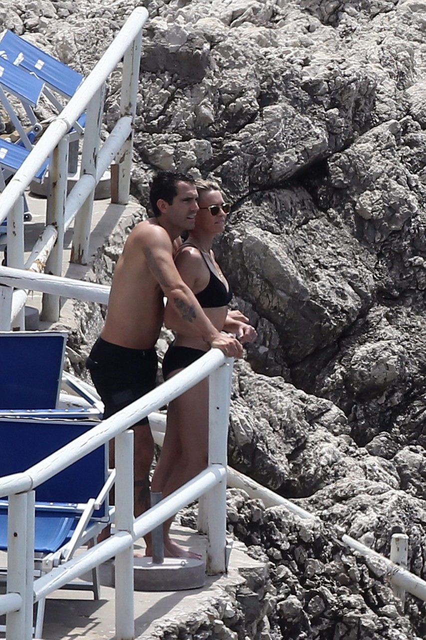 Robin Wright et le cadre de Saint Laurent Clément Giraudet profitent ensemble de vacances romantiques. Le duo est vu exhibant leurs corps en maillot de bain alors qu’ils profitent de la zone de baignade de leur hôtel, allant même jusqu’à se montrer affectueux avec des câlins et des baisers, 22/07/2018.