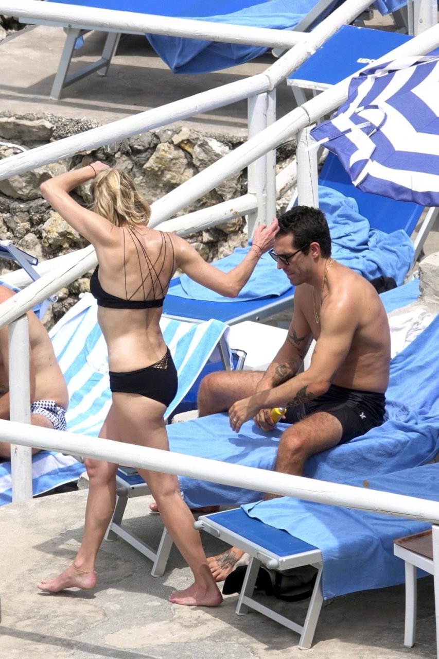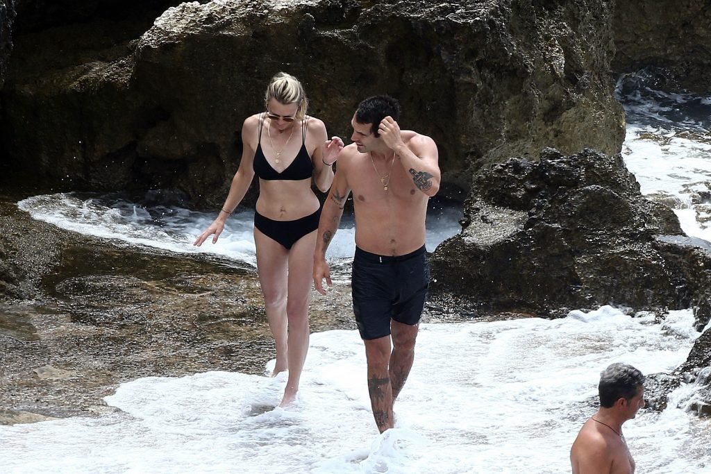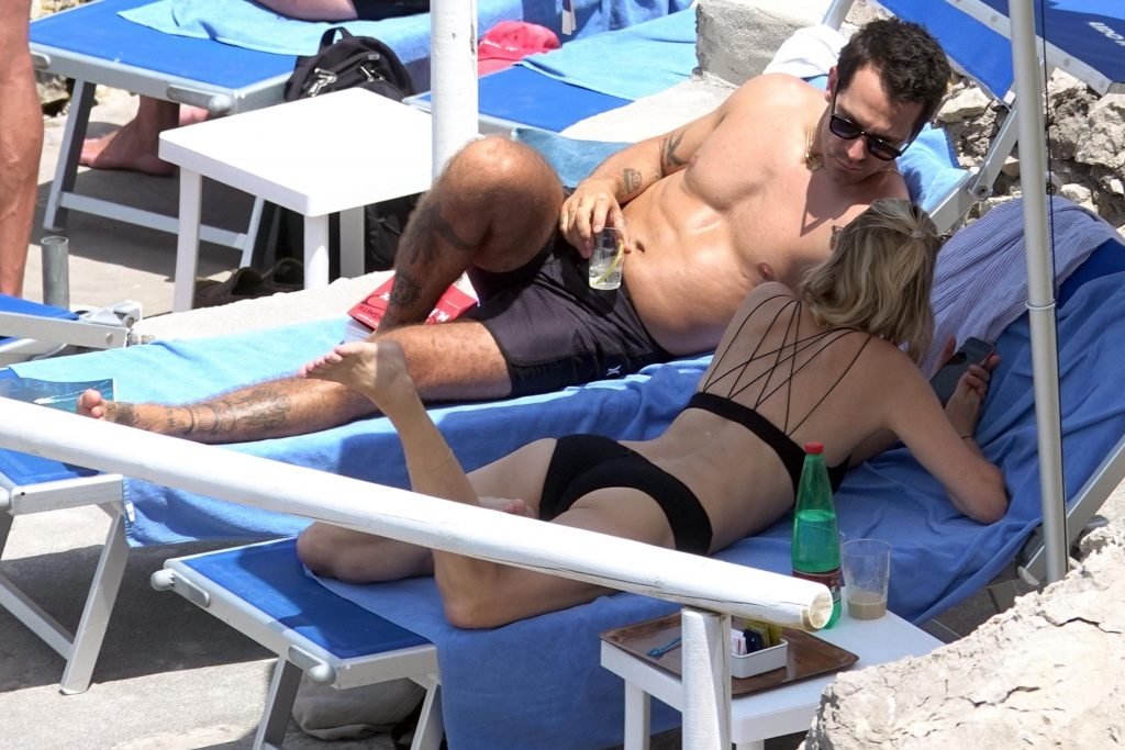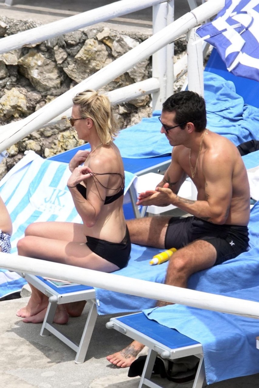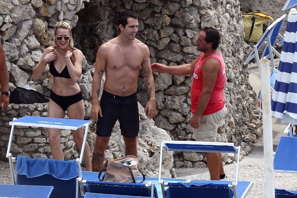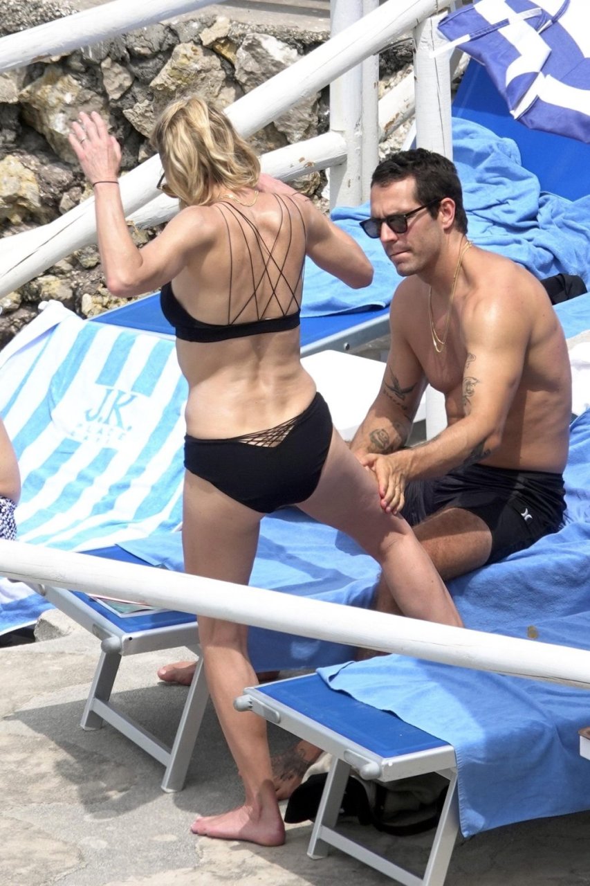 Robin Wright et le cadre de Saint Laurent Clément Giraudet profitent ensemble de vacances romantiques. Le duo est vu exhibant leurs corps en maillot de bain alors qu’ils profitent de la zone de baignade de leur hôtel, allant même jusqu’à se montrer affectueux avec des câlins et des baisers, 22/07/2018.