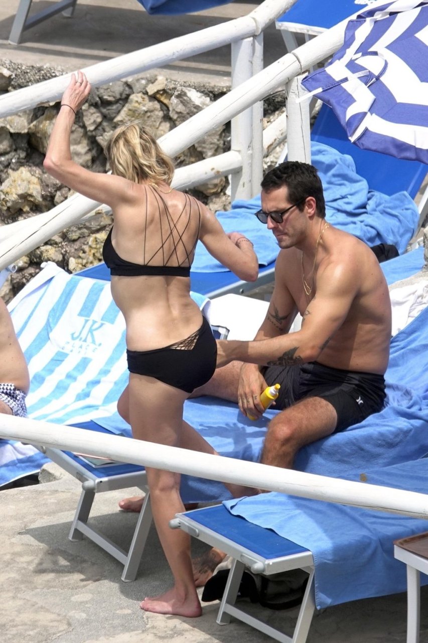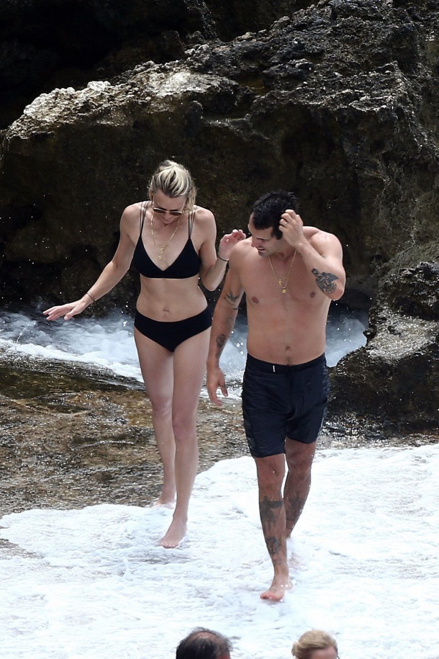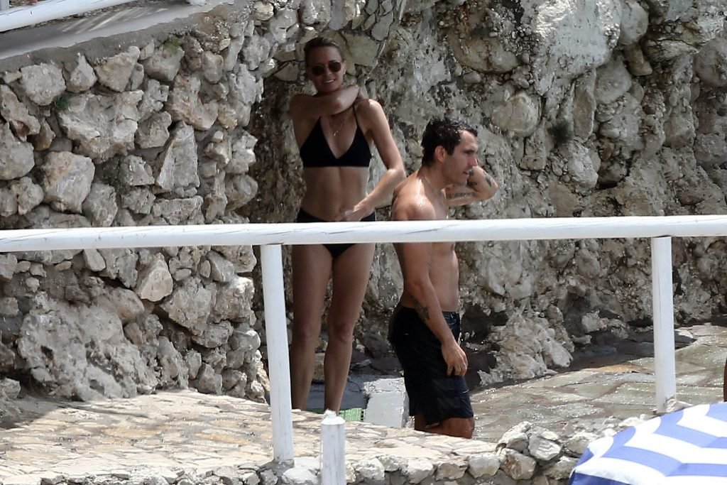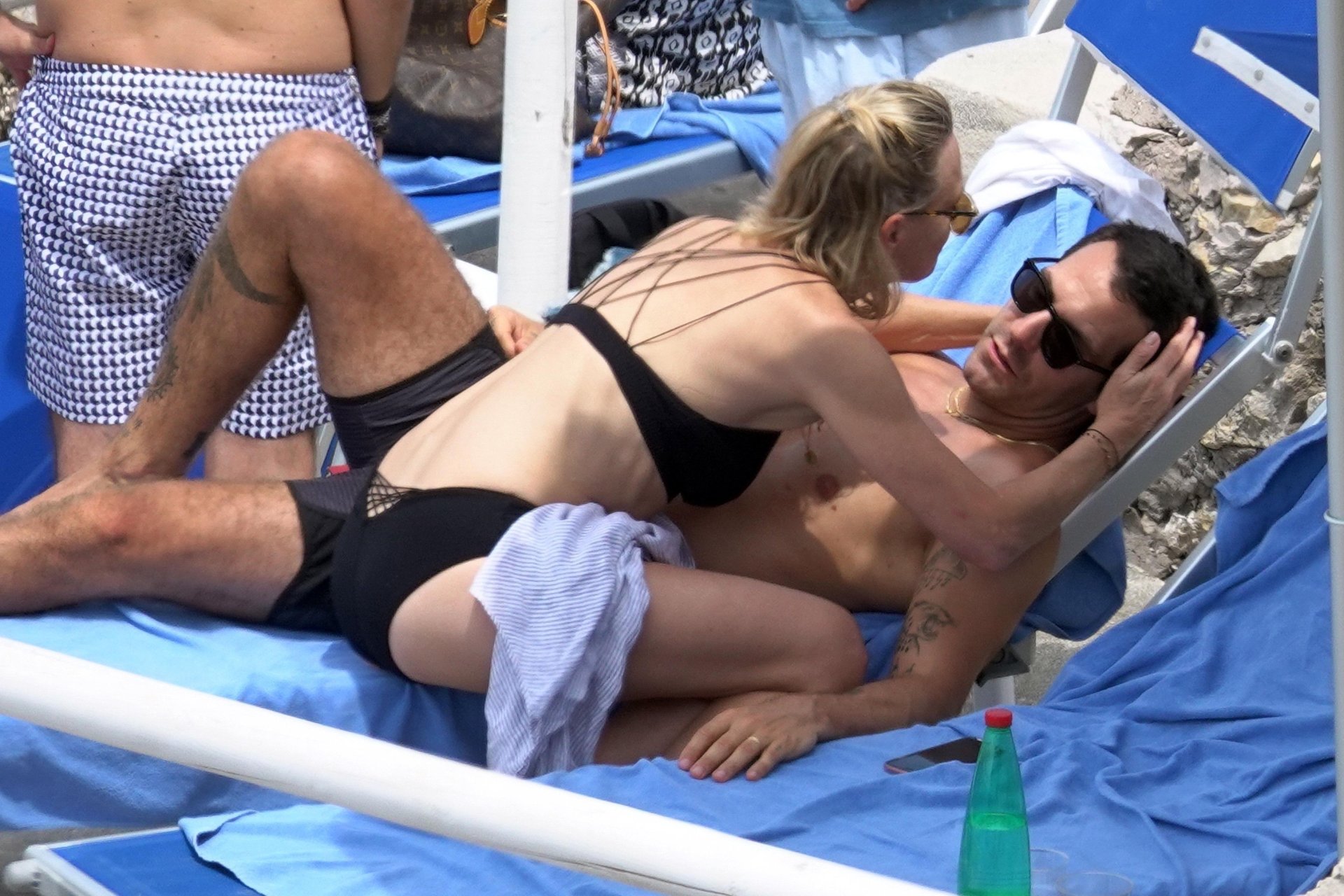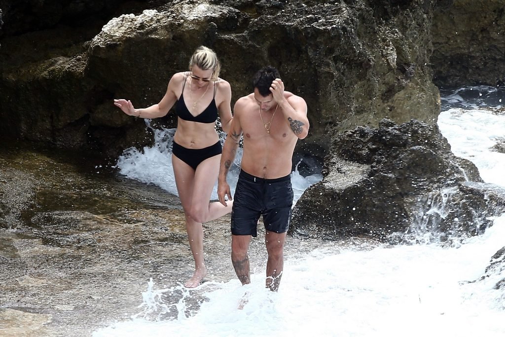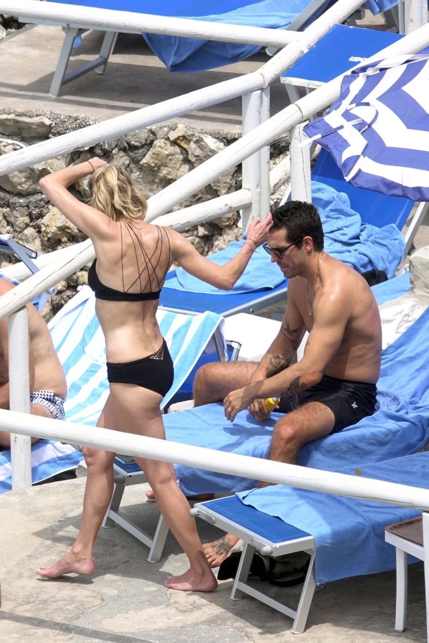 Robin Wright et le cadre de Saint Laurent Clément Giraudet profitent ensemble de vacances romantiques. Le duo est vu exhibant leurs corps en maillot de bain alors qu’ils profitent de la zone de baignade de leur hôtel, allant même jusqu’à se montrer affectueux avec des câlins et des baisers, 22/07/2018.