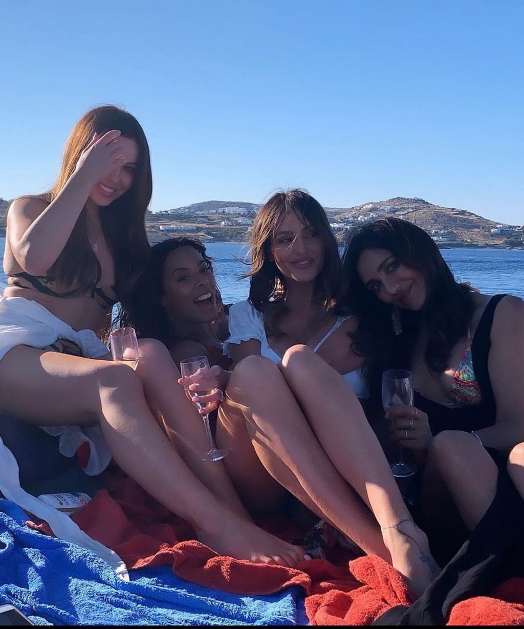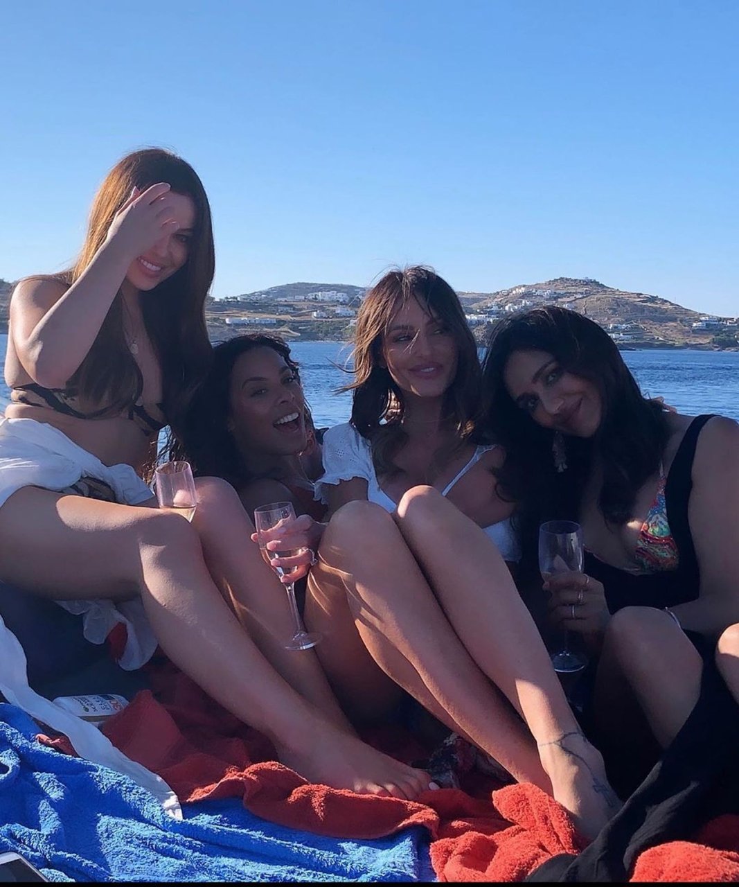 La chanteuse et animatrice Rochelle Humes a été photographiée avec son mari Marvin Humes et sa meilleure amie Georgina Dorsett ainsi que son partenaire, le footballeur Tom Cleverley, en vacances ensemble sur la magnifique île de Mykonos, le 06/05/2019.