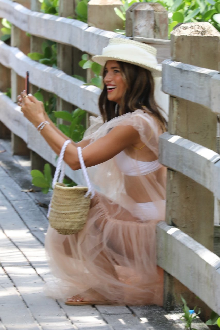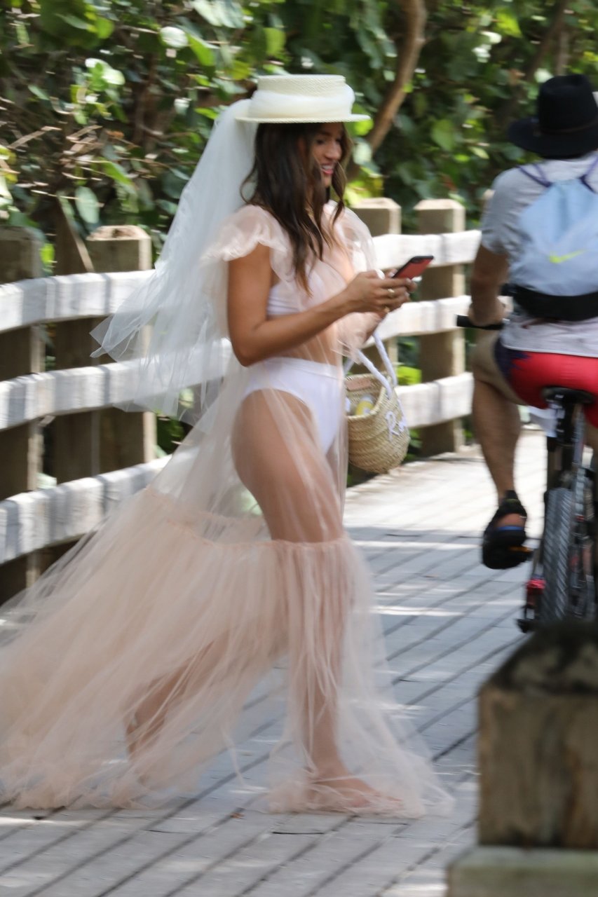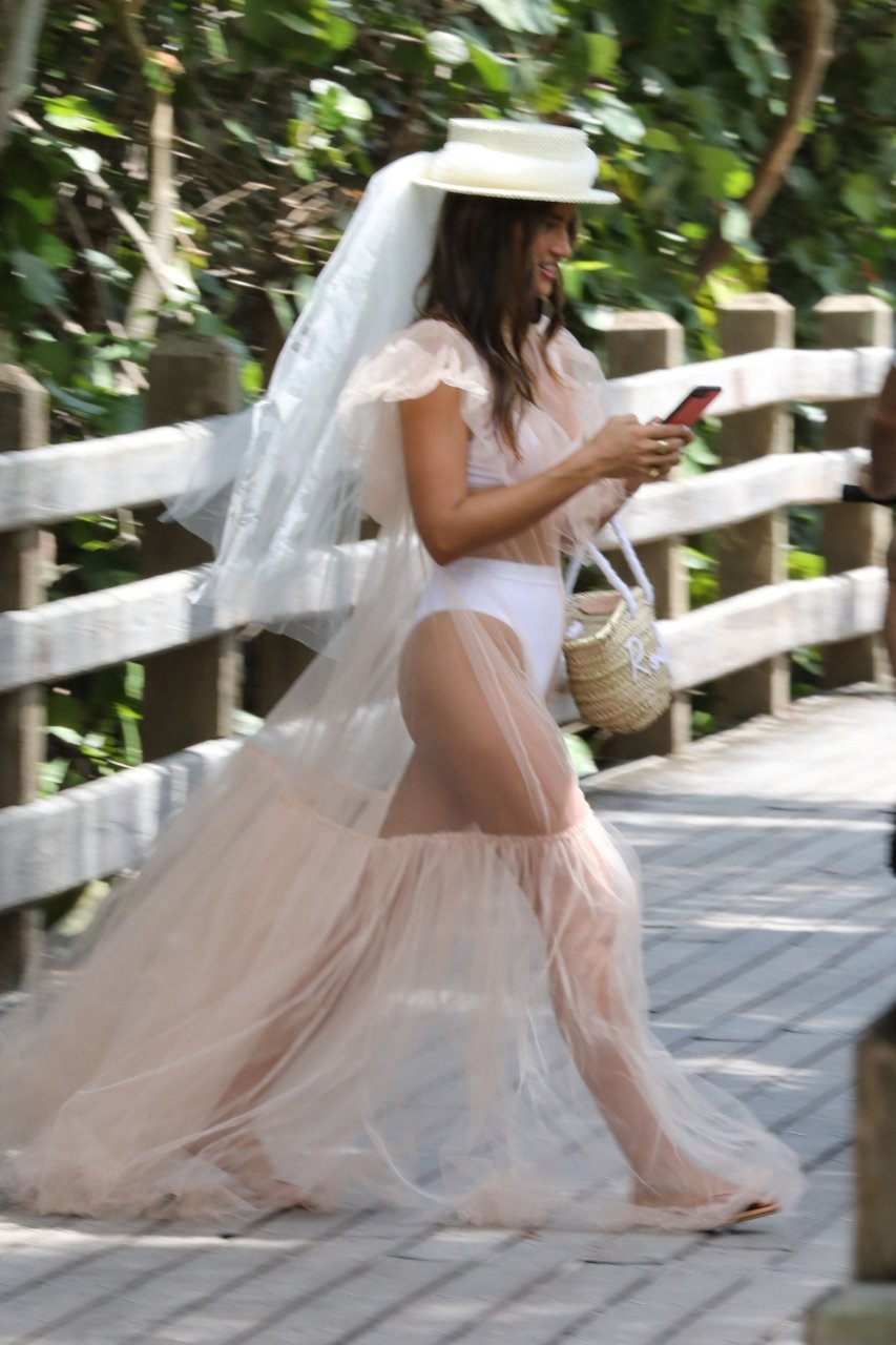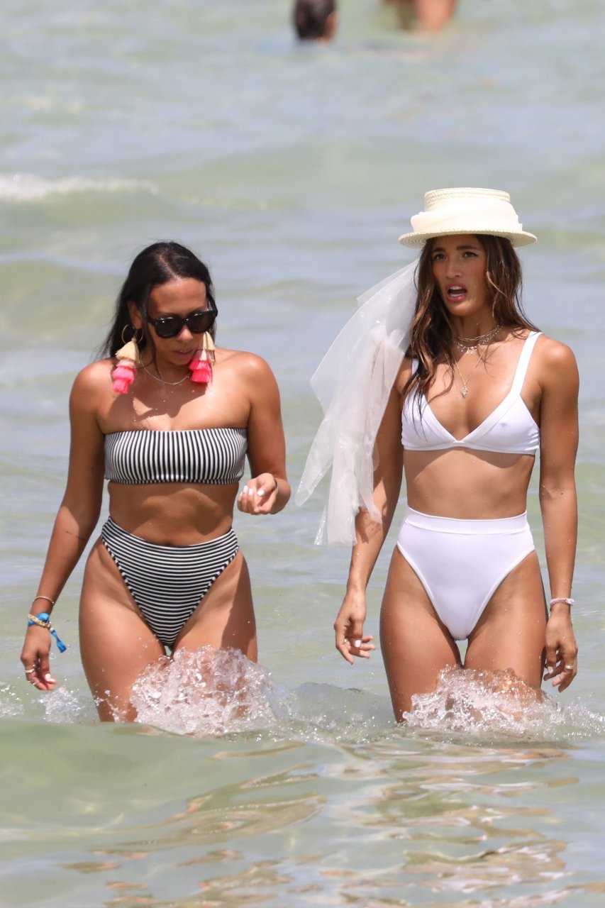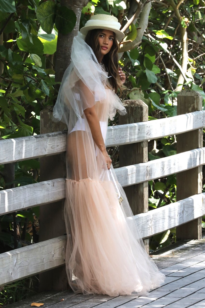 Rocky Barnes réalise une séance photo sur la plage avant son mariage à Miami Beach, le 11/08/2018. Rocky est vue avec ses amies alors qu’elles sautent dans les eaux de Floride en bikini tandis que Rocky porte un voile pour la séance. Rachel (Rocky) Barnes est un mannequin et blogueuse américaine. Née le 12 novembre 1985.