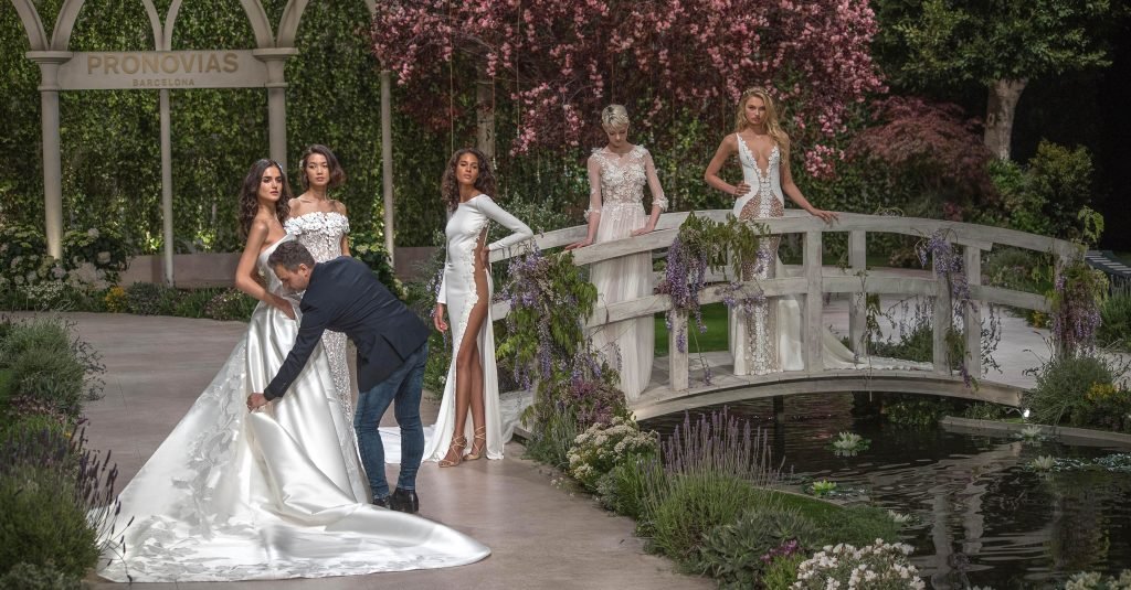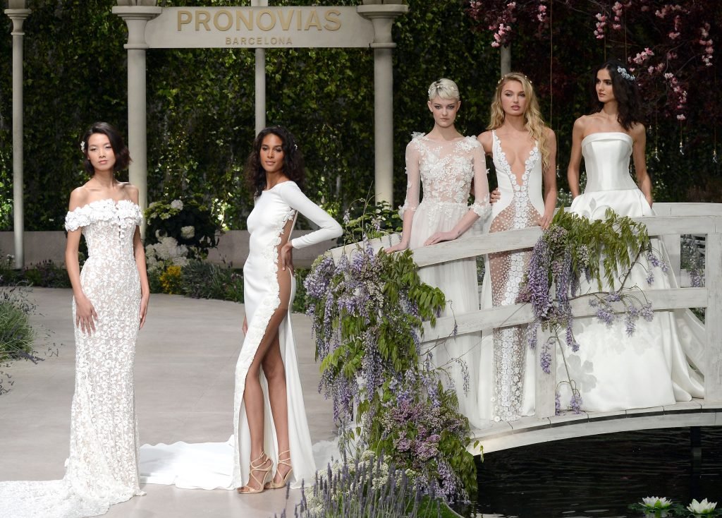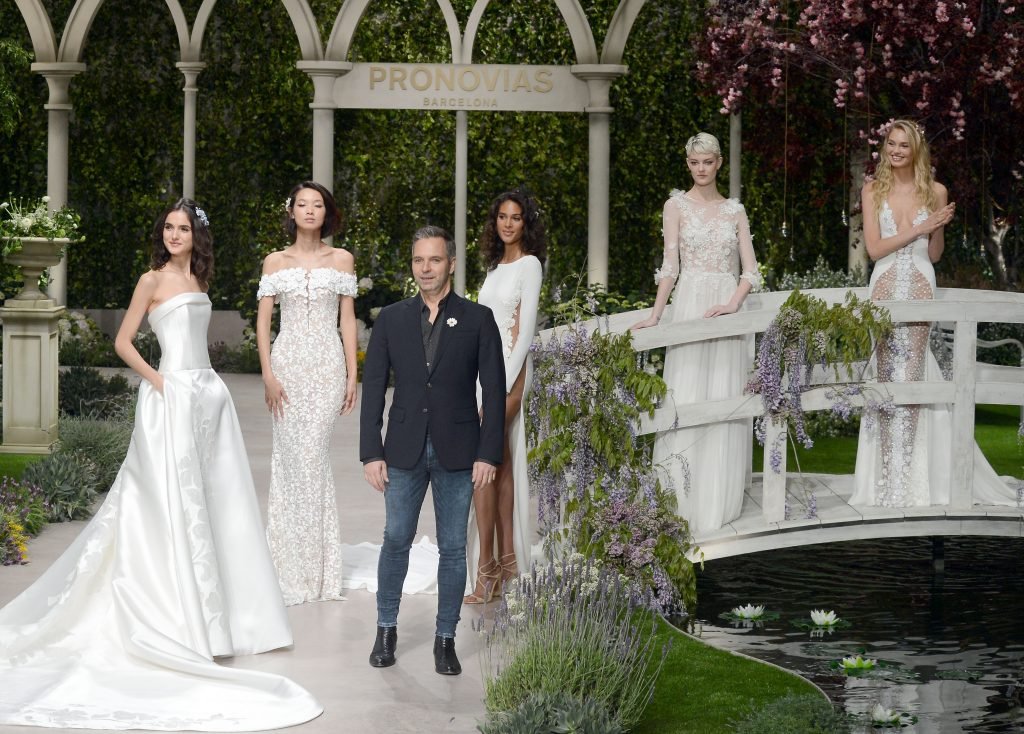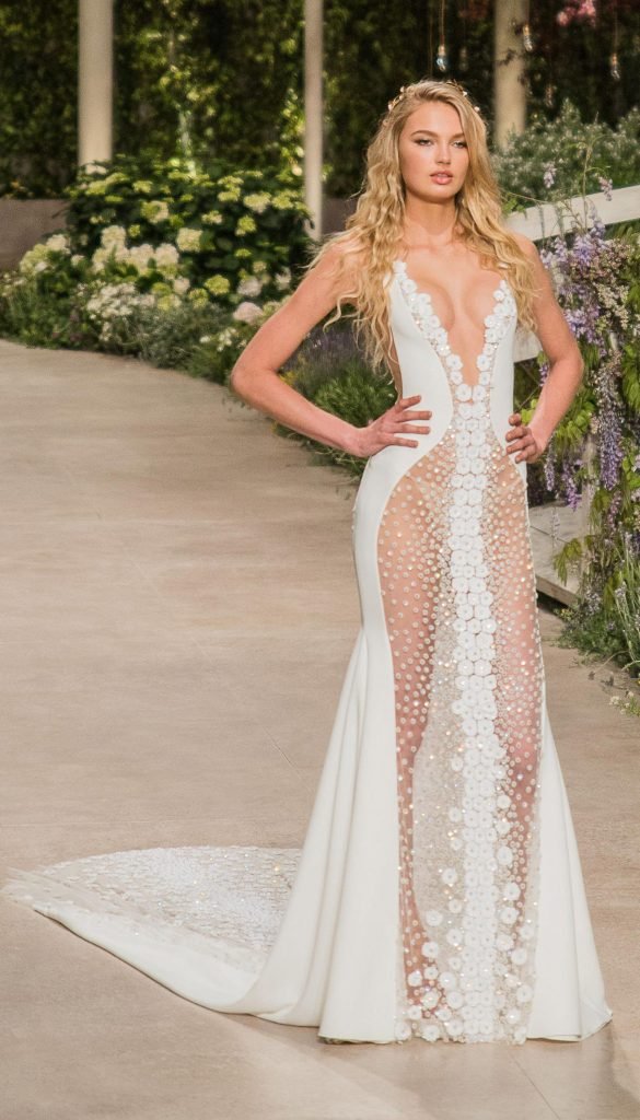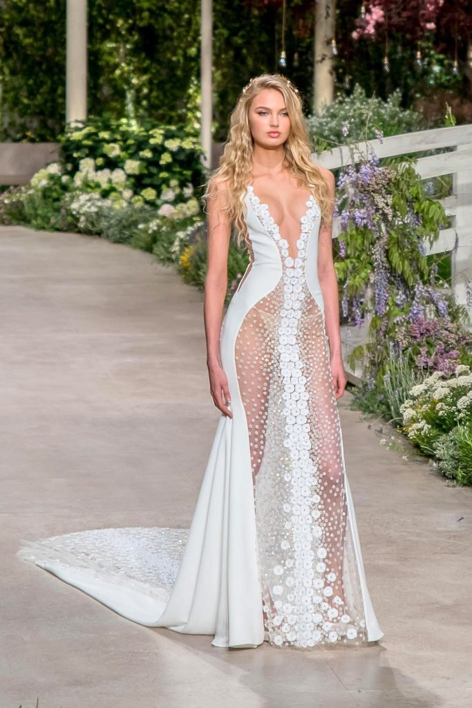 Romee Strijd défile en robe de mariée révélatrice lors du défilé de la collection Atelier Pronovias 2019 à Barcelone, Espagne, le 23/04/2018. Romee Van Strijd est un top modèle de mode et Ange de Victoria’s Secret originaire des Pays-Bas. Âge : 22 ans.