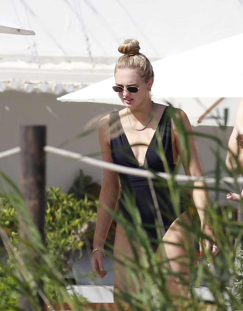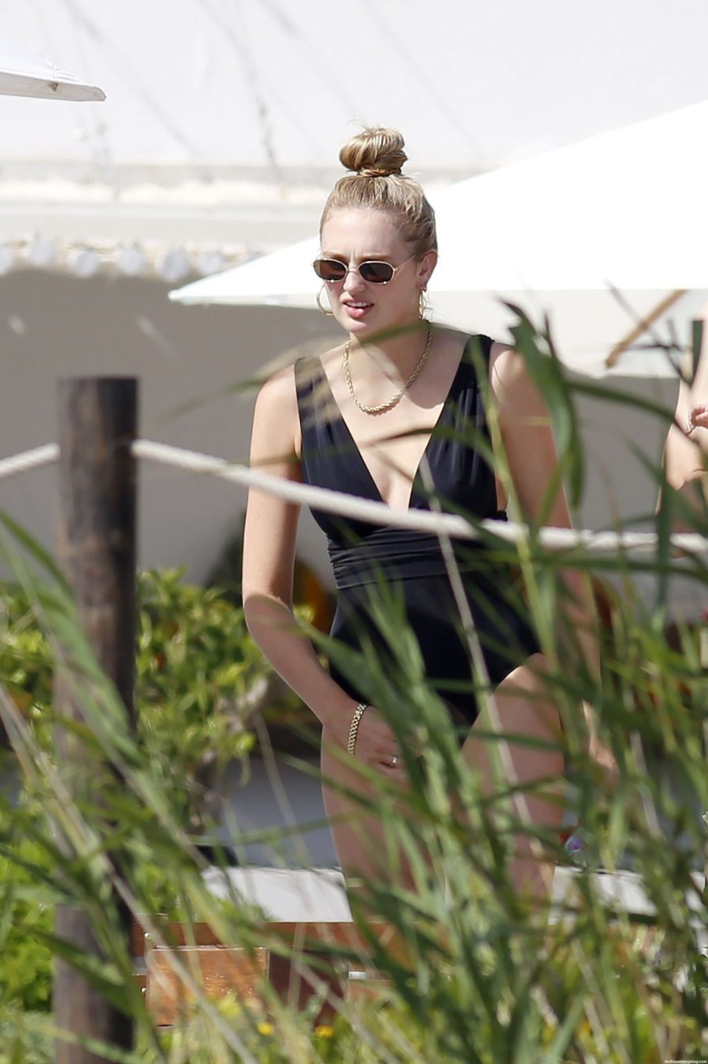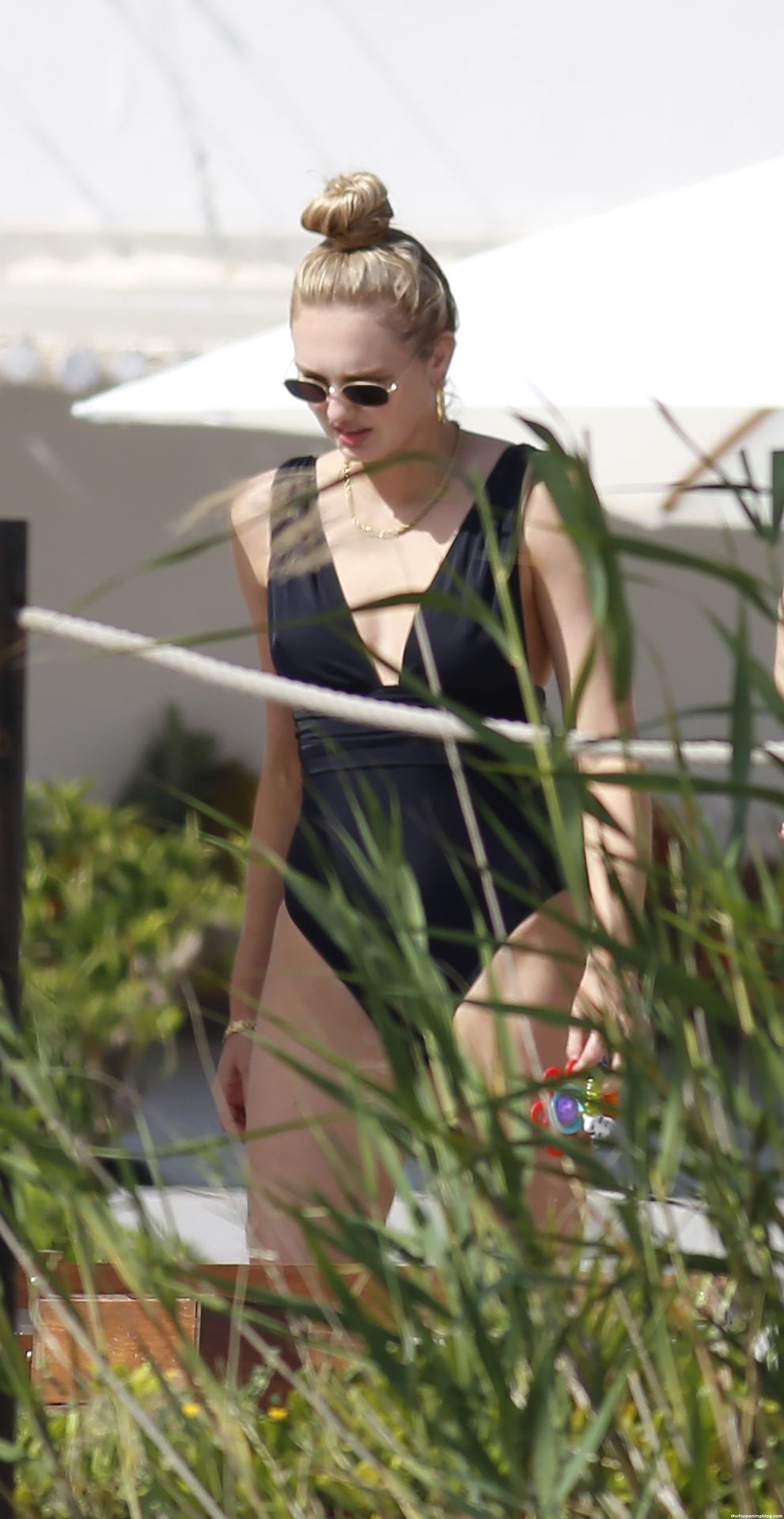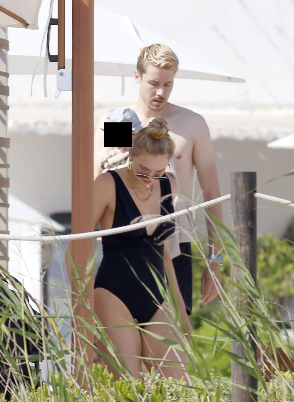 L’ange de Victoria’s Secret Romee Strijd montre son incroyable corps après bébé dans un maillot de bain noir une pièce lors de vacances en famille à Ibiza samedi en compagnie de son bébé et de son mari, Laurens Van Leuween.