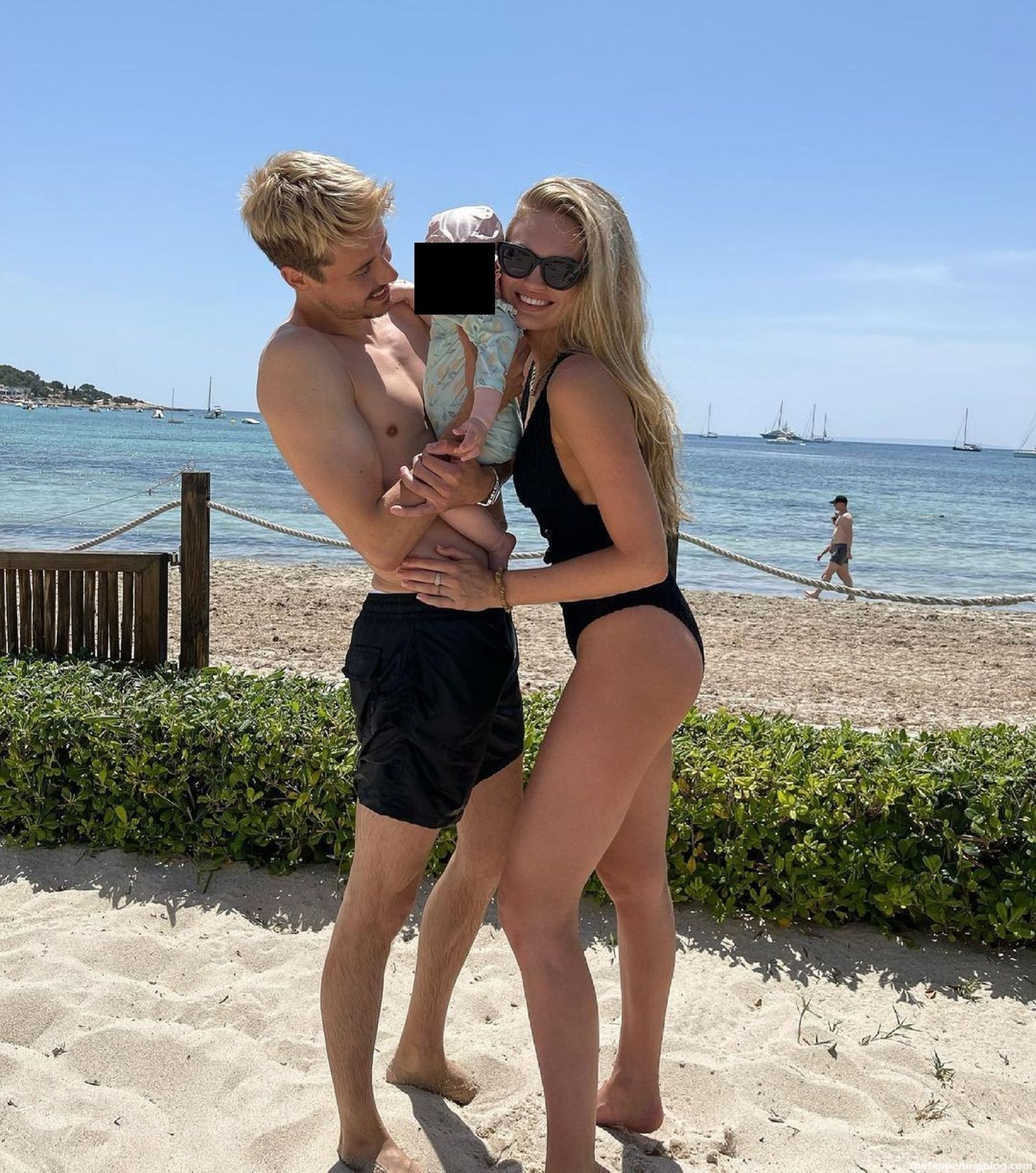 L’ange de Victoria’s Secret Romee Strijd montre son incroyable corps après bébé dans un maillot de bain noir une pièce lors de vacances en famille à Ibiza samedi en compagnie de son bébé et de son mari, Laurens Van Leuween.