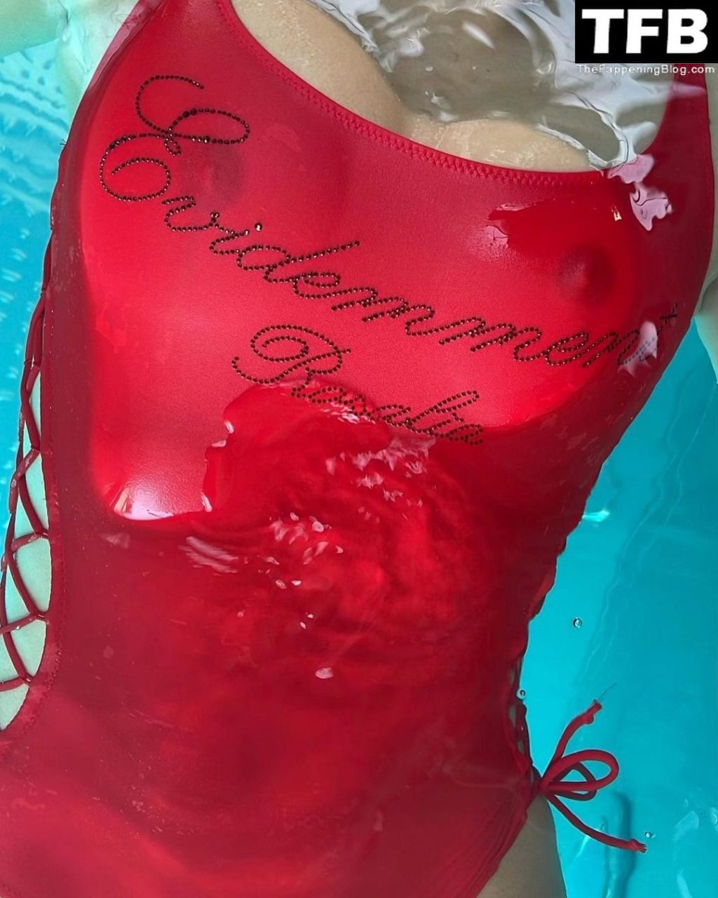 La chanteuse Rosalia affiche ses tétons en profitant de ses vacances dans un maillot de bain rouge mouillé – Instagram, 29/06/2022.