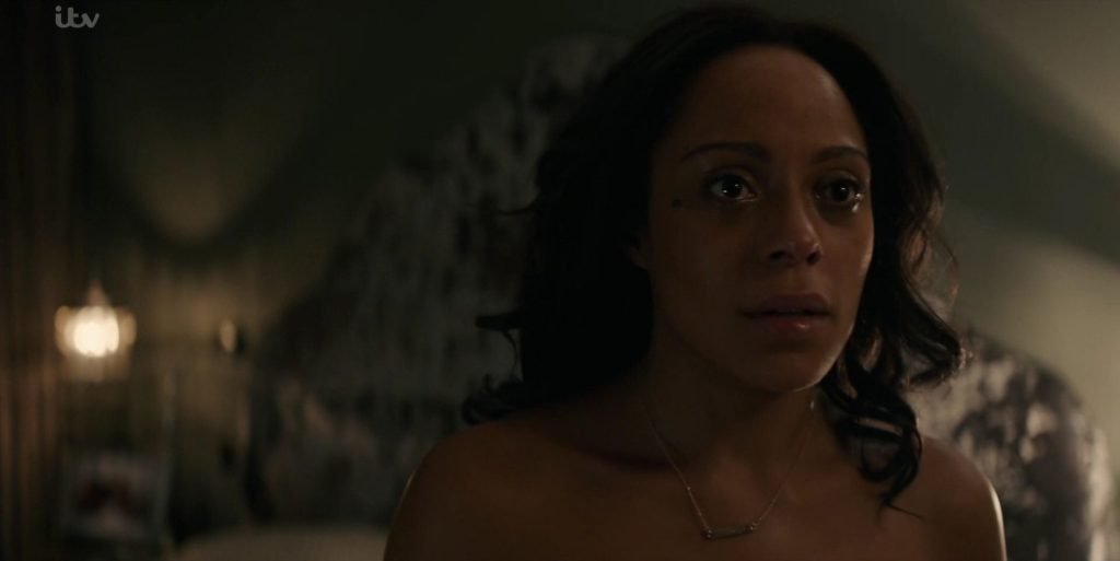Regardez la scène nue de Rosalind Eleazar dans “Deep Water” (2019) Saison 1 Épisode 2, où vous pouvez voir cette milf complètement nue alors qu’elle enlève sa robe et se tient à côté du lit, montrant ses fesses en gros plan tandis qu’elle parle à un homme qui est entré dans la chambre. Ensuite, vous voyez ses seins tombants de côté.