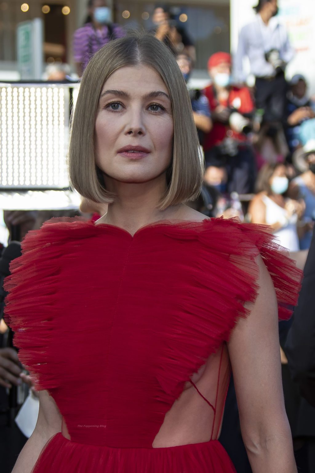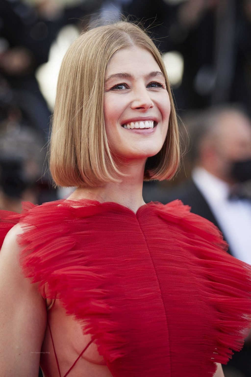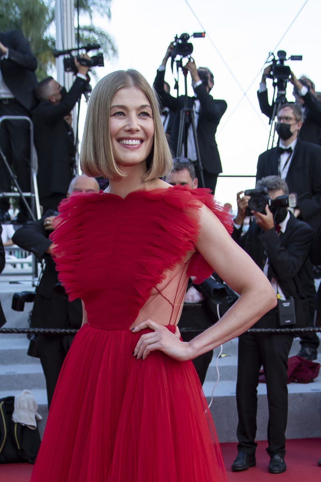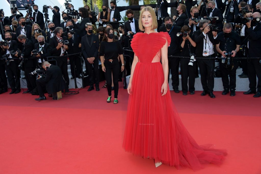 L’actrice Rosamund Pike arrive à la cérémonie de clôture et à la projection du film “OSS 117 : Alerte Rouge en Afrique Noire” (OSS 117 : From Africa with Love) à Cannes, France, 18/07/2021.