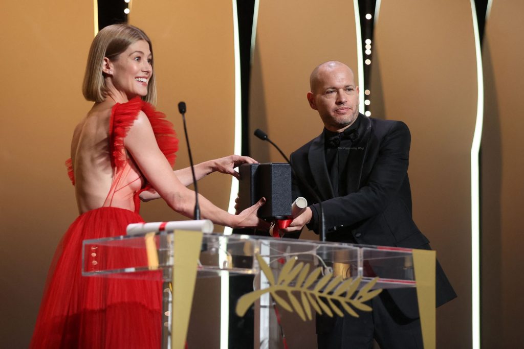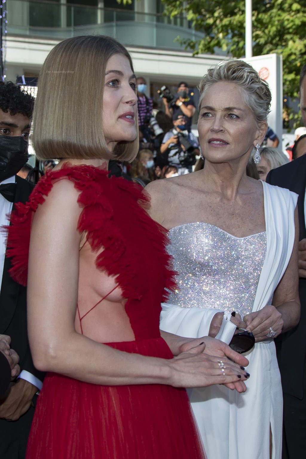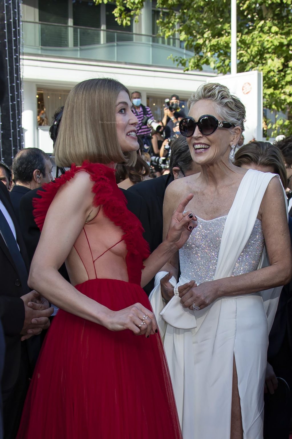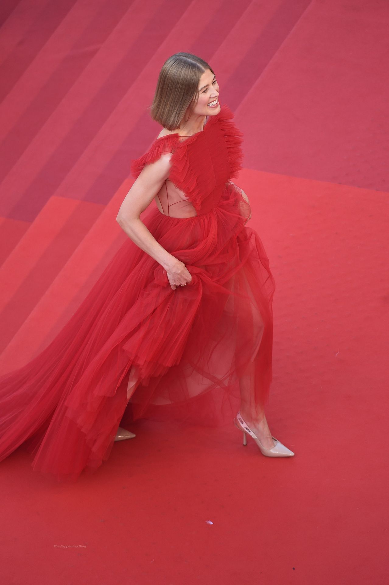 L’actrice Rosamund Pike arrive à la cérémonie de clôture et à la projection du film “OSS 117 : Alerte Rouge en Afrique Noire” (OSS 117 : From Africa with Love) à Cannes, France, 18/07/2021.