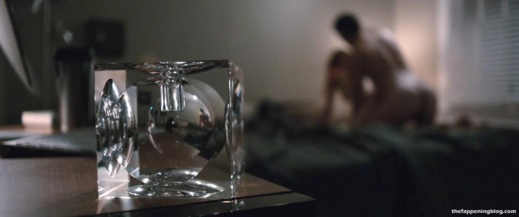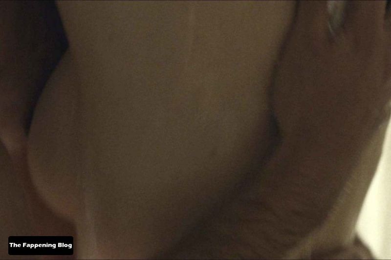 Naked Rose Leslie has doggy-style sex with her from behind, seen out of focus on a bed from across the room. We then get a clear view of her bare breasts.