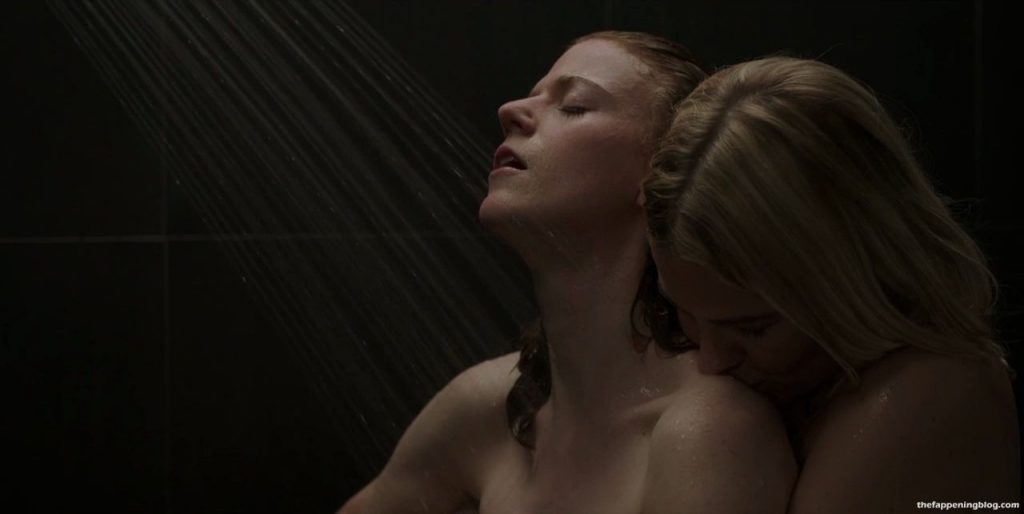 Rose Leslie est debout nue dans une baignoire avec un homme alors qu’ils prennent une douche ensemble. Rose montre ses fesses nues ainsi qu’une partie de ses seins nus. On voit ensuite les cheveux de Rose à travers le rideau de douche alors qu’elle et l’homme s’allongent contre le côté de la baignoire et commencent à faire l’amour.