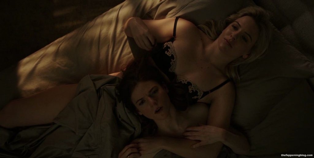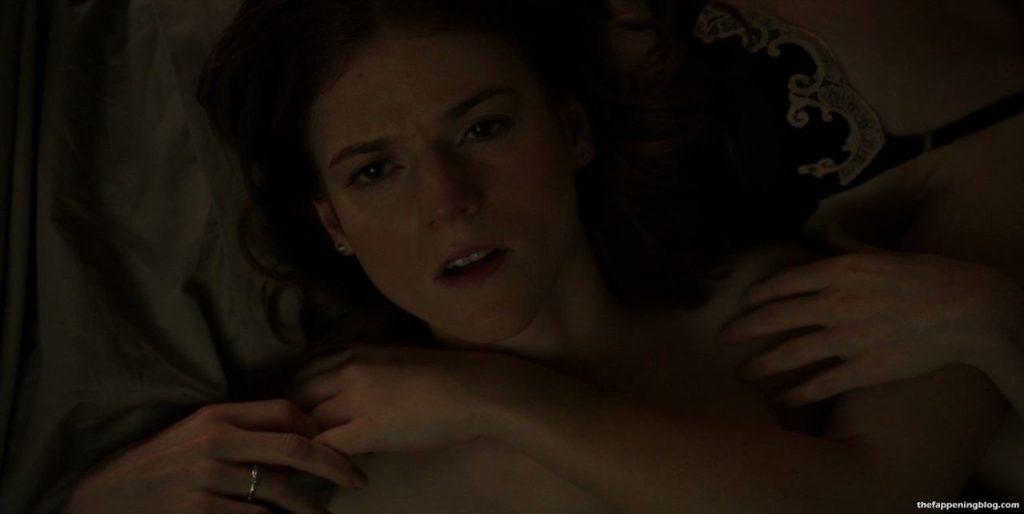Rose Leslie dévoile un joli décolleté dans un soutien-gorge alors qu’elle se tient dans une salle de bain et qu’un homme s’assoit sur le bord de la baignoire. L’homme glisse ensuite la main sous sa jupe pour lui enlever la culotte avant de porter Rose dans une chambre, où il la couche sur le lit et commence à faire l’amour.