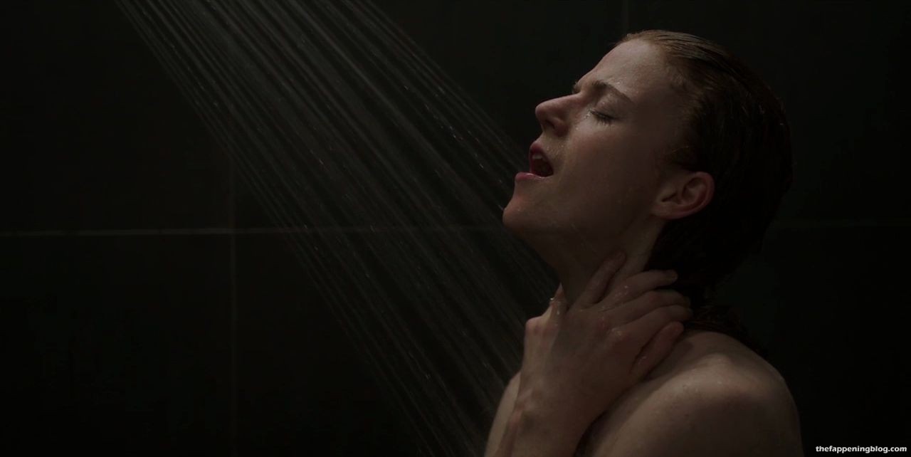 Rose Leslie est debout nue dans une baignoire avec un homme alors qu’ils prennent une douche ensemble. Rose montre ses fesses nues ainsi qu’une partie de ses seins nus. On voit ensuite les cheveux de Rose à travers le rideau de douche alors qu’elle et l’homme s’allongent contre le côté de la baignoire et commencent à faire l’amour.