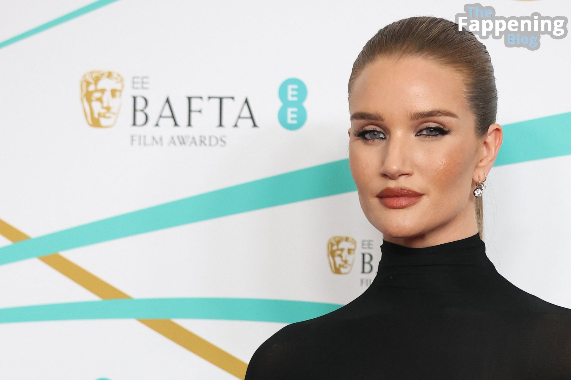 Le mannequin britannique Rosie Huntington-Whiteley pose sur le tapis rouge à son arrivée aux BAFTA British Academy Film Awards au Royal Festival Hall, Southbank Centre à Londres, le 19/02/2023.