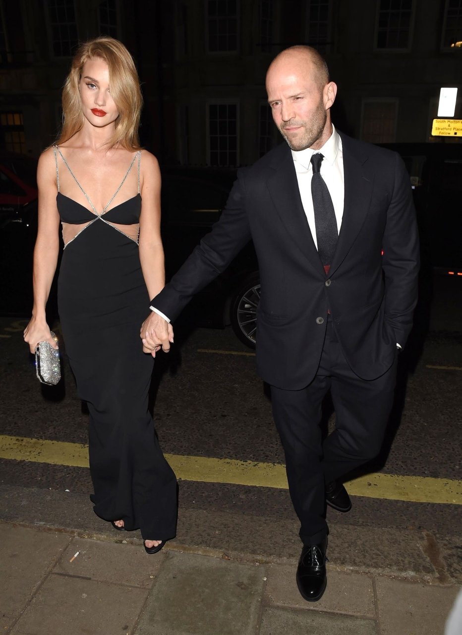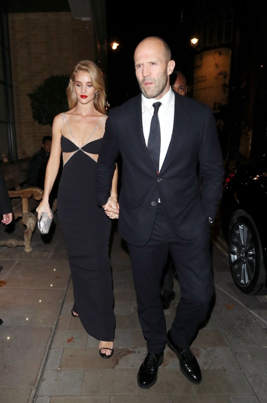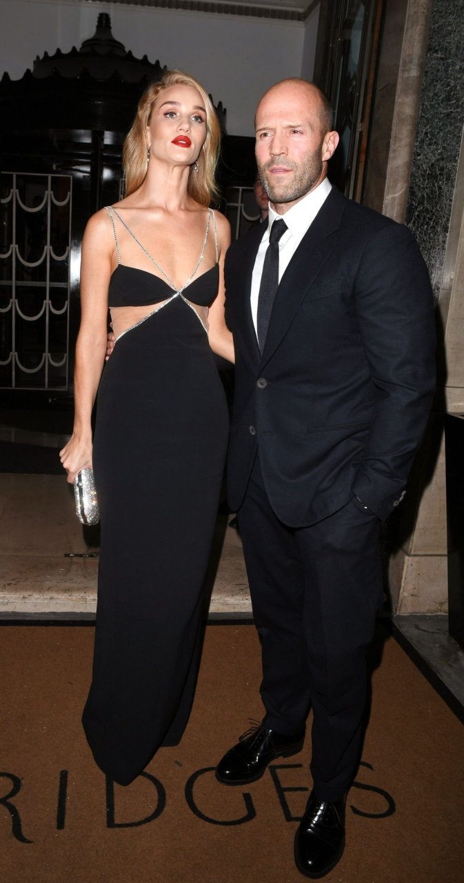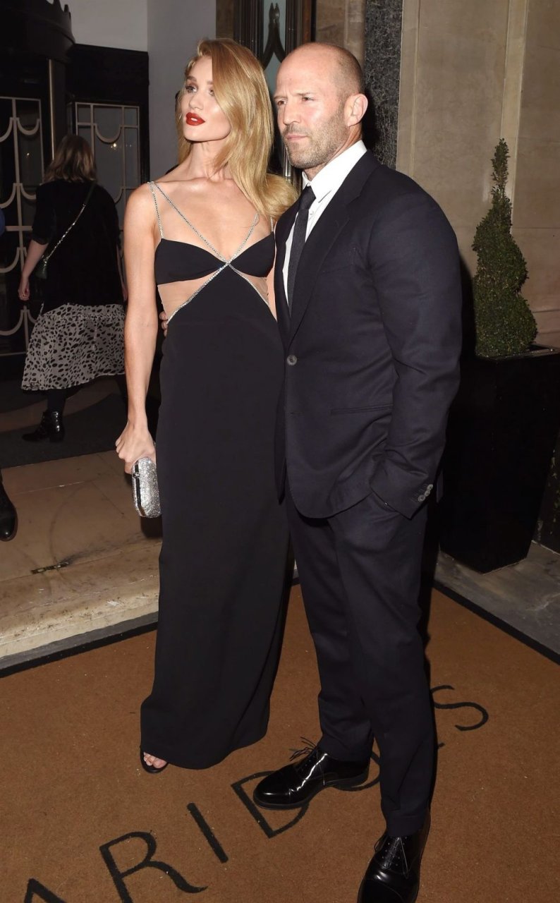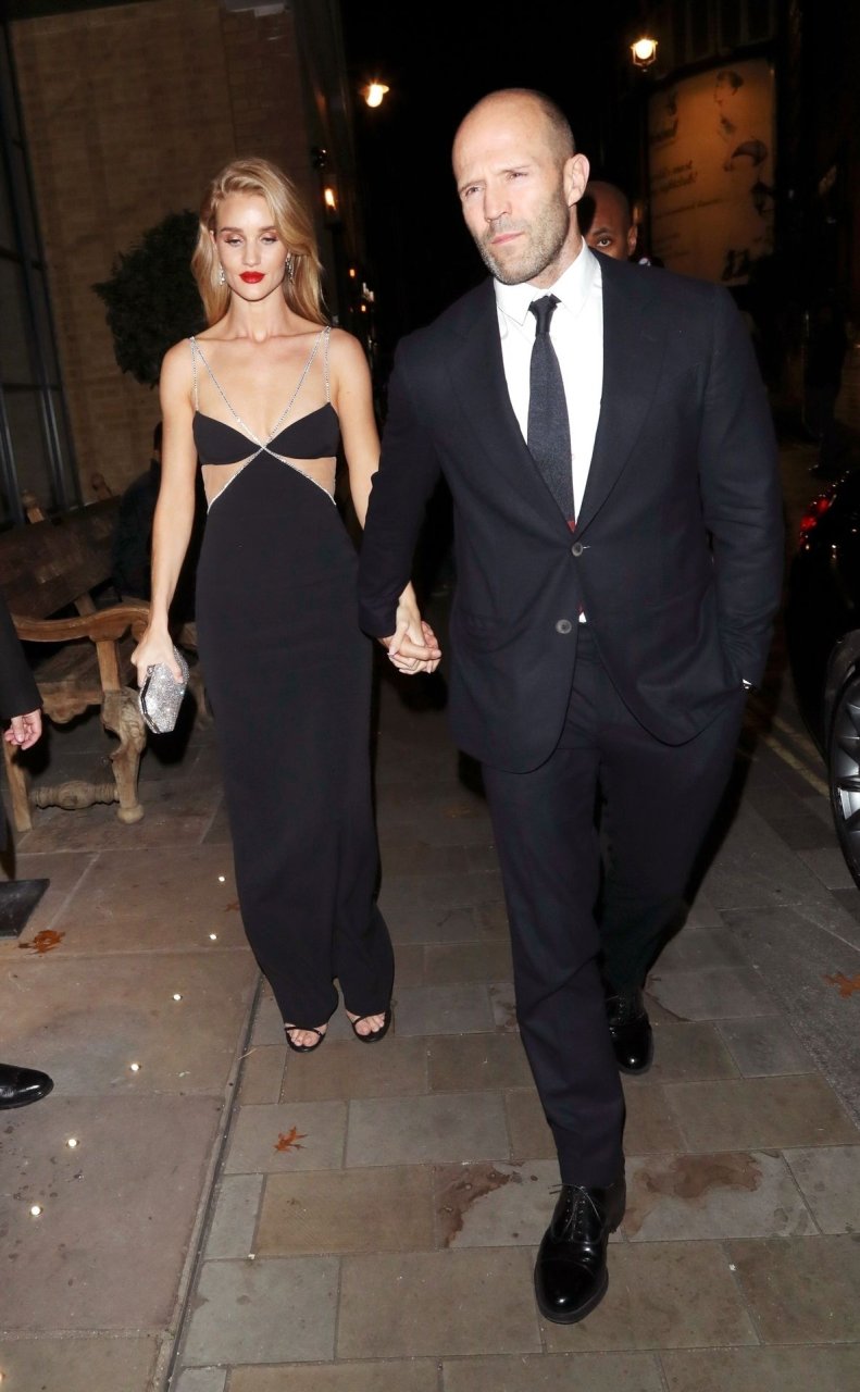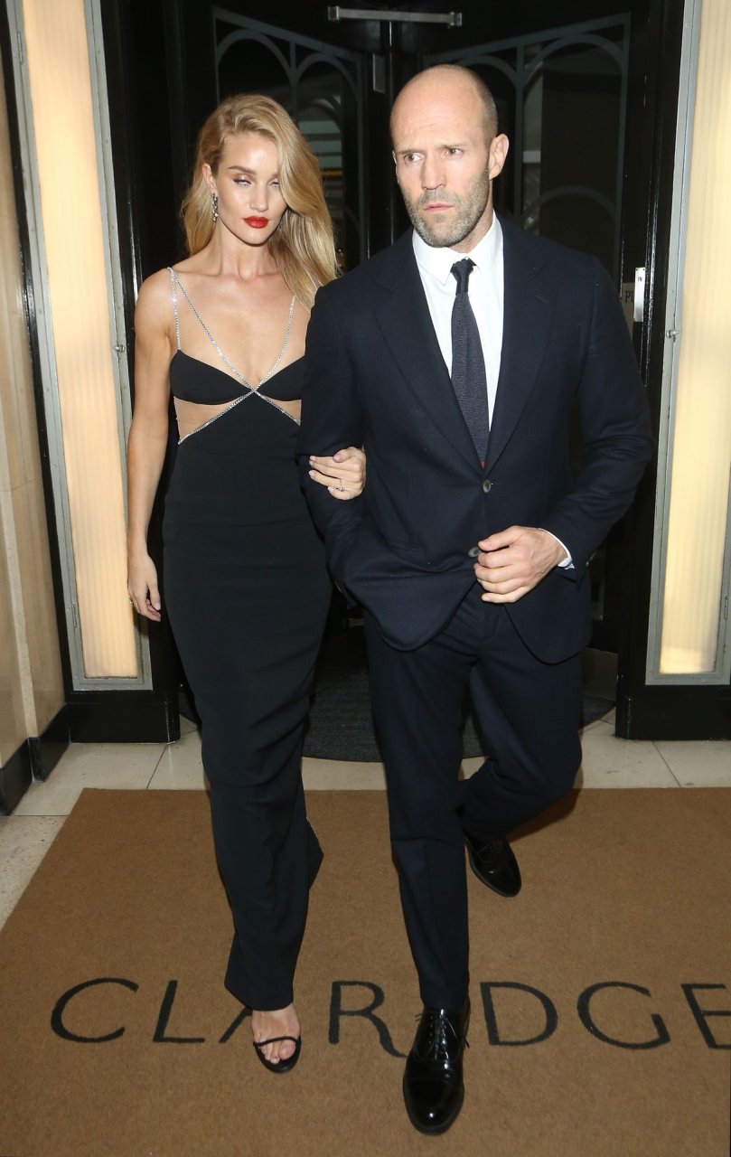 Le mannequin Rosie Huntington-Whiteley et Jason Statham assistent aux Harper’s Bazaar Women Of The Year Awards 2019 à l’hôtel Claridge’s à Londres, le 29/10/2019.