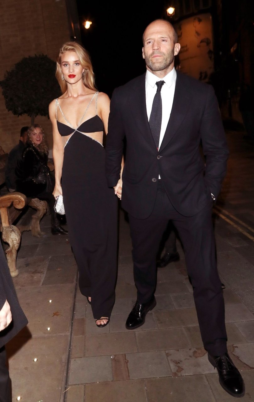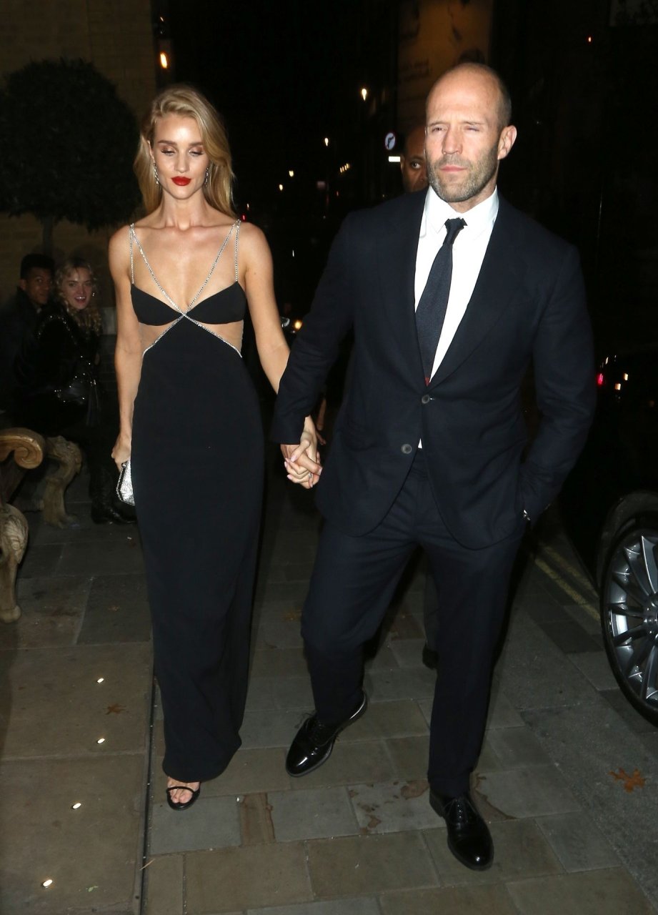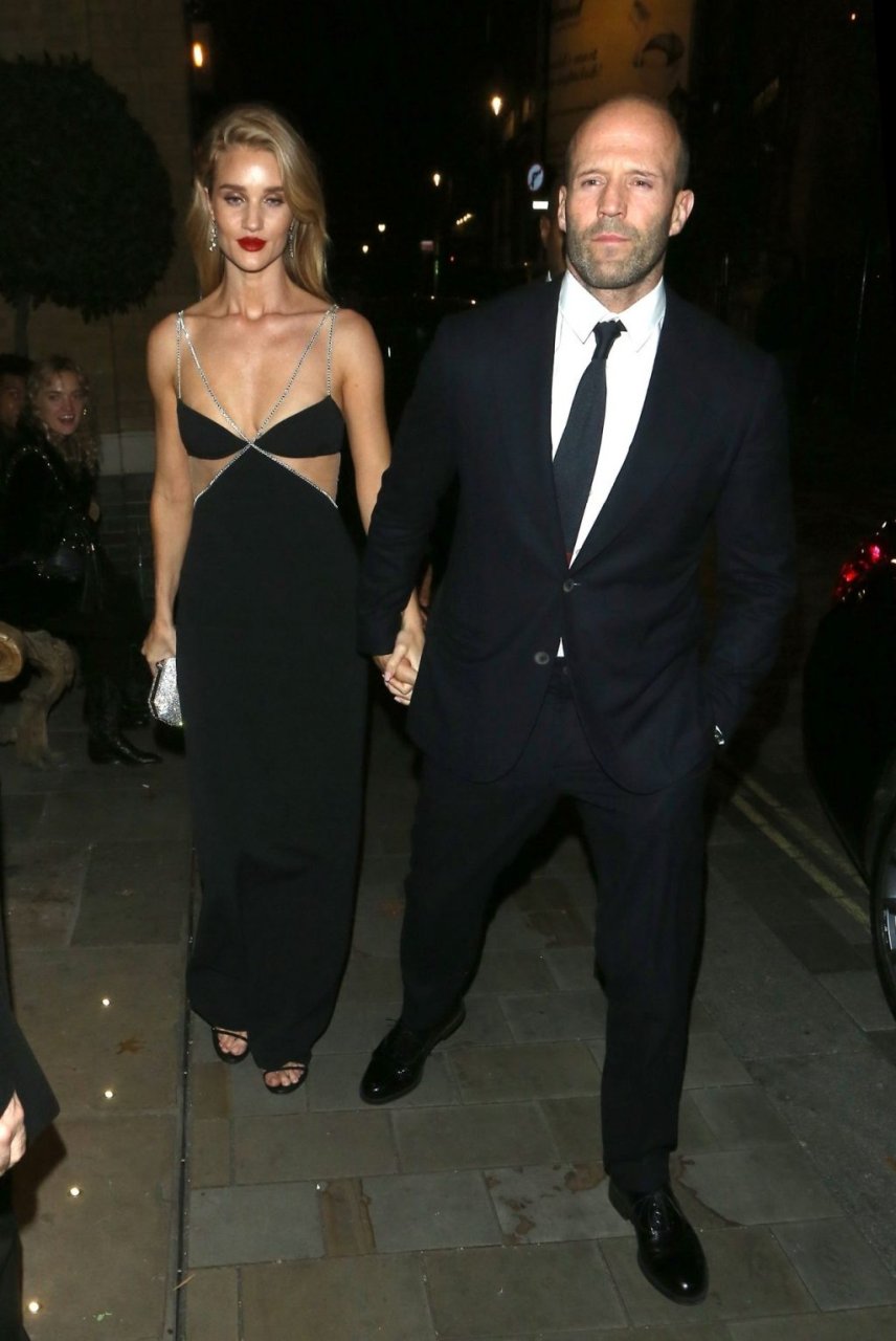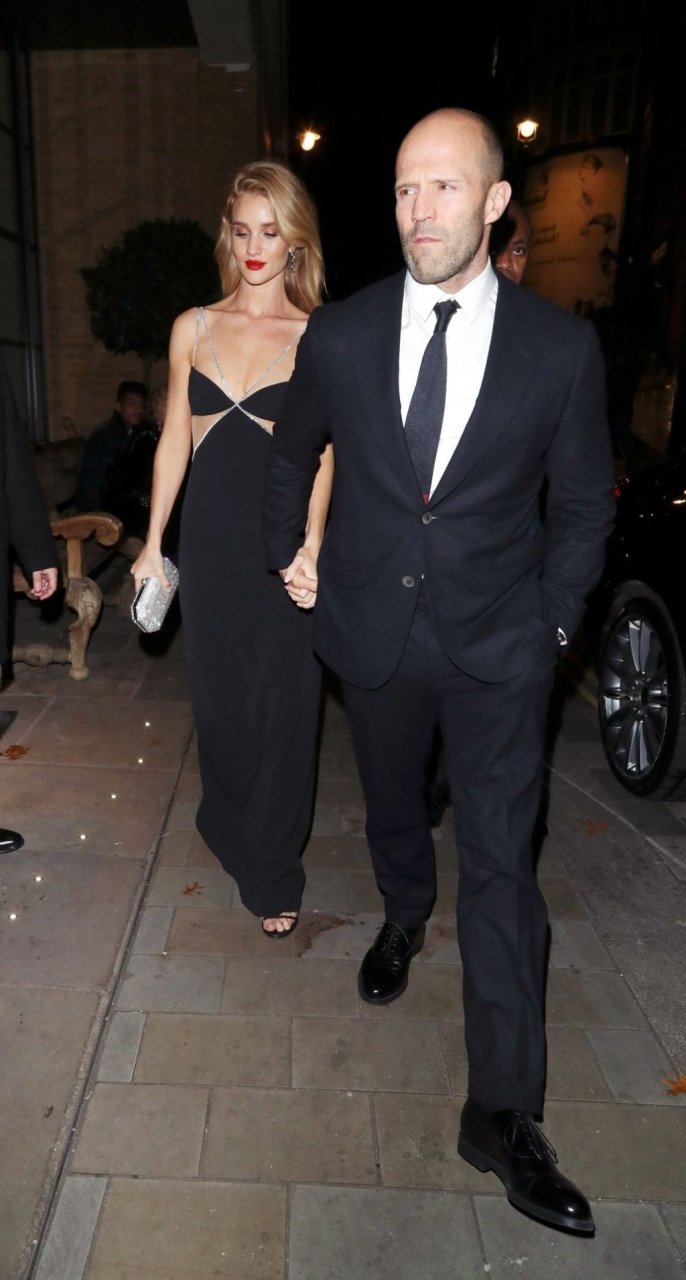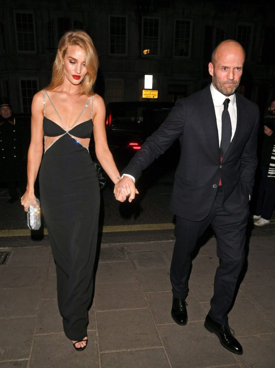 Le mannequin Rosie Huntington-Whiteley et Jason Statham assistent aux Harper’s Bazaar Women Of The Year Awards 2019 à l’hôtel Claridge’s à Londres, le 29/10/2019.
