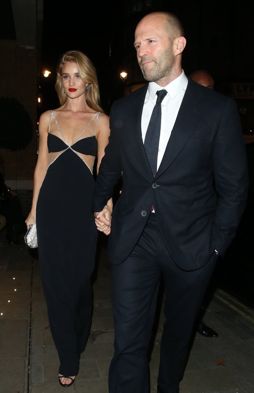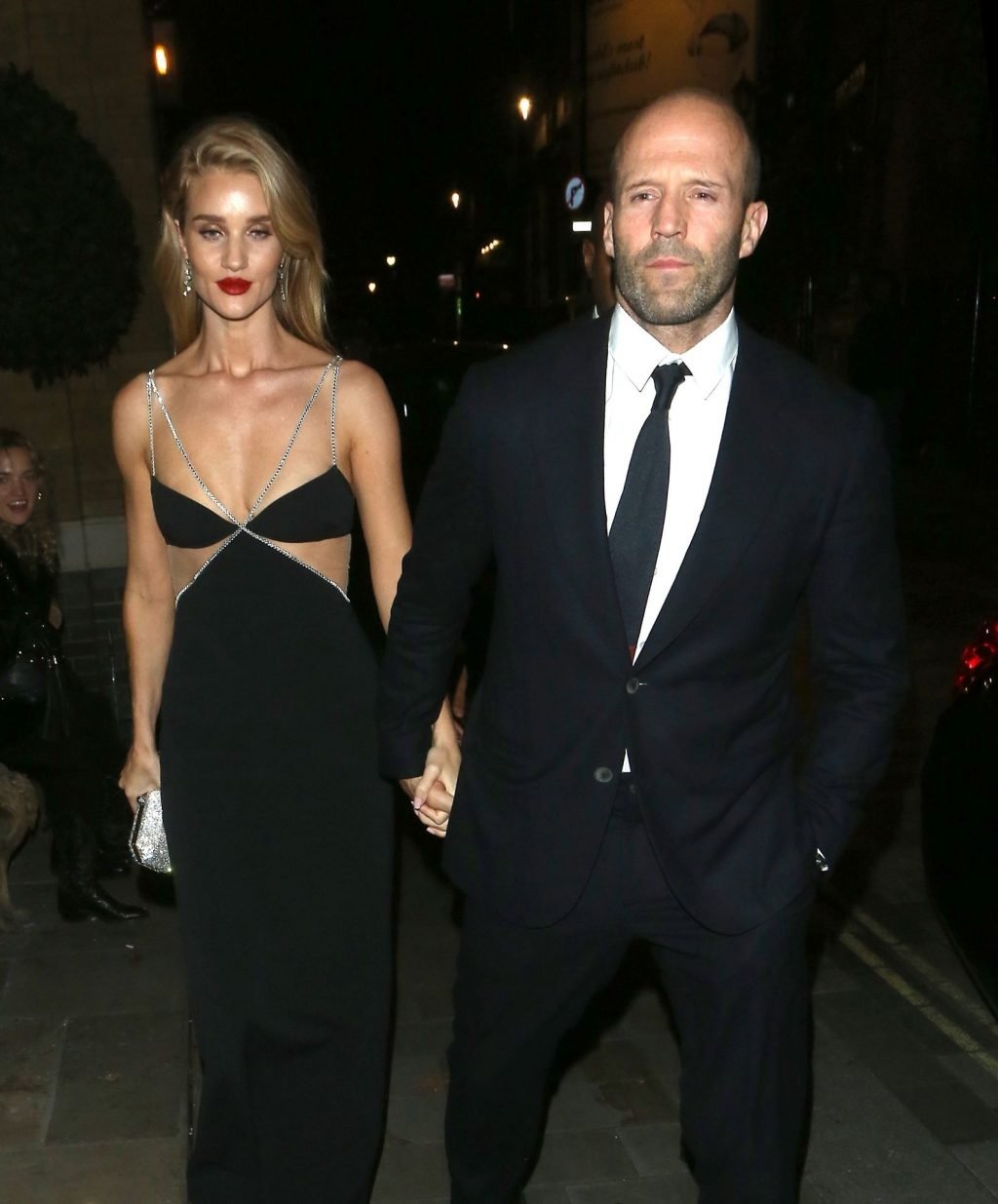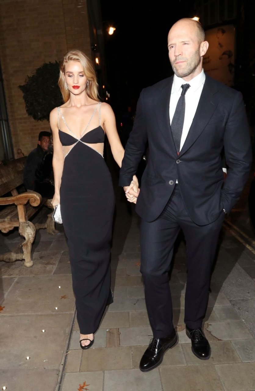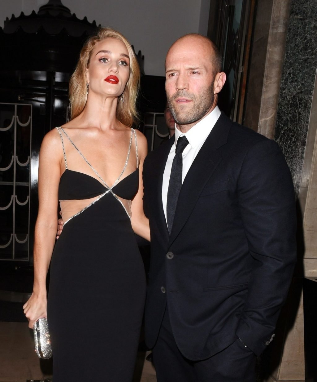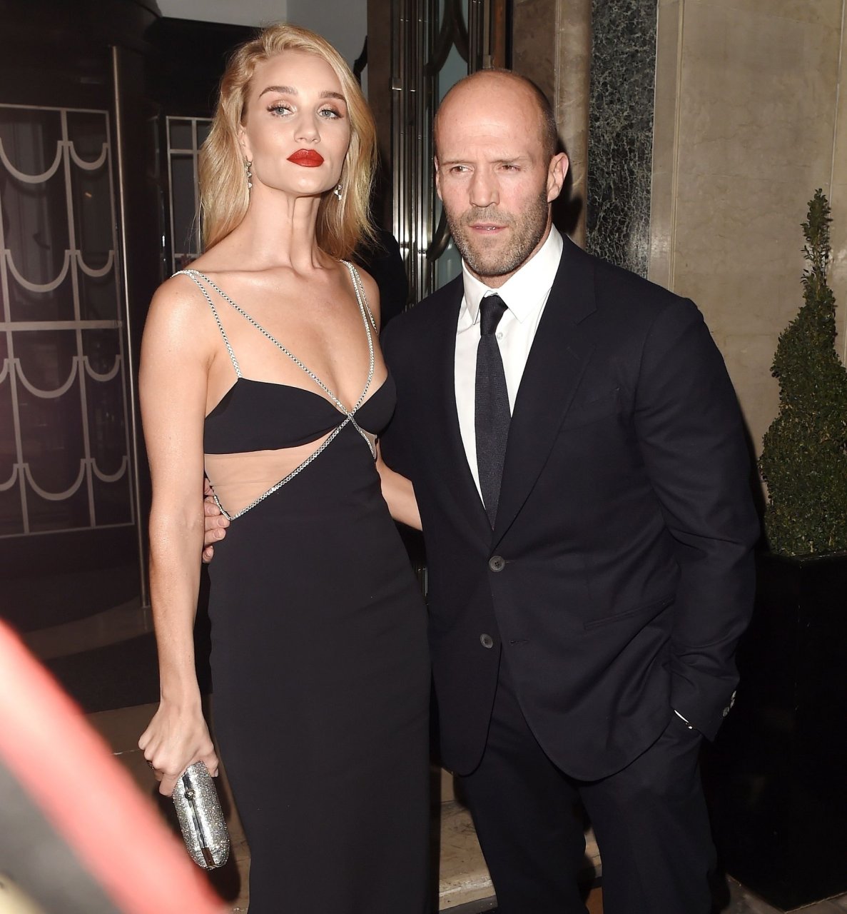 Le mannequin Rosie Huntington-Whiteley et Jason Statham assistent aux Harper’s Bazaar Women Of The Year Awards 2019 à l’hôtel Claridge’s à Londres, le 29/10/2019.