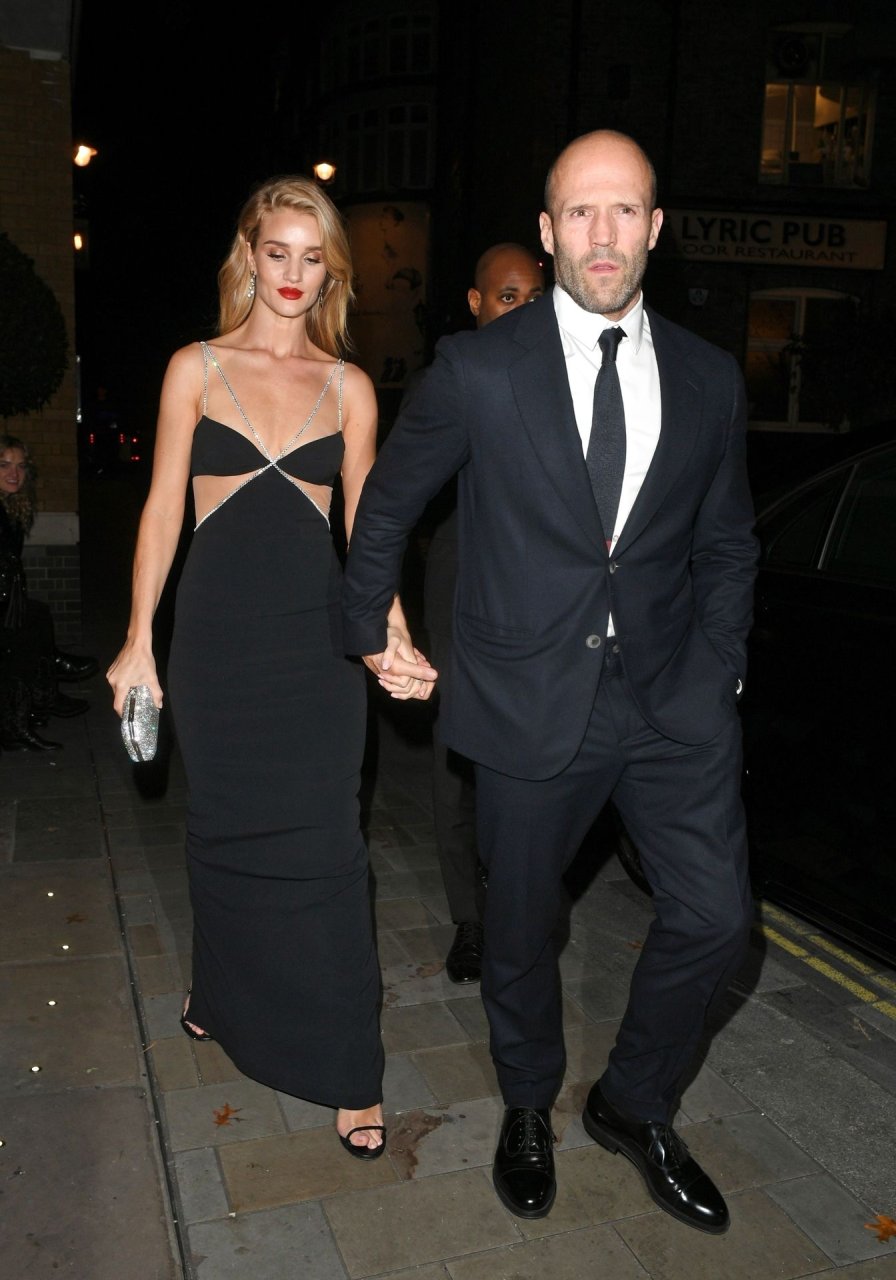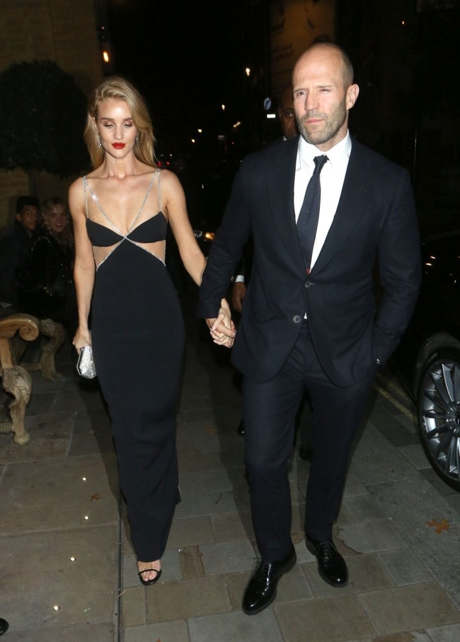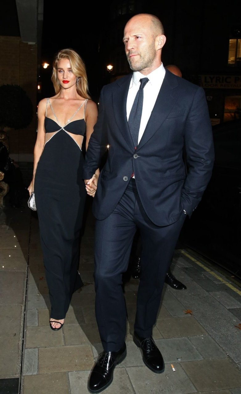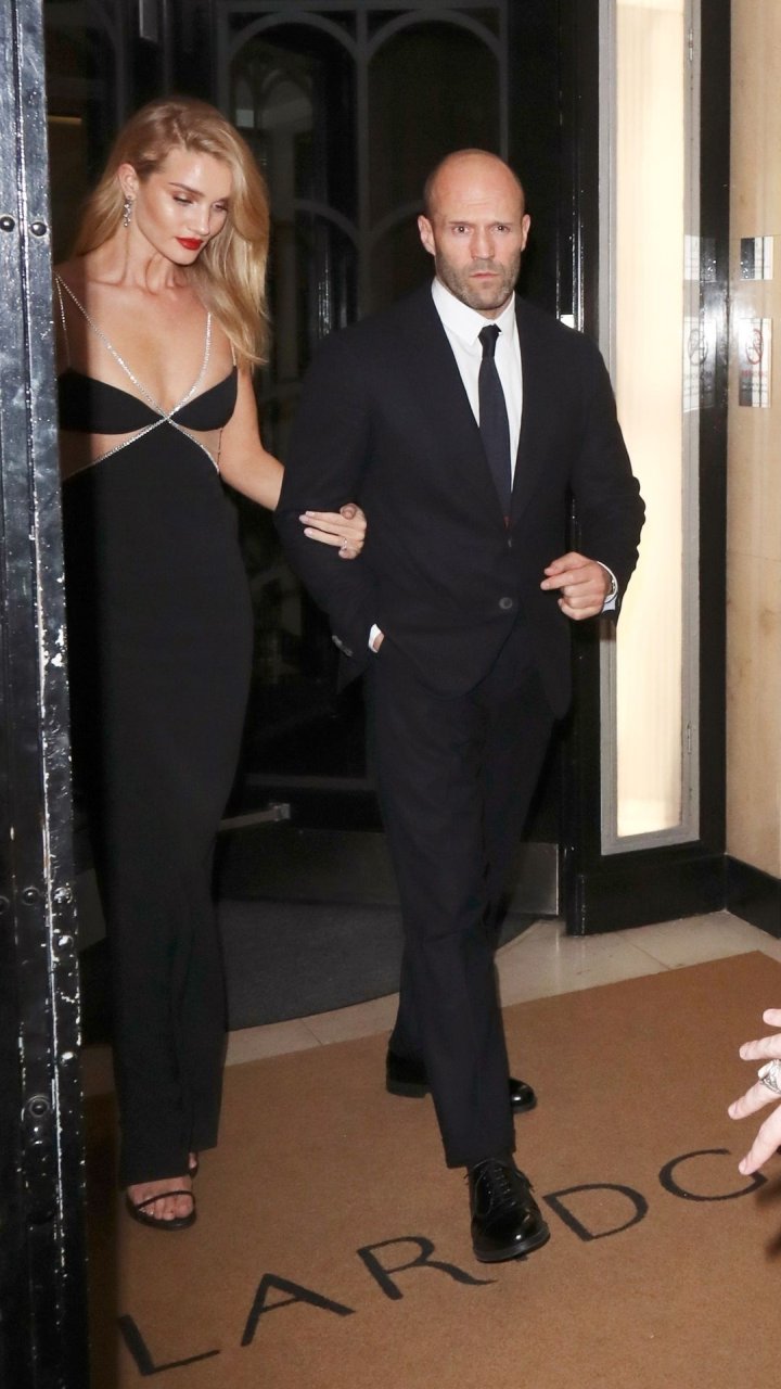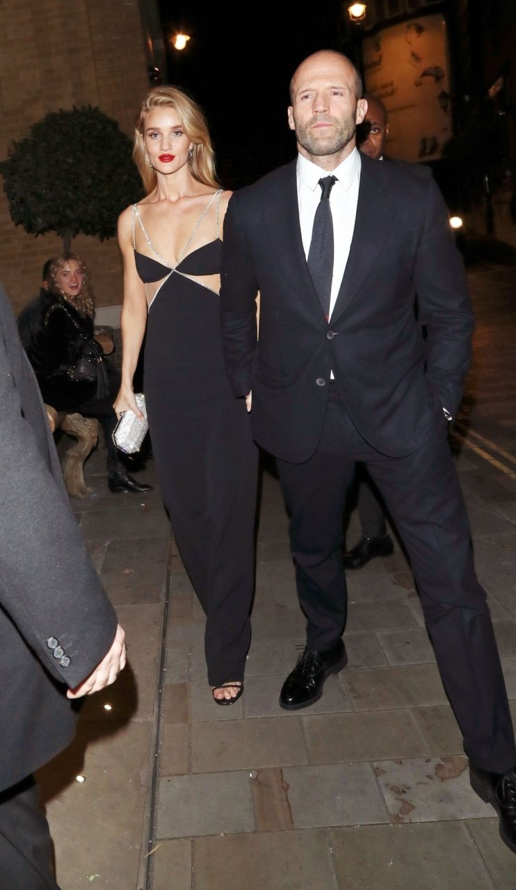 Le mannequin Rosie Huntington-Whiteley et Jason Statham assistent aux Harper’s Bazaar Women Of The Year Awards 2019 à l’hôtel Claridge’s à Londres, le 29/10/2019.