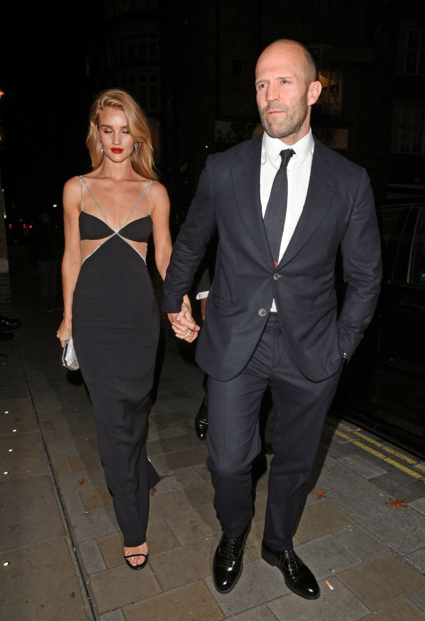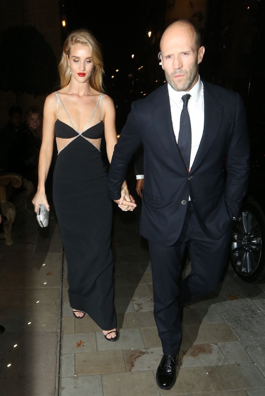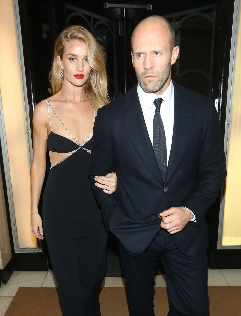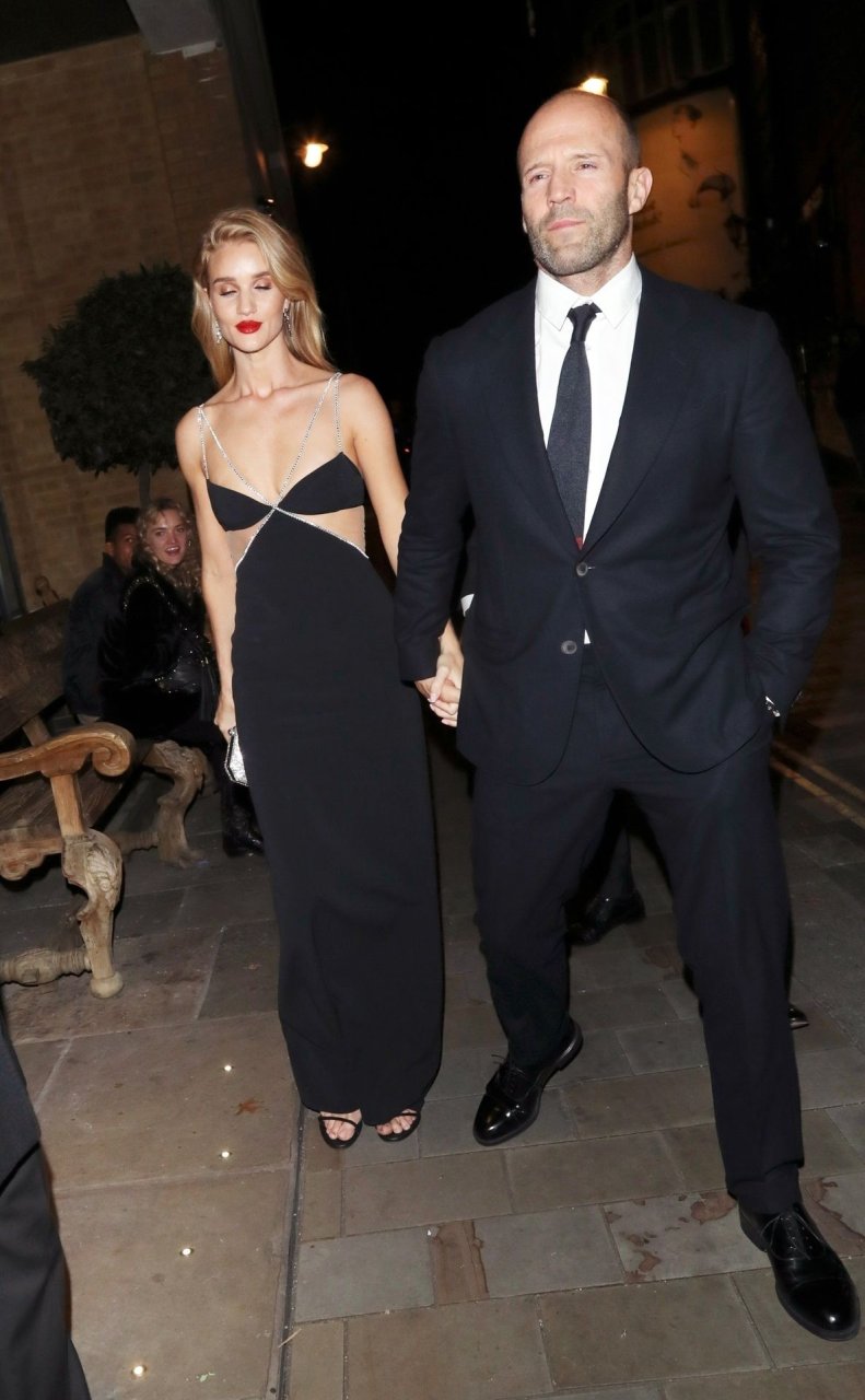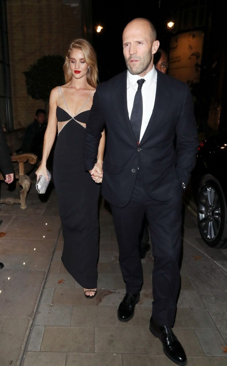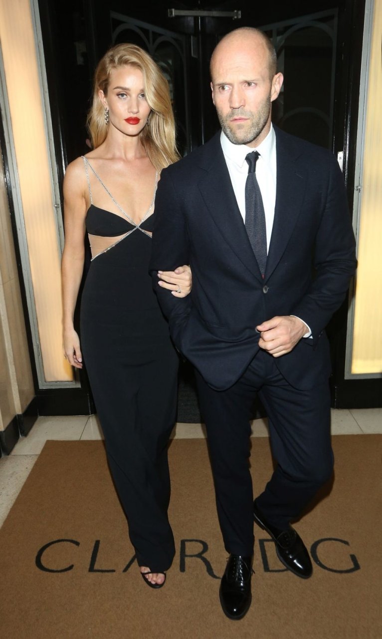 Le mannequin Rosie Huntington-Whiteley et Jason Statham assistent aux Harper’s Bazaar Women Of The Year Awards 2019 à l’hôtel Claridge’s à Londres, le 29/10/2019.