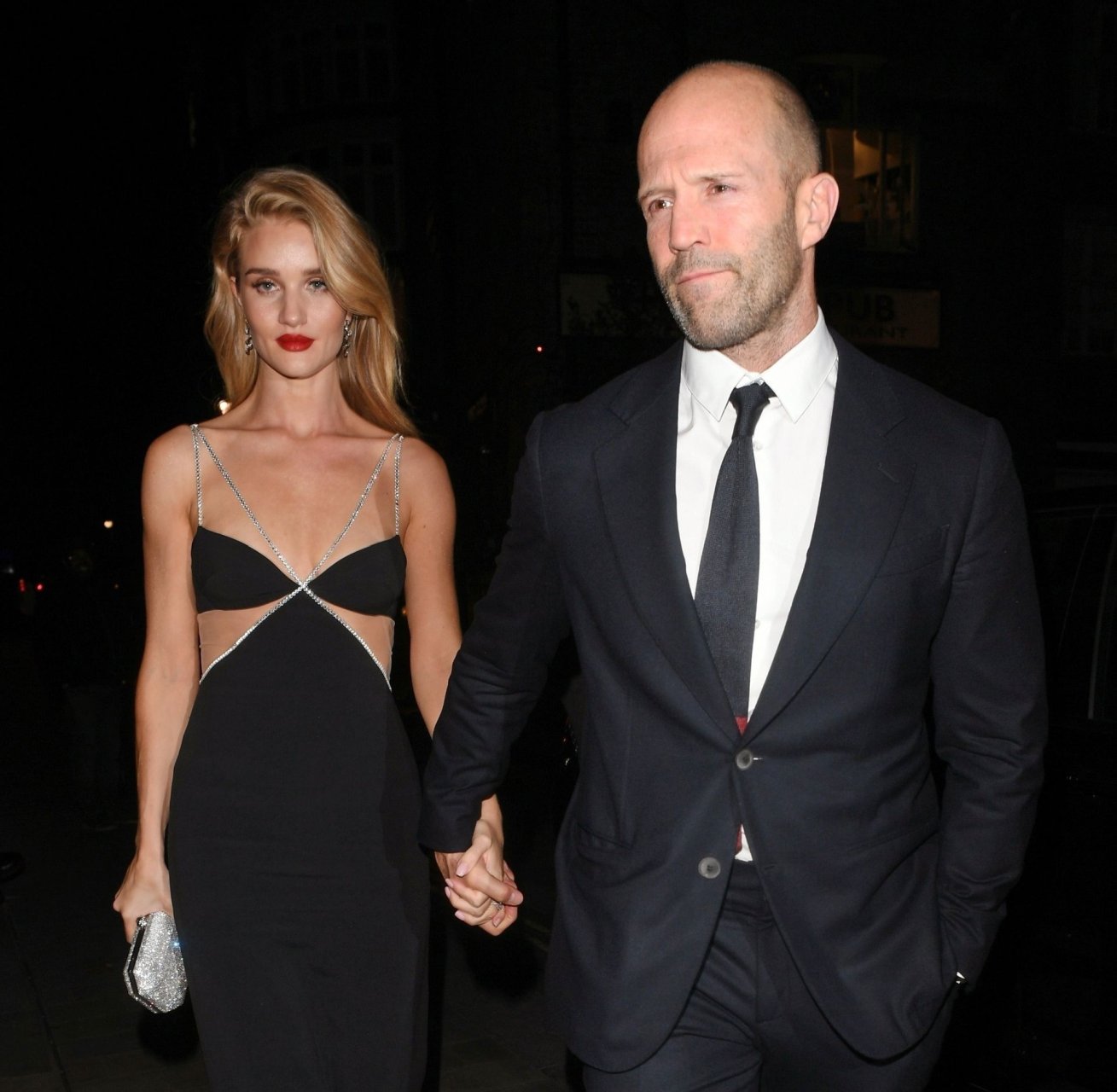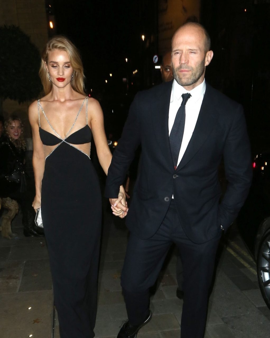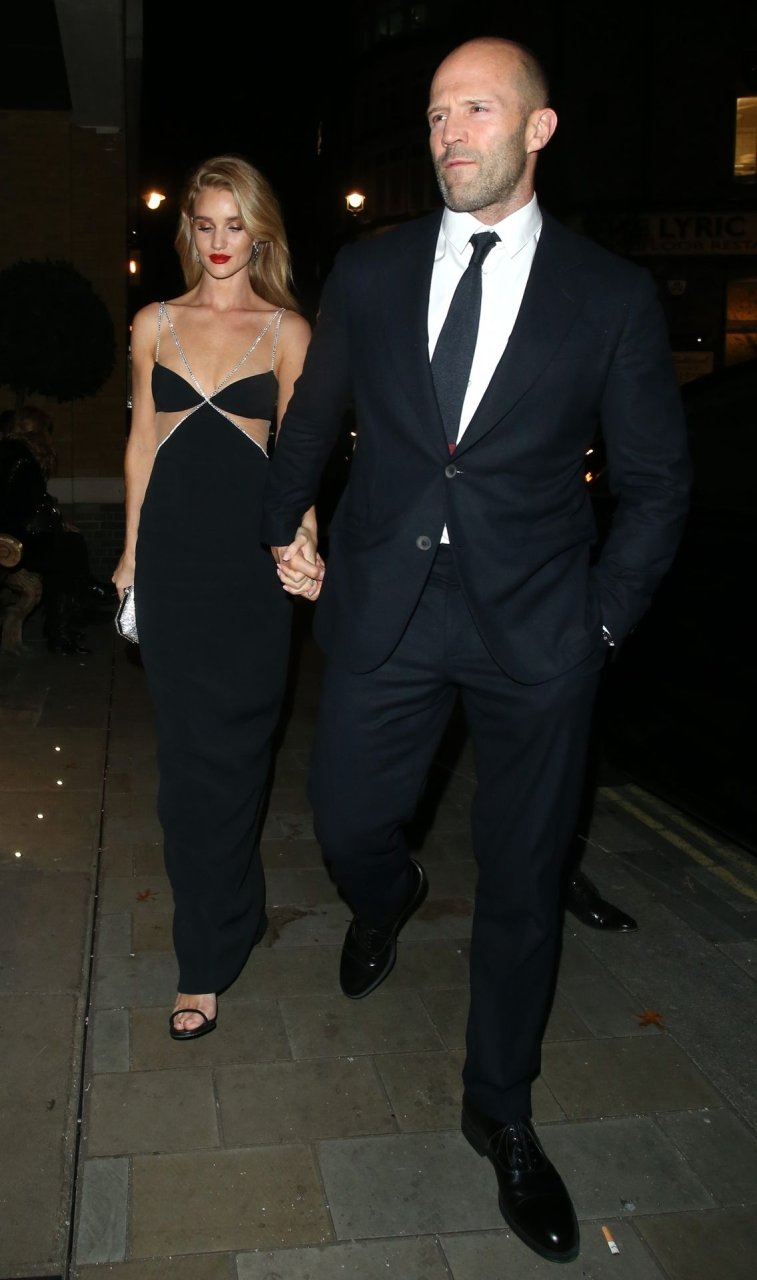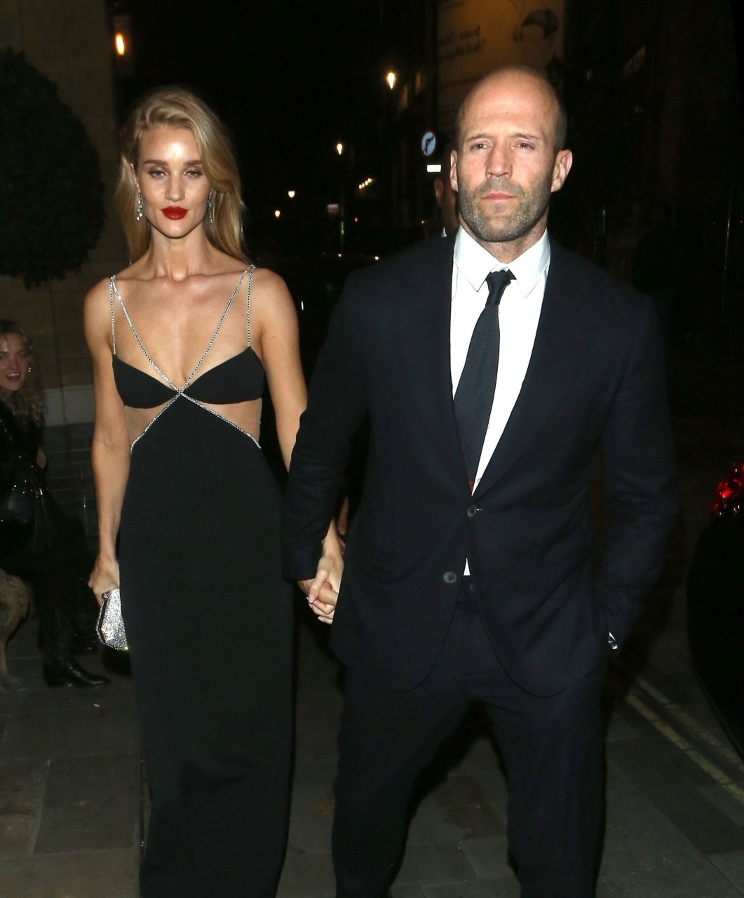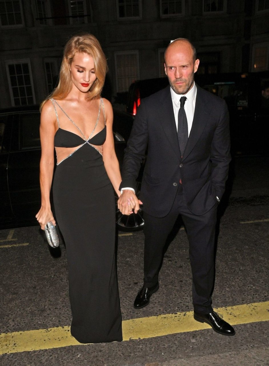 Le mannequin Rosie Huntington-Whiteley et Jason Statham assistent aux Harper’s Bazaar Women Of The Year Awards 2019 à l’hôtel Claridge’s à Londres, le 29/10/2019.