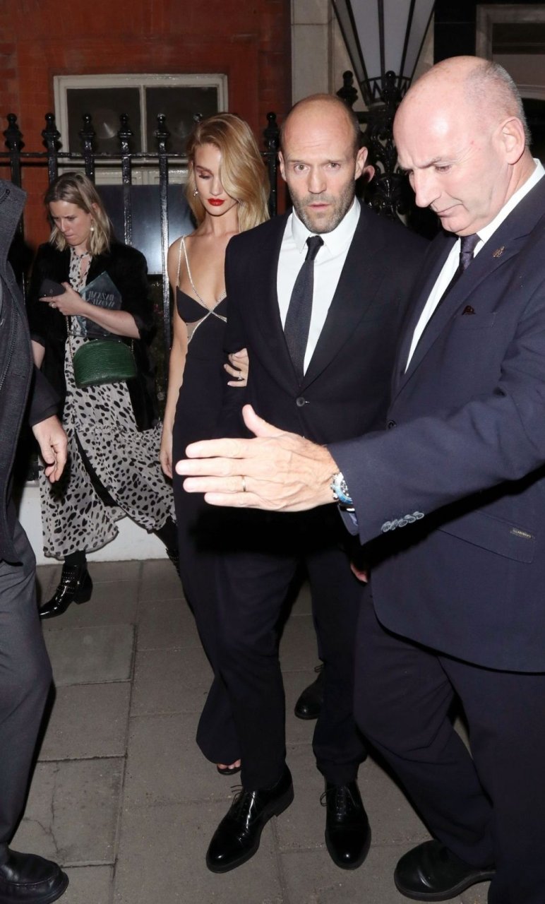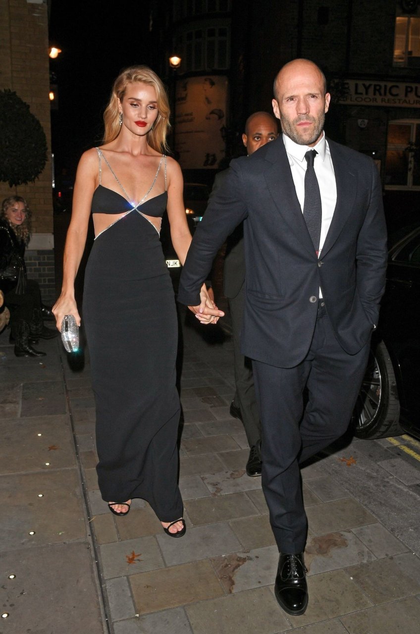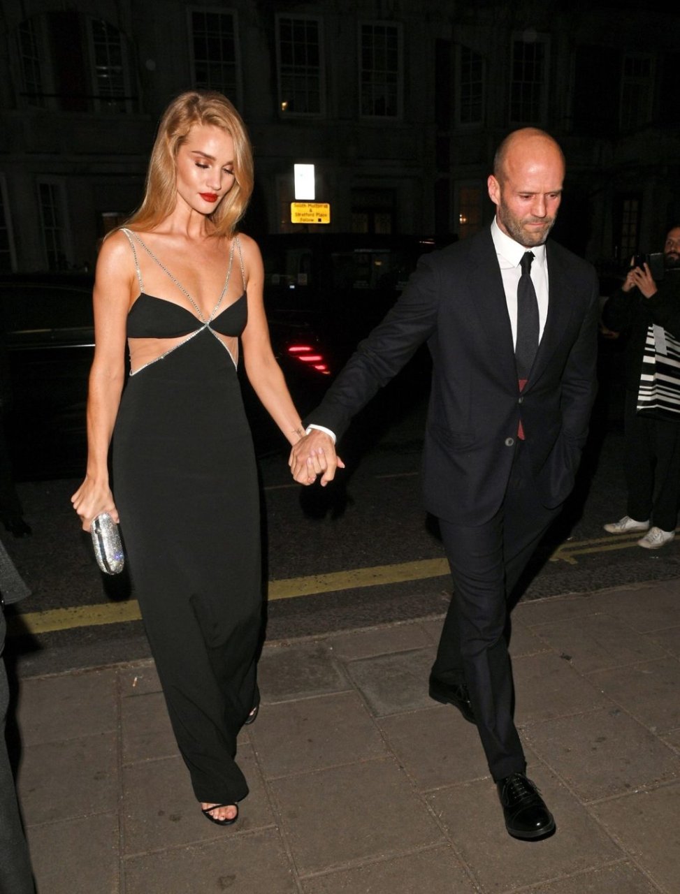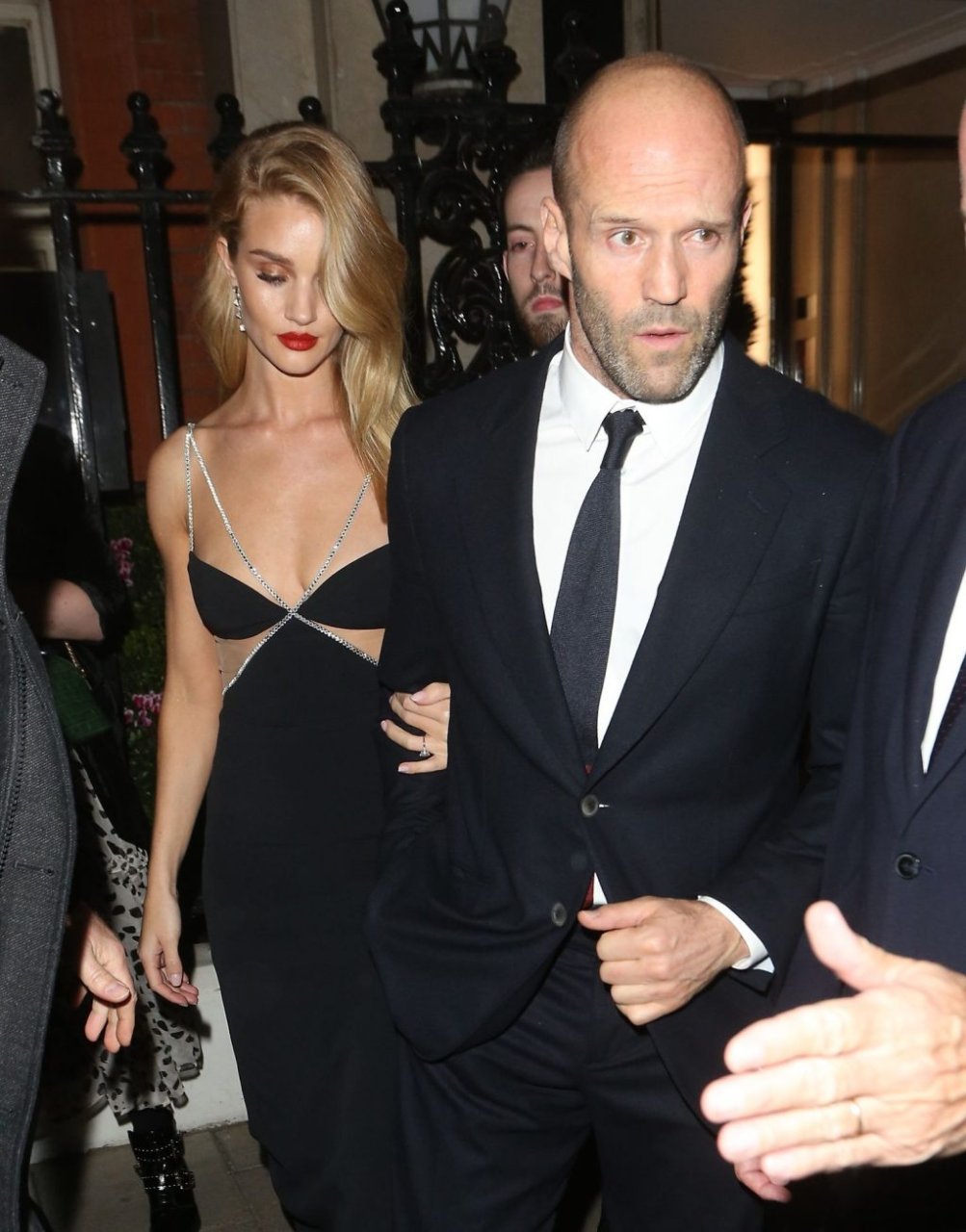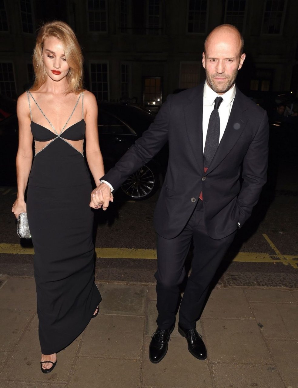 Le mannequin Rosie Huntington-Whiteley et Jason Statham assistent aux Harper’s Bazaar Women Of The Year Awards 2019 à l’hôtel Claridge’s à Londres, le 29/10/2019.
