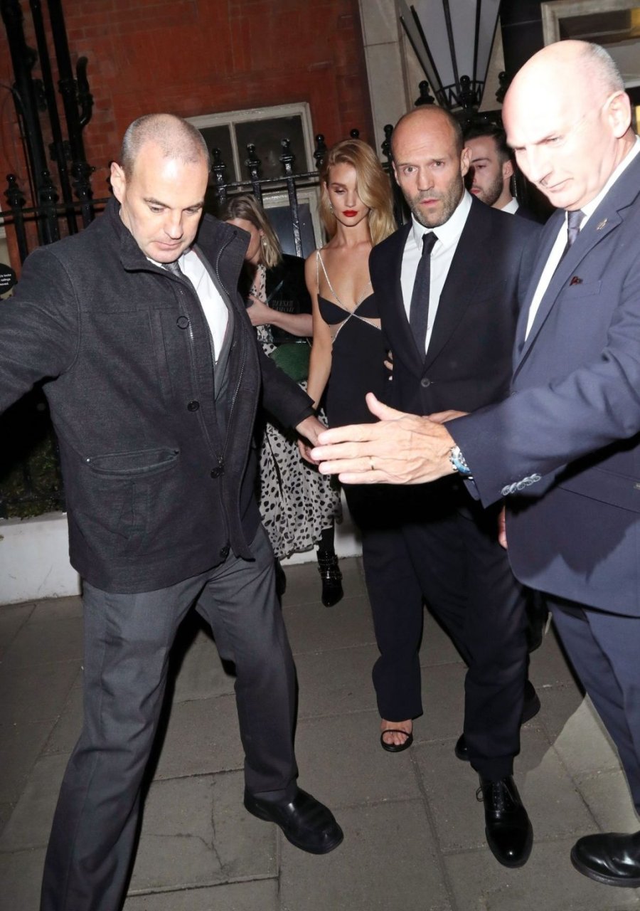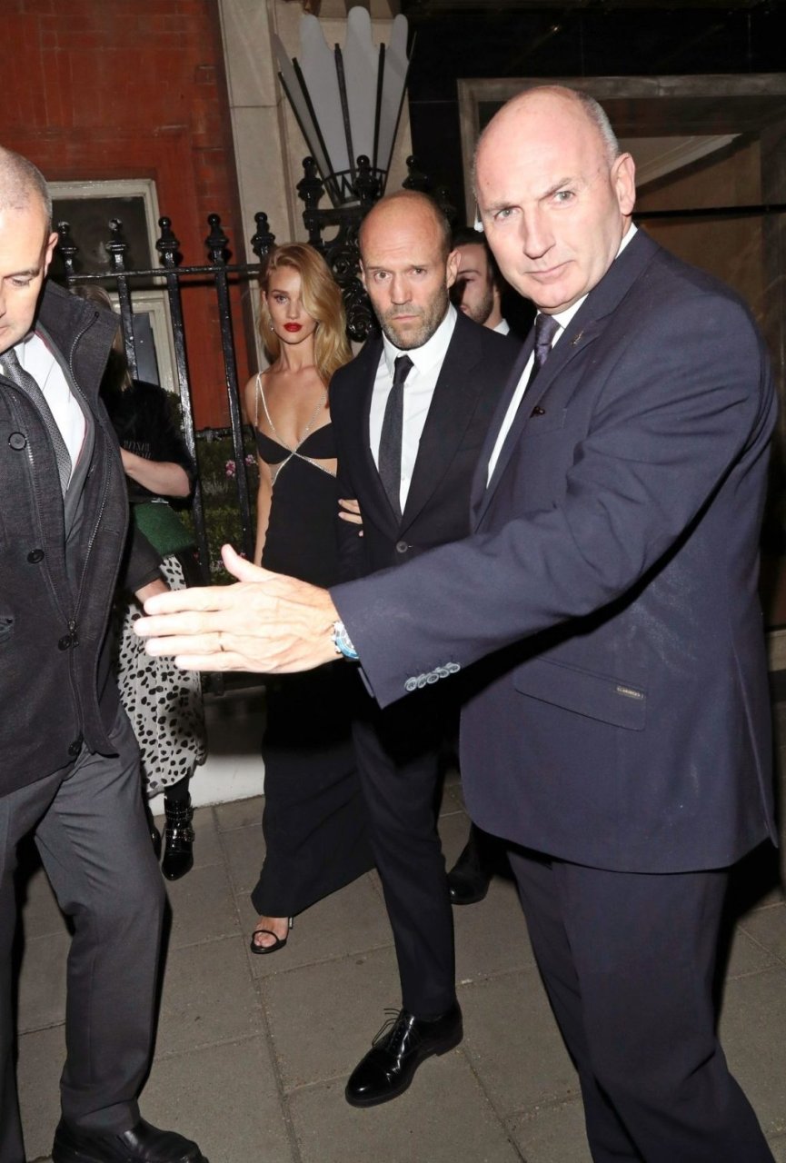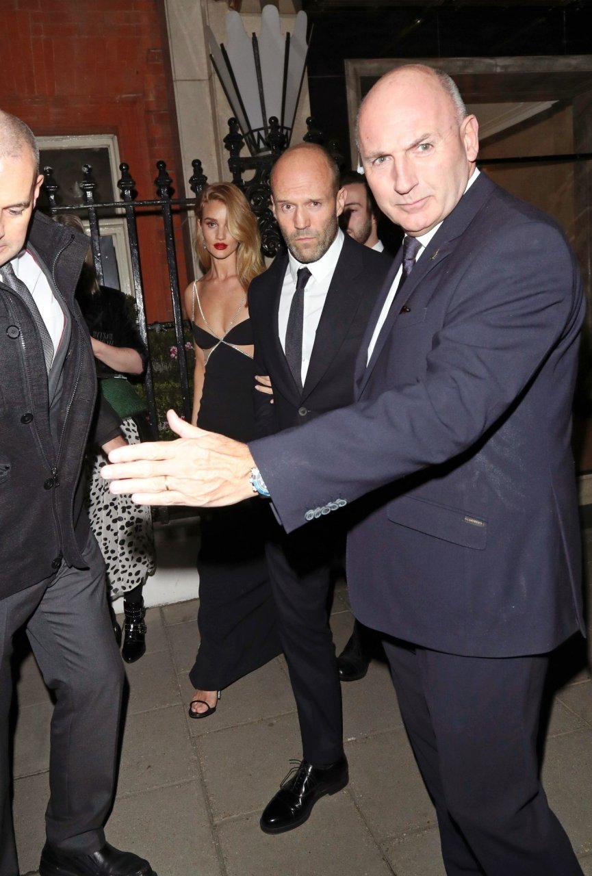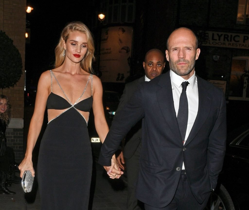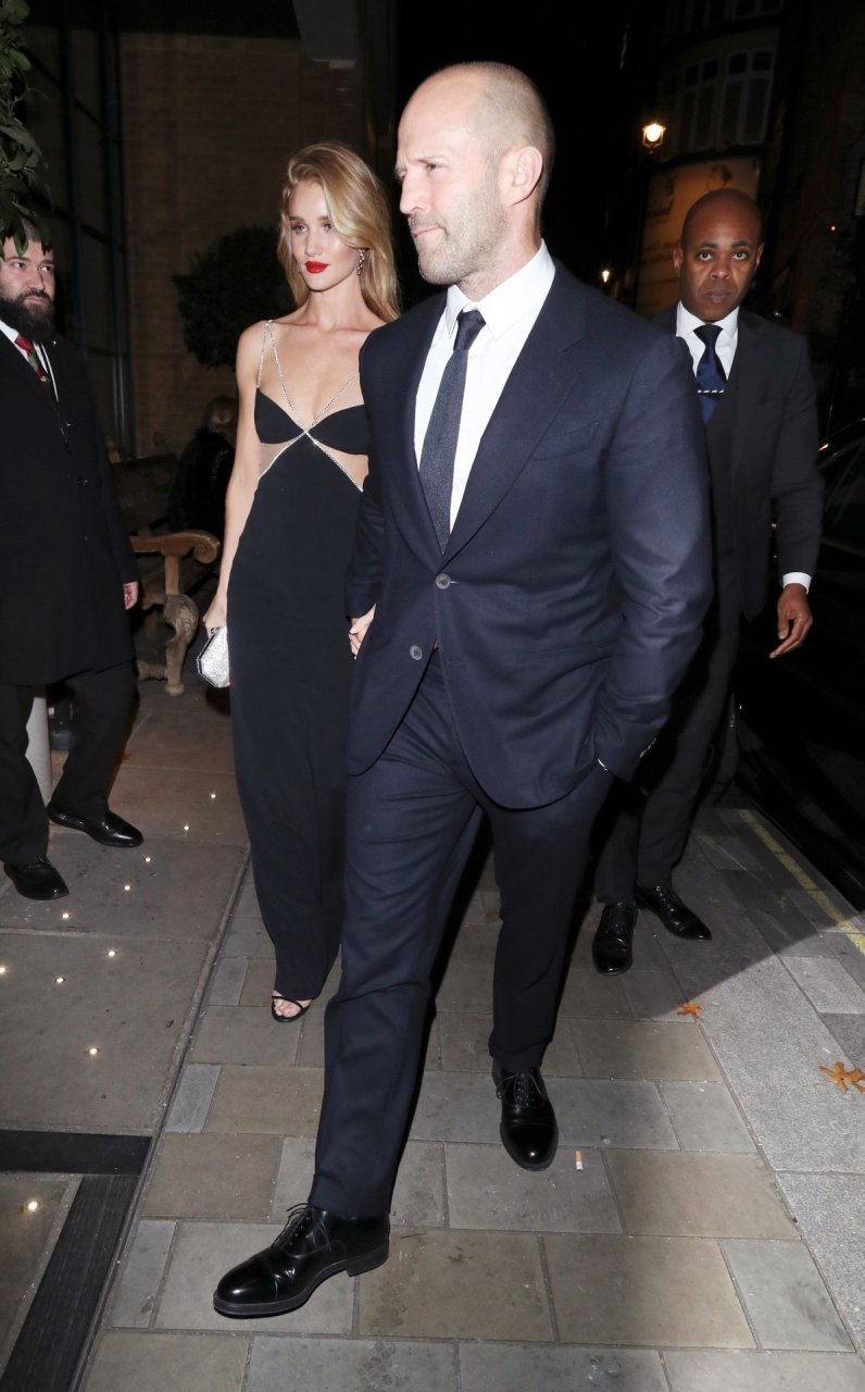 Le mannequin Rosie Huntington-Whiteley et Jason Statham assistent aux Harper’s Bazaar Women Of The Year Awards 2019 à l’hôtel Claridge’s à Londres, le 29/10/2019.