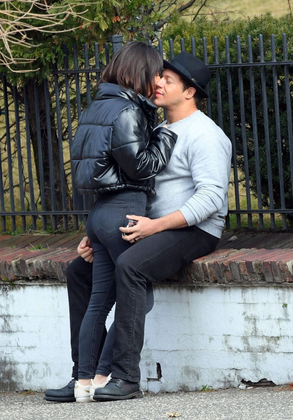Les jeunes mariés Roxanne & Jason Carrion ont été aperçus près de leur domicile à New York en train de faire des courses de dernière minute dans leur magasin local quelques heures avant que la ville n’impose un confinement, 23/03/2020.