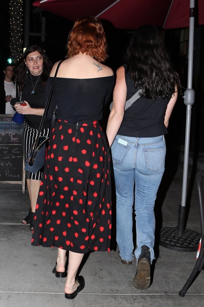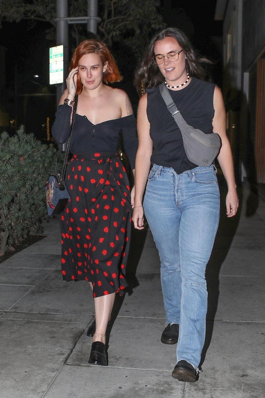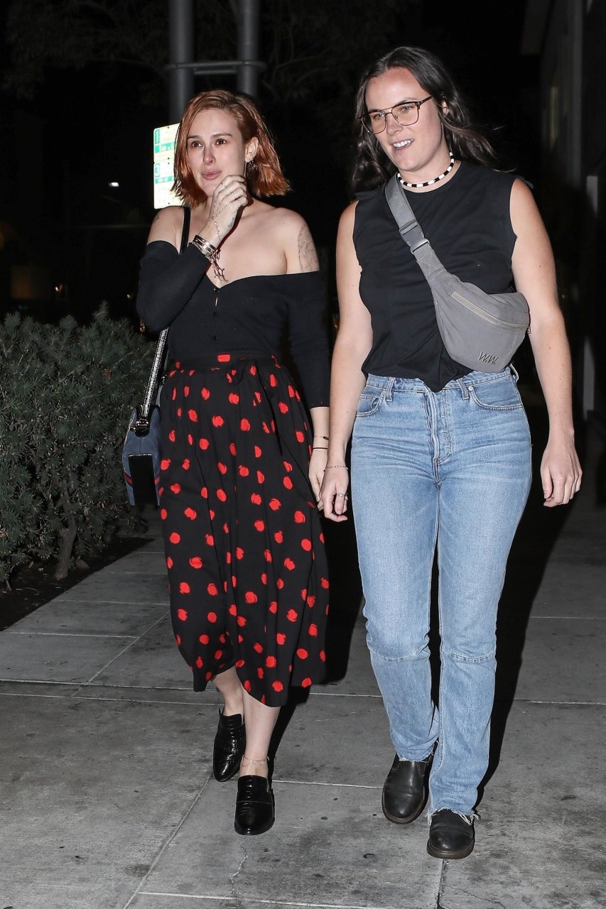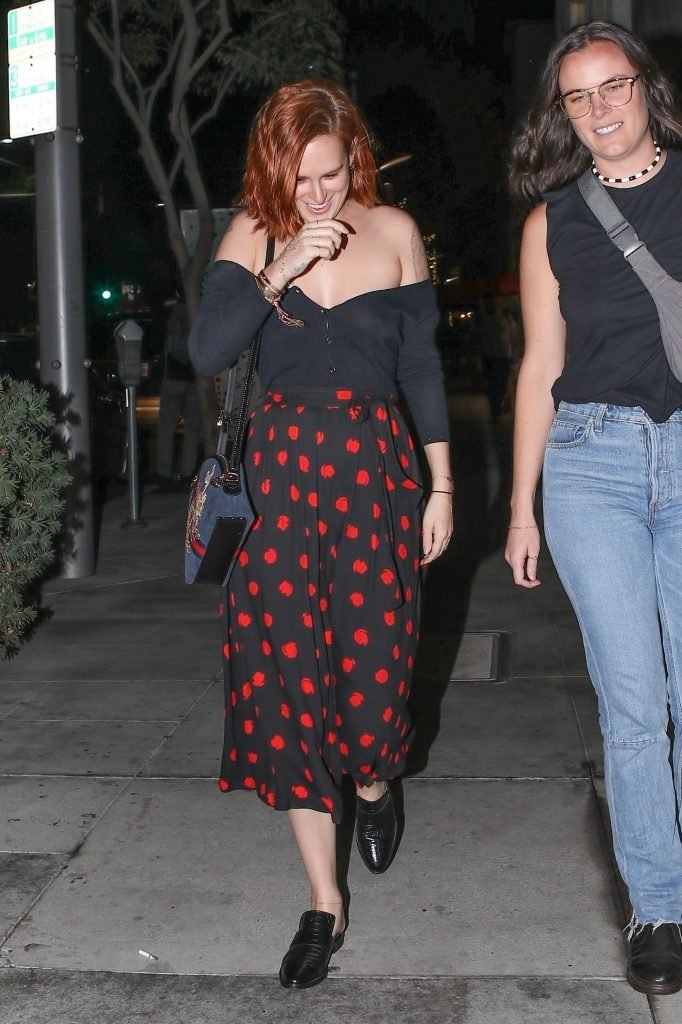 Actrice Rumer Willis, 29 ans, porte une chemise transparente sans soutien-gorge lors d’un dîner au Via Alloro à Beverly Hills avec une amie, 01/11/2018.