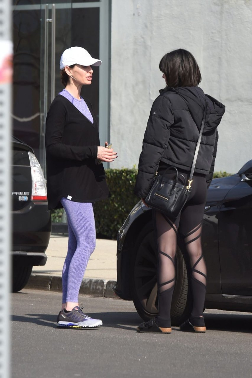 Rumer Willis est vue en train d’embrasser un ami après avoir fait de l’exercice à la salle de sport à Los Angeles, 29/01/2019. Rumer porte des leggings noirs transparents.