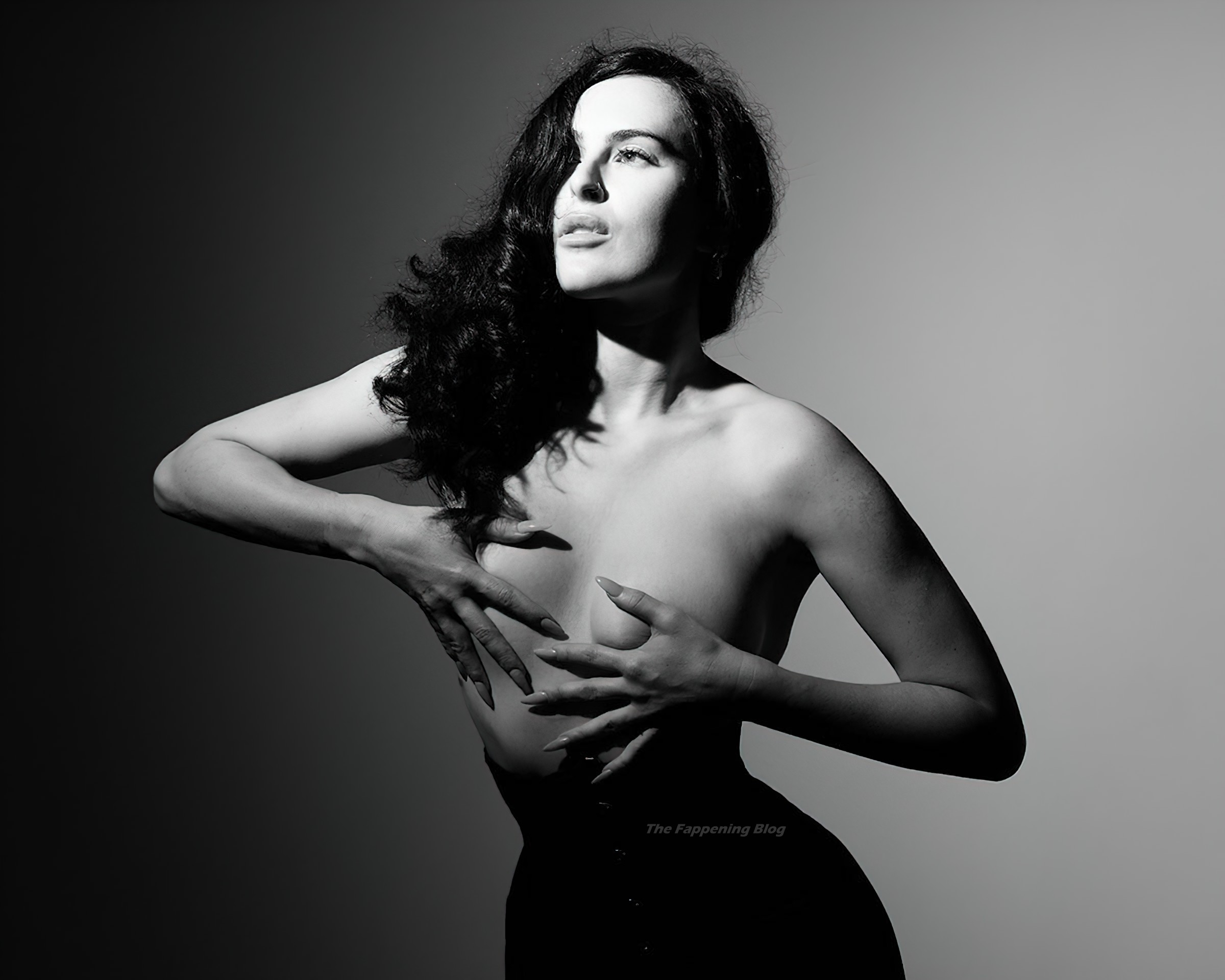 L’actrice Rumer Willis pose seins nus, couvrant ses petits seins nus lors d’une séance photo par Tyler Shields – Instagram, 18/05/2021.