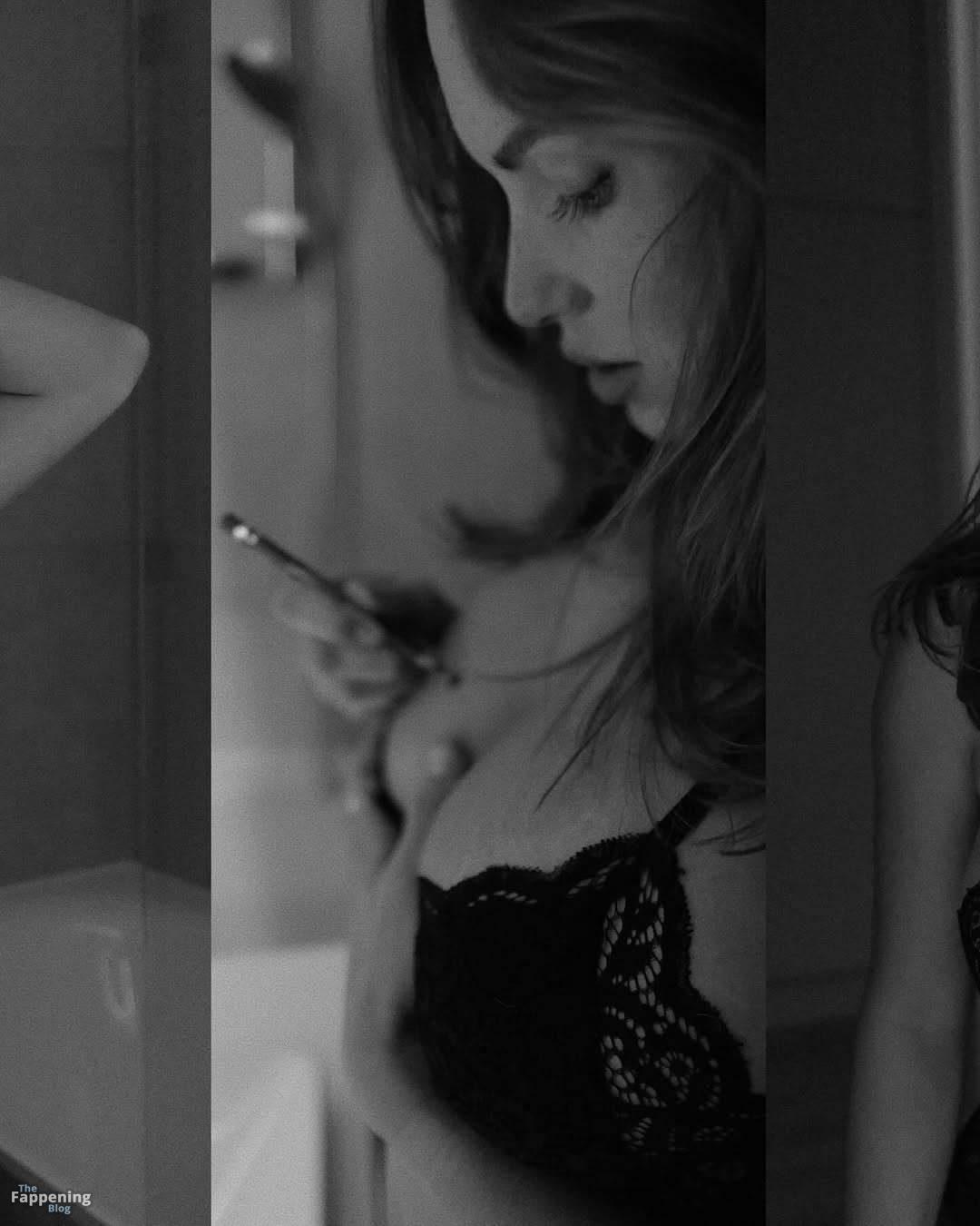Le mannequin letton Sabine Jemeljanova a ce charme facile et incroyablement sexy dans ses nouvelles photos en noir et blanc devant le miroir. Arborant un ensemble de lingerie en dentelle noire élégant, elle met en valeur sa poitrine généreuse.