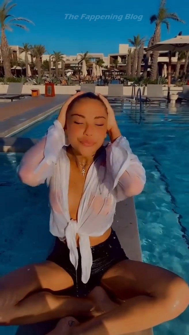 Le mannequin Sahara Ray profite de ses vacances à Tulum, au Mexique. La star d’Instagram affiche son corps nu en posant dans la piscine complètement nue et dans un t-shirt blanc mouillé et transparent.