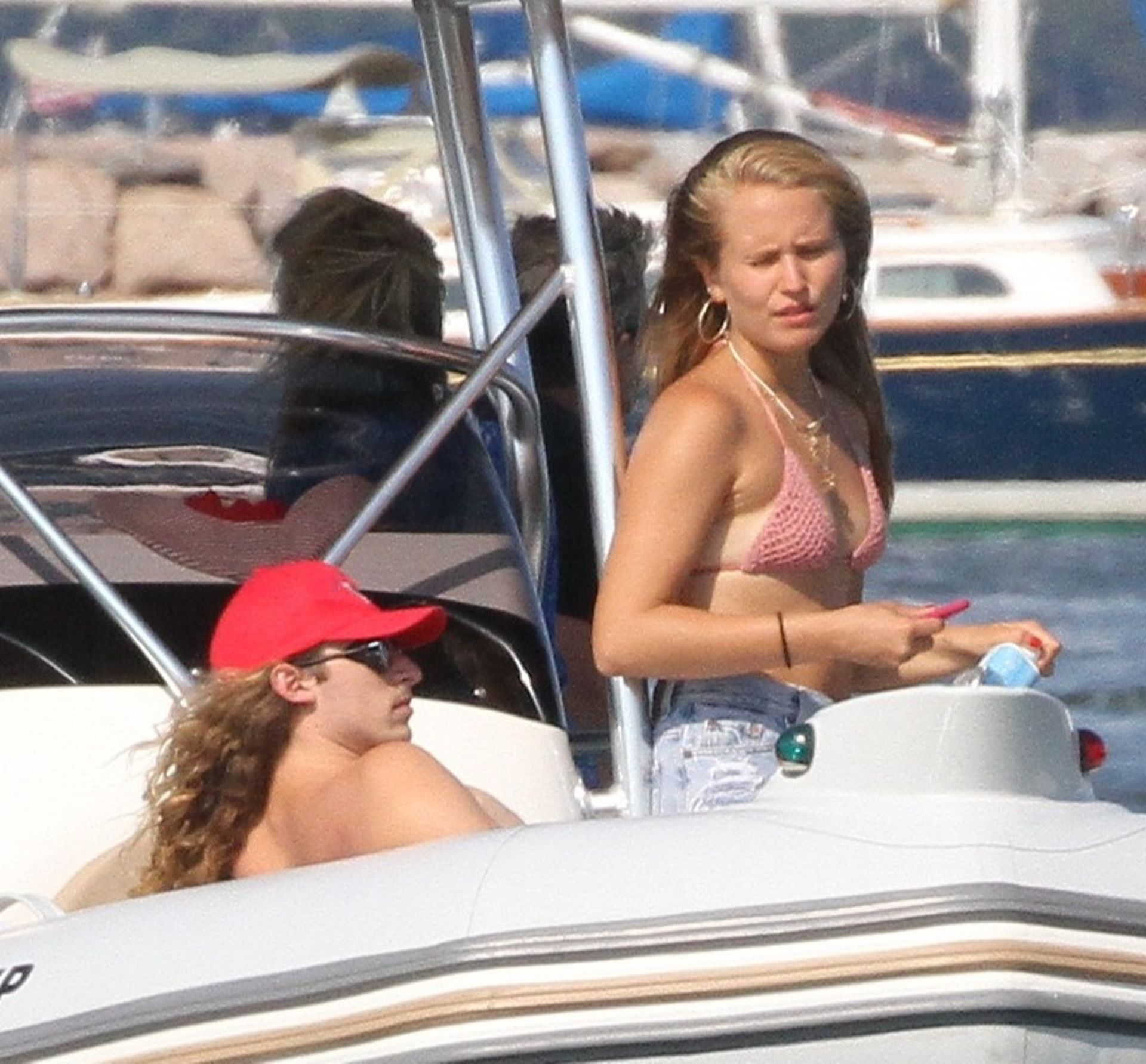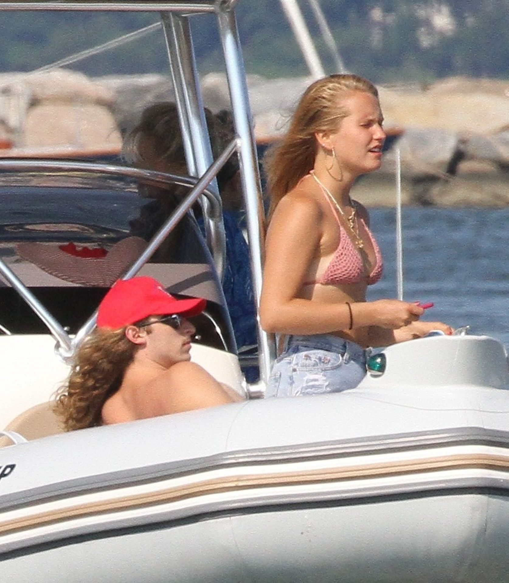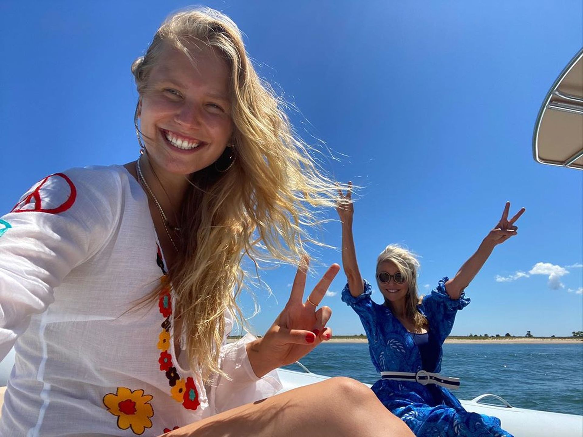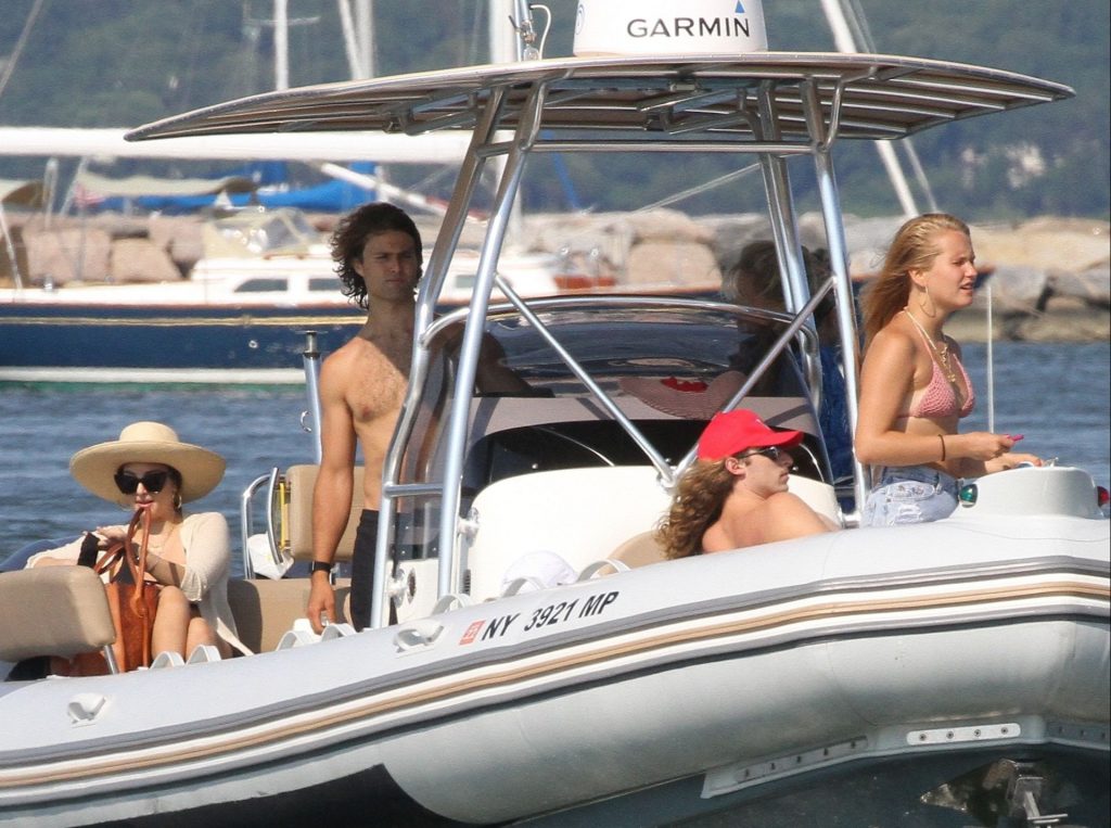 Sailor Brinkley Cook célèbre son anniversaire lors d’une promenade en bateau avec sa famille et son petit ami Ben Sosne dans les Hamptons, 07/02/2020.