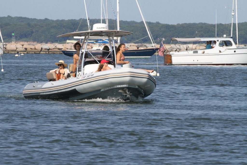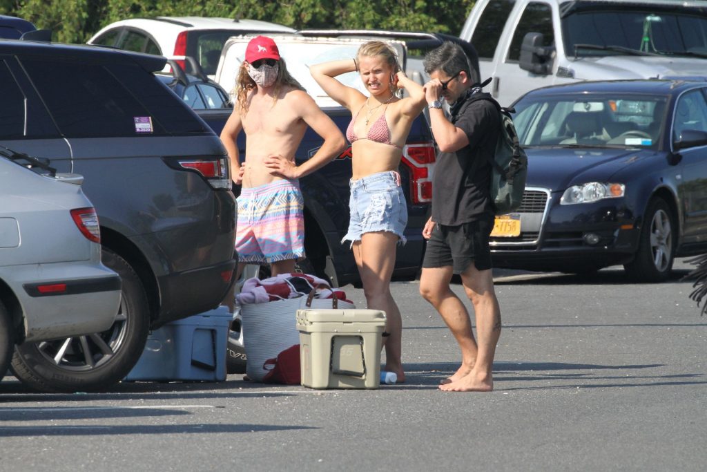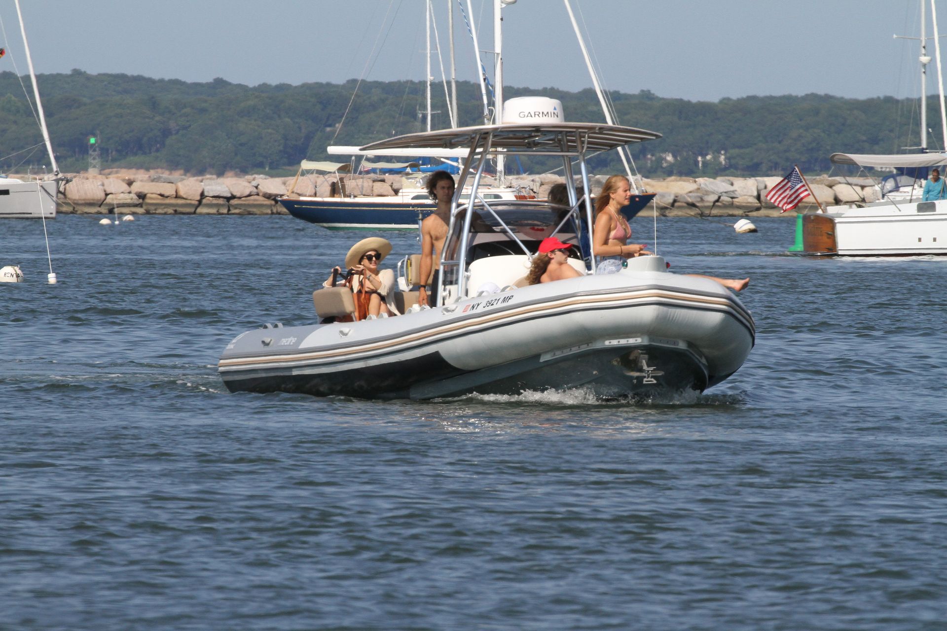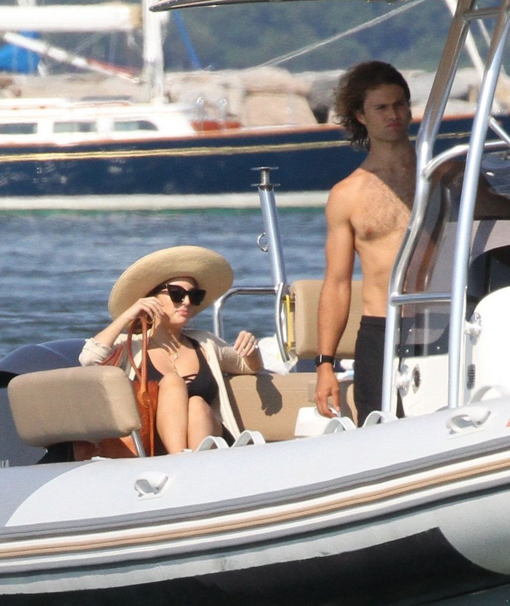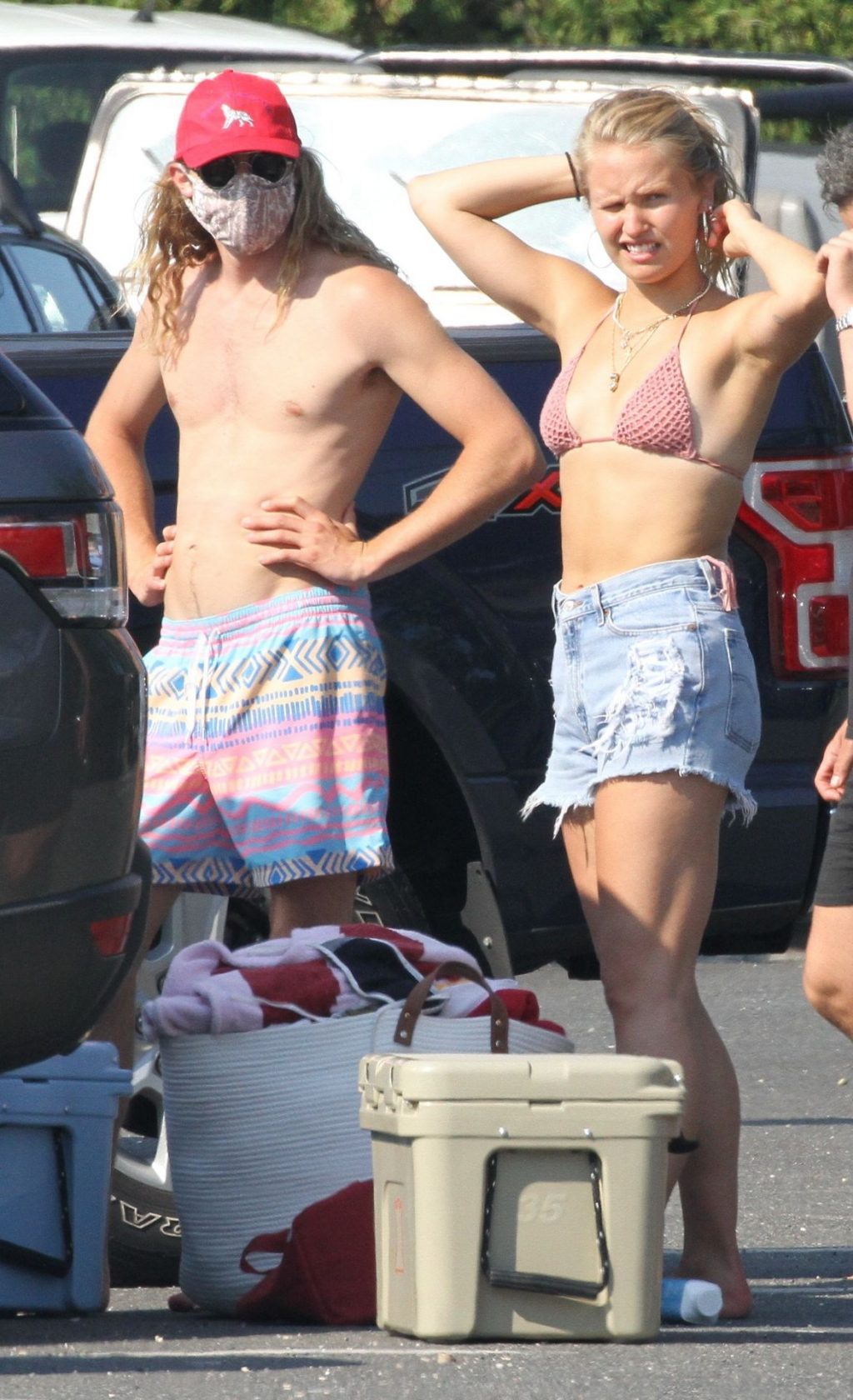 Sailor Brinkley Cook célèbre son anniversaire lors d’une promenade en bateau avec sa famille et son petit ami Ben Sosne dans les Hamptons, 07/02/2020.