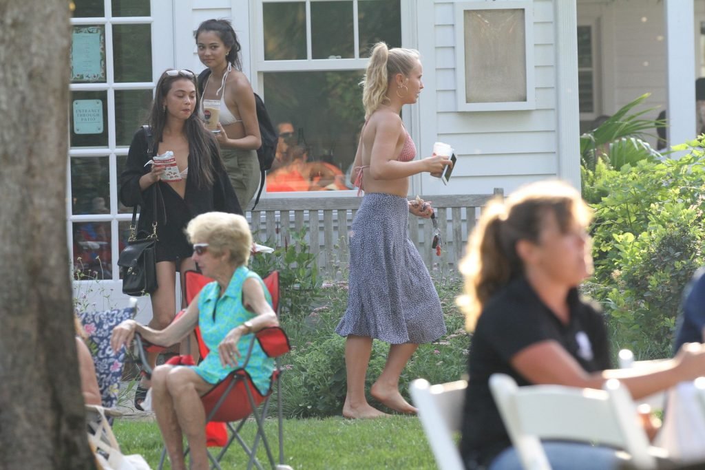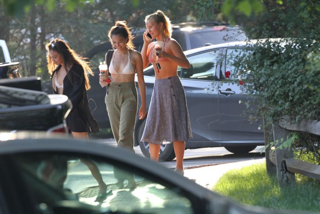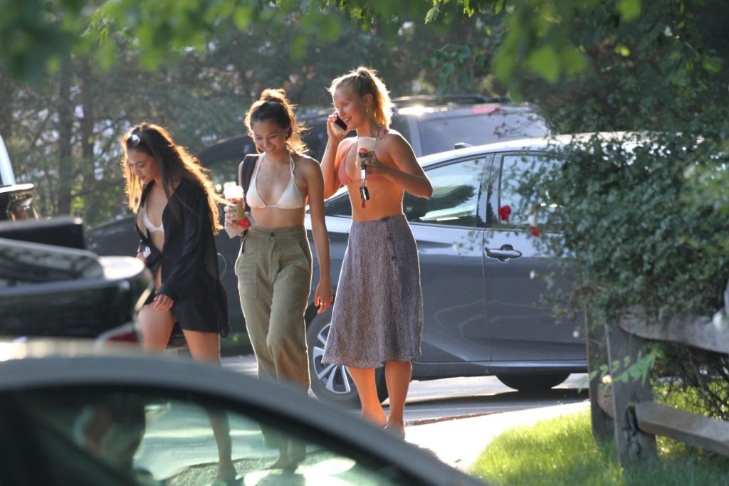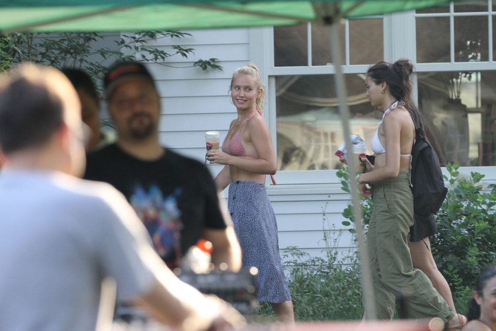 Sailor Brinkley porte un haut de bikini et une robe bleue lors d’une sortie dans les Hamptons pendant le week-end alors qu’elle était avec des amis, 22/07/2019.