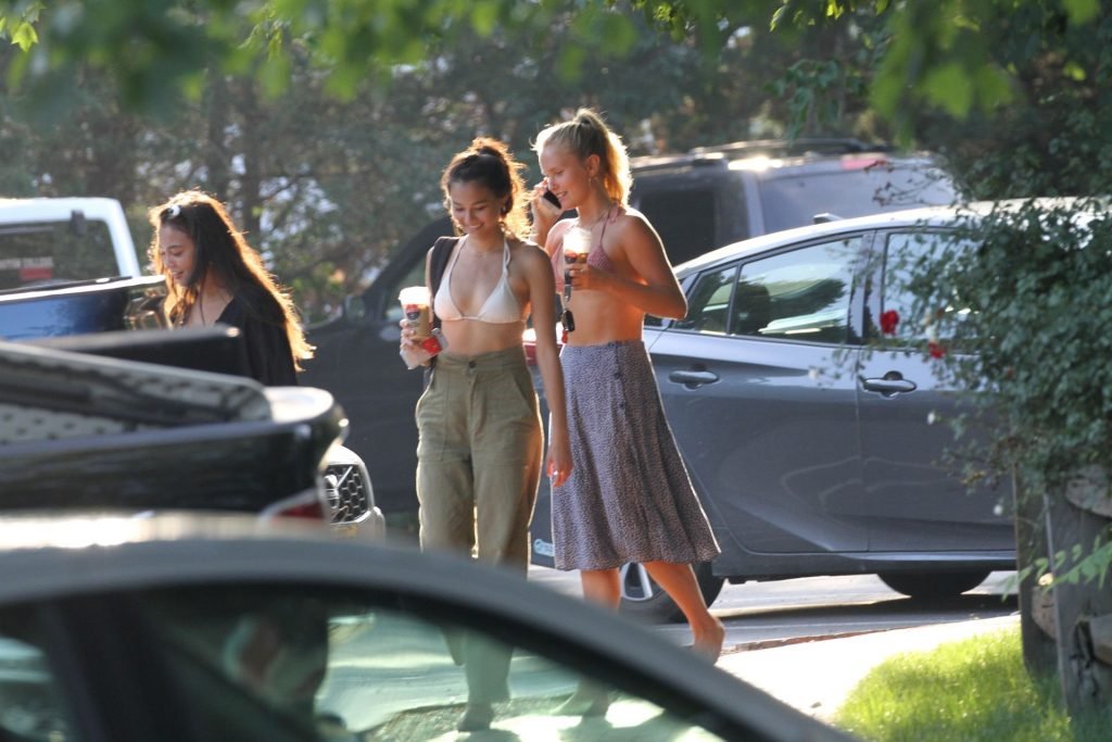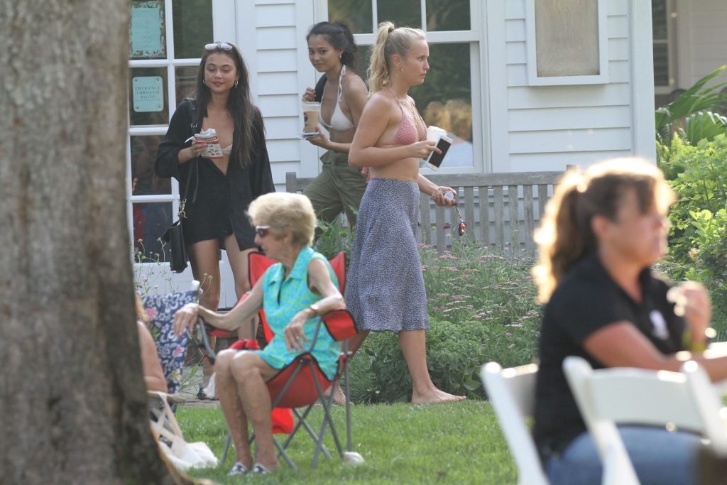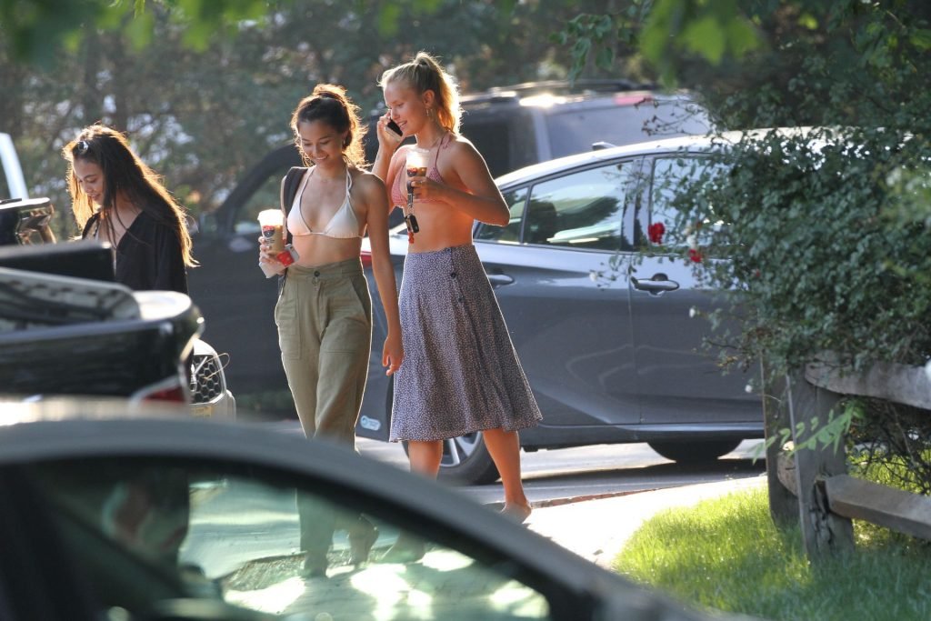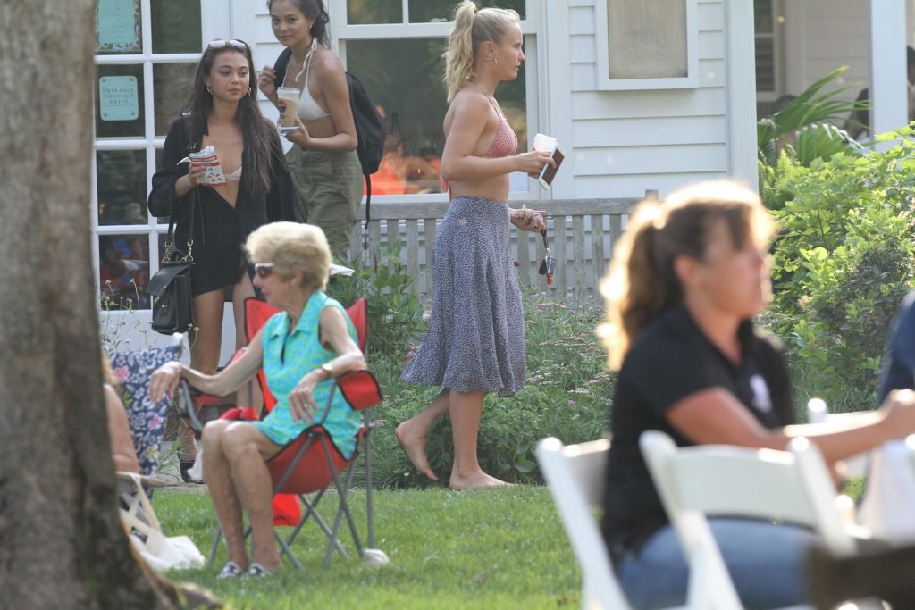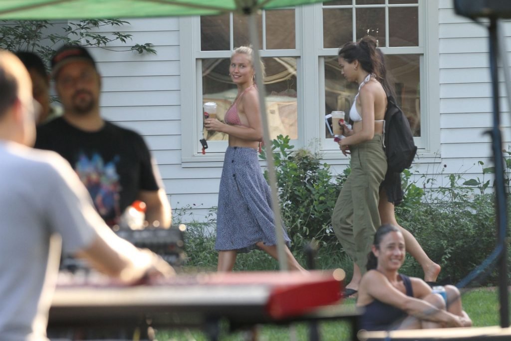 Sailor Brinkley porte un haut de bikini et une robe bleue lors d’une sortie dans les Hamptons pendant le week-end alors qu’elle était avec des amis, 22/07/2019.