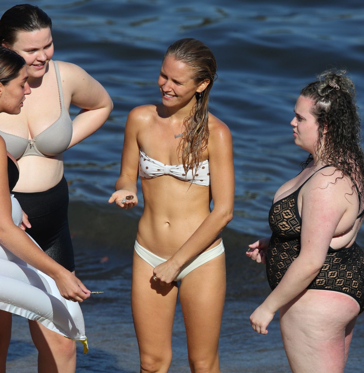 Le mannequin Titless Sailor Brinkley Cook a été photographié en bikini blanc à Sydney en cherchant des coquillages, le 17/01/2019.