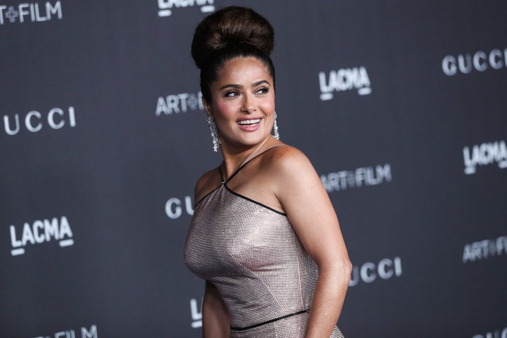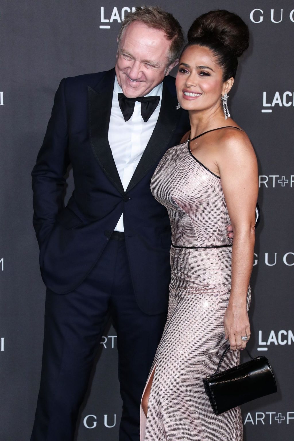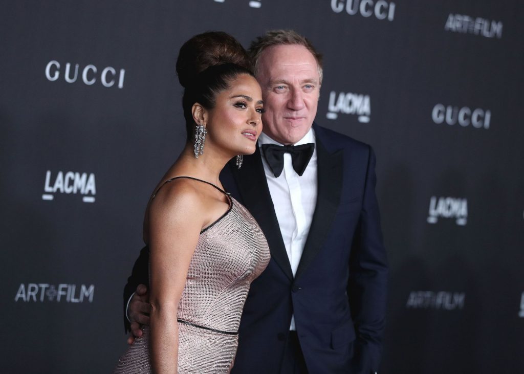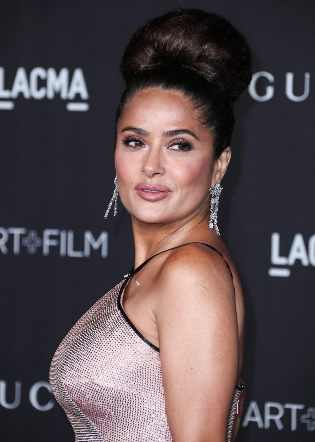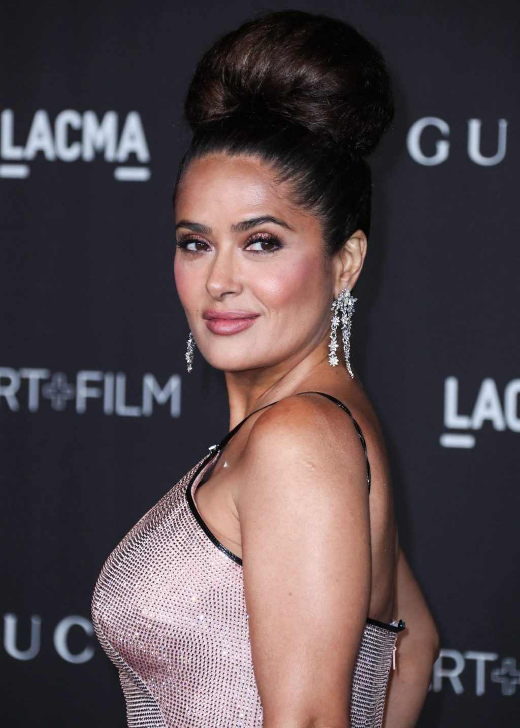 L’actrice pulpeuse Salma Hayek Pinault portant Gucci arrive au Gala Art + Film LACMA 2019 qui s’est tenu au Los Angeles County Museum of Art le 2 novembre 2019 à Los Angeles.