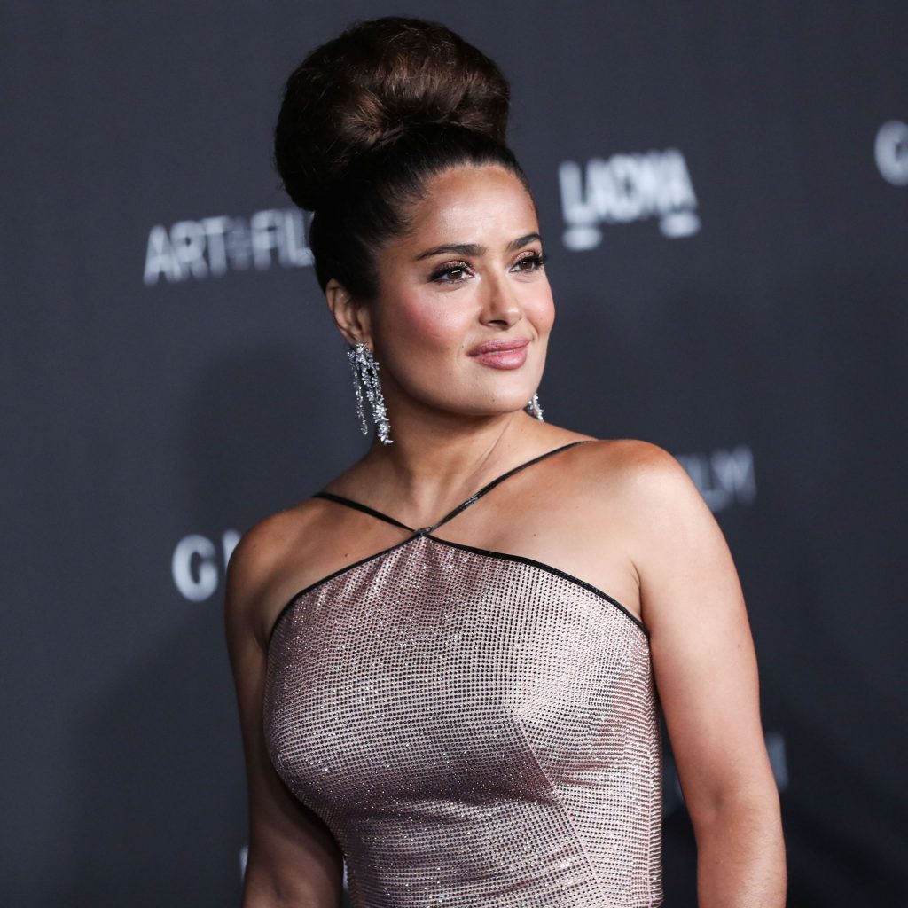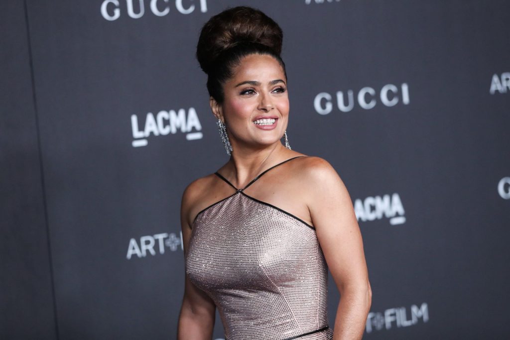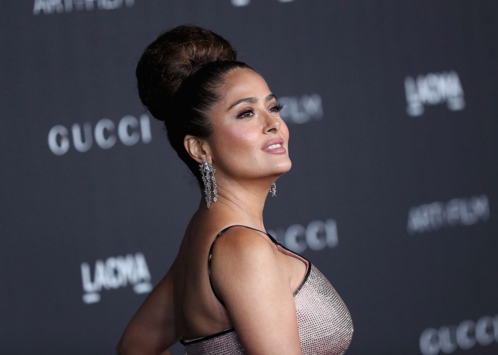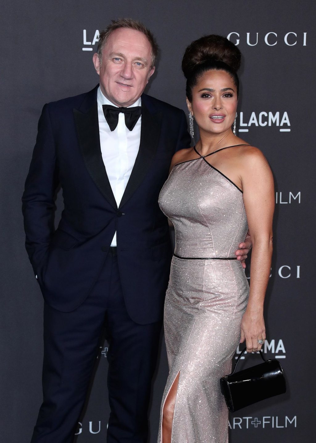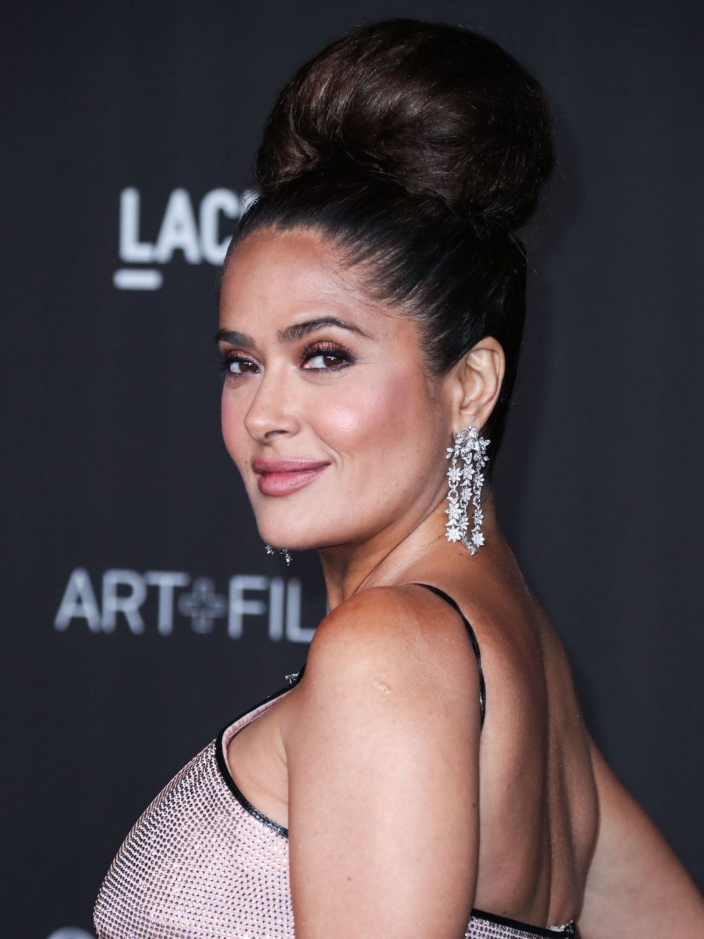 L’actrice pulpeuse Salma Hayek Pinault portant Gucci arrive au Gala Art + Film LACMA 2019 qui s’est tenu au Los Angeles County Museum of Art le 2 novembre 2019 à Los Angeles.