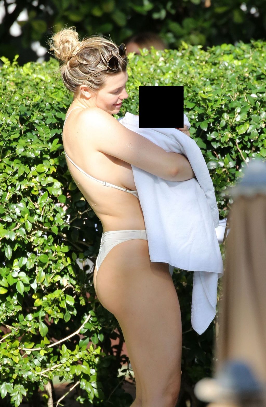 Le mannequin de Sports Illustrated et The Fappening Star Samantha Hoopes est magnifique en maillot de bain seulement deux mois après avoir donné naissance à son premier fils, George, avec son partenaire Salvatore Palella – Miami Beach, 16/11/2019.