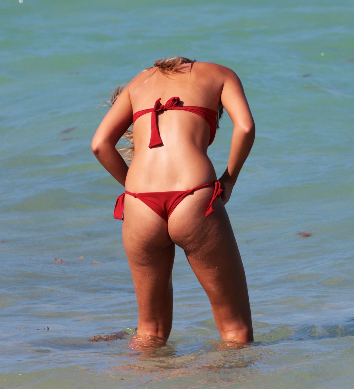 Sandra Kubicka porte un bikini string rouge avec des amis à la plage de Miami, le 29/04/2017. Sandra Kubicka est un mannequin originaire de Pologne. Âge – 22 ans (née le 22 janvier 1995).