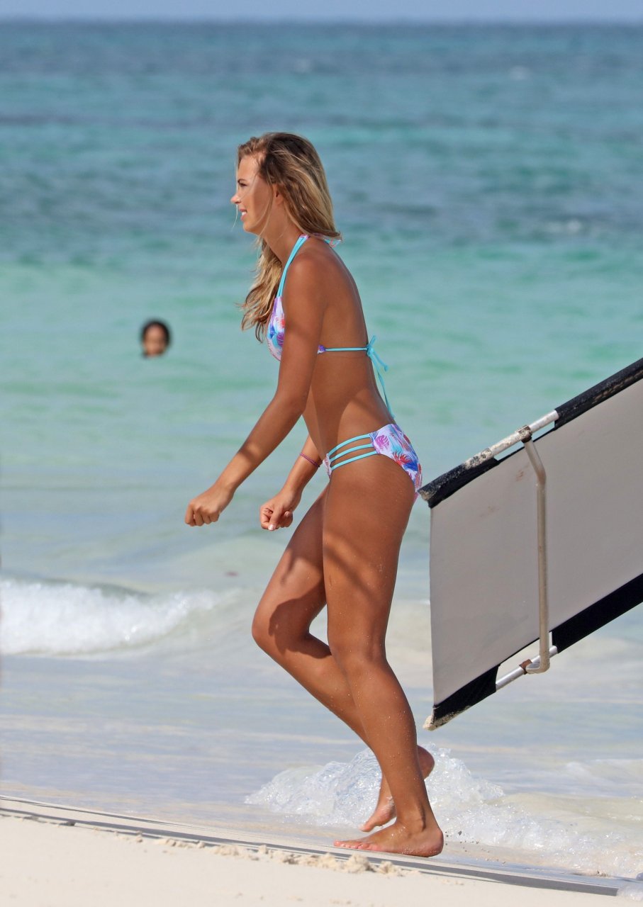 Jeune mannequin Sandra Kubicka (22 ans) réalise une nouvelle séance photo en bikini sur la plage de Tulum, Mexique, 14/09/2017.