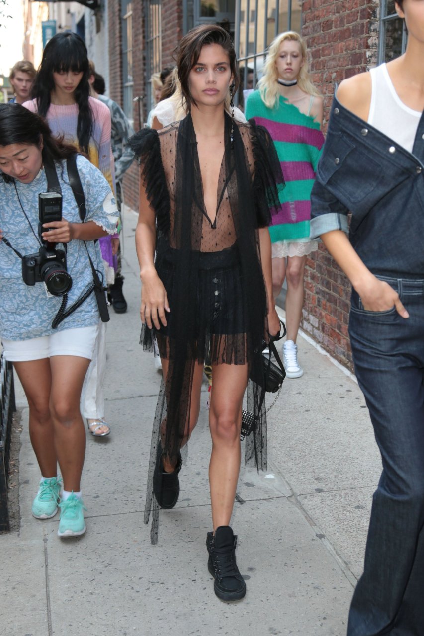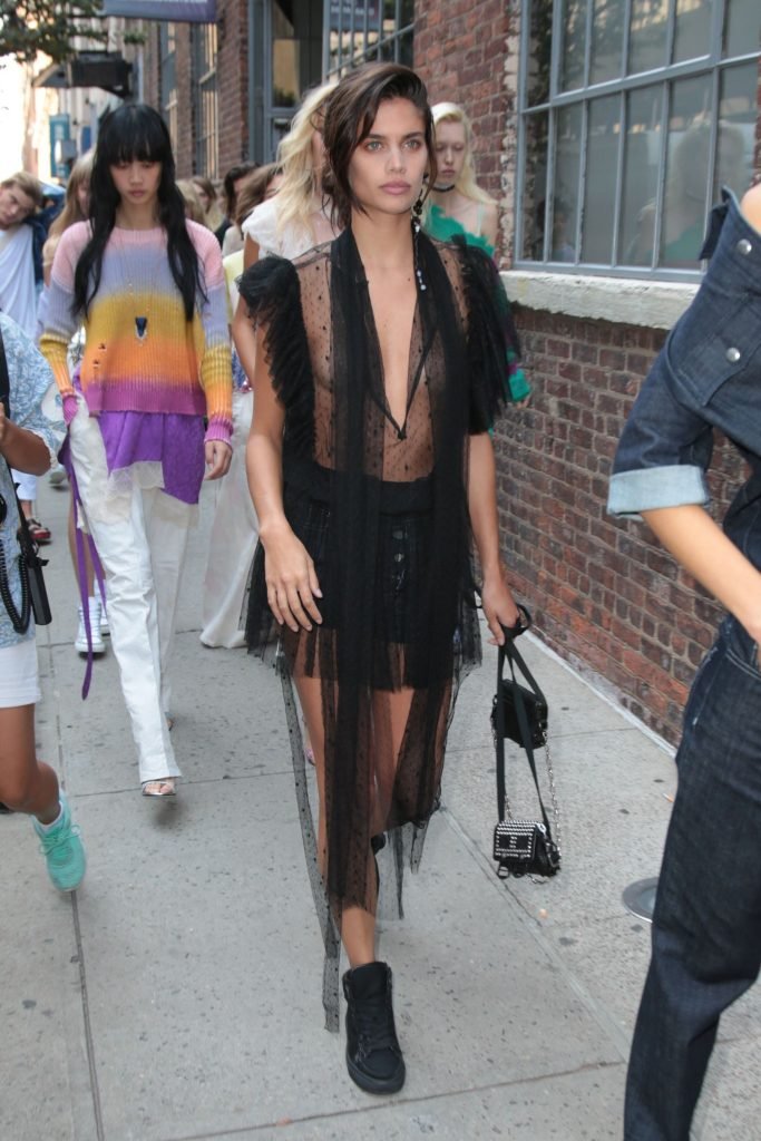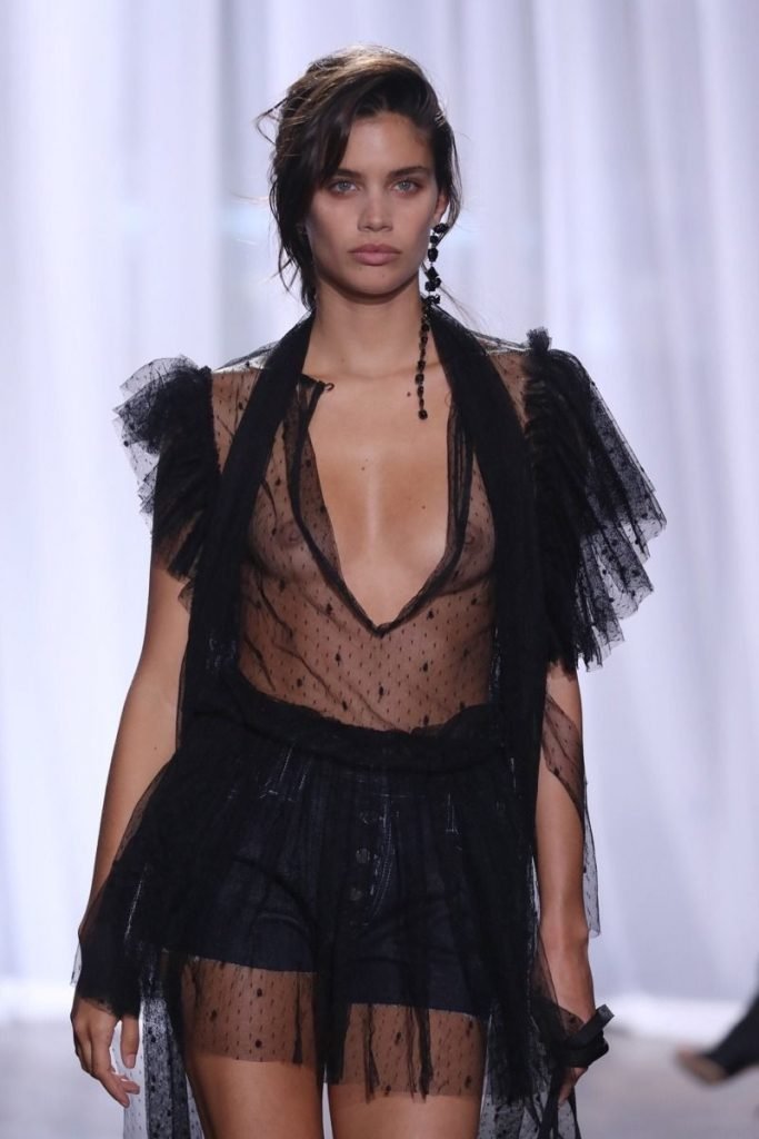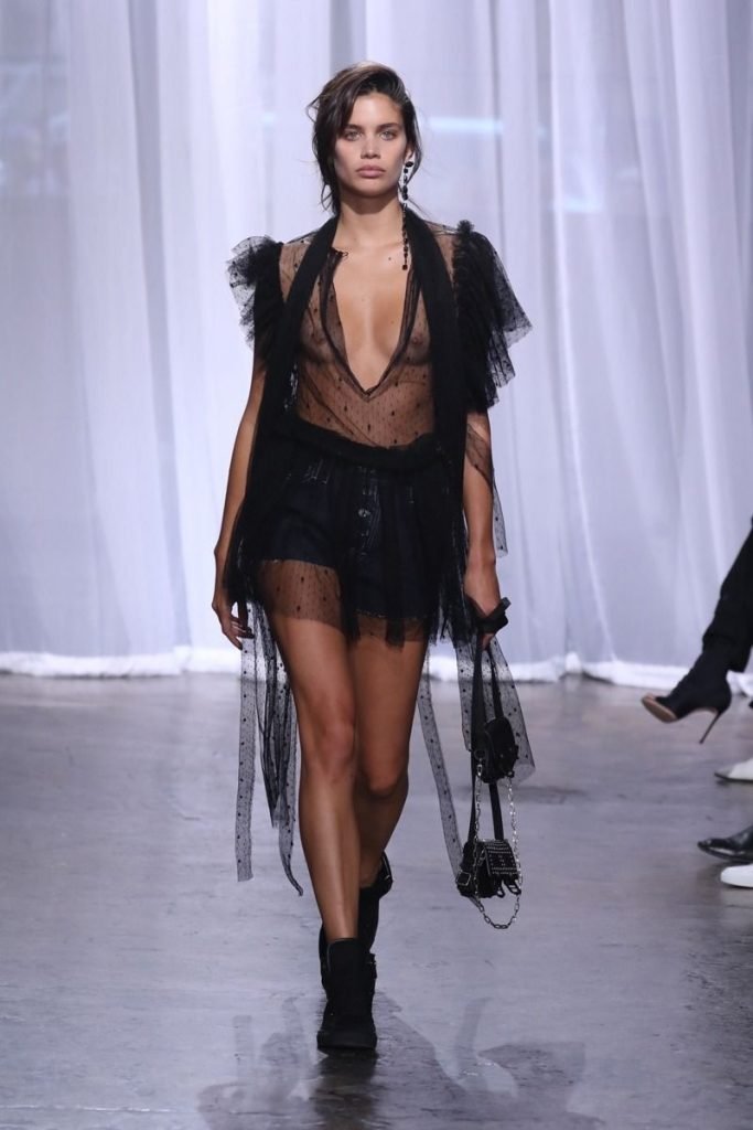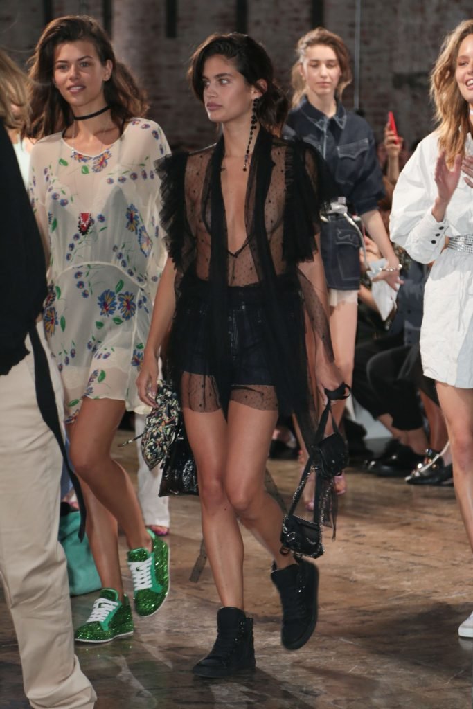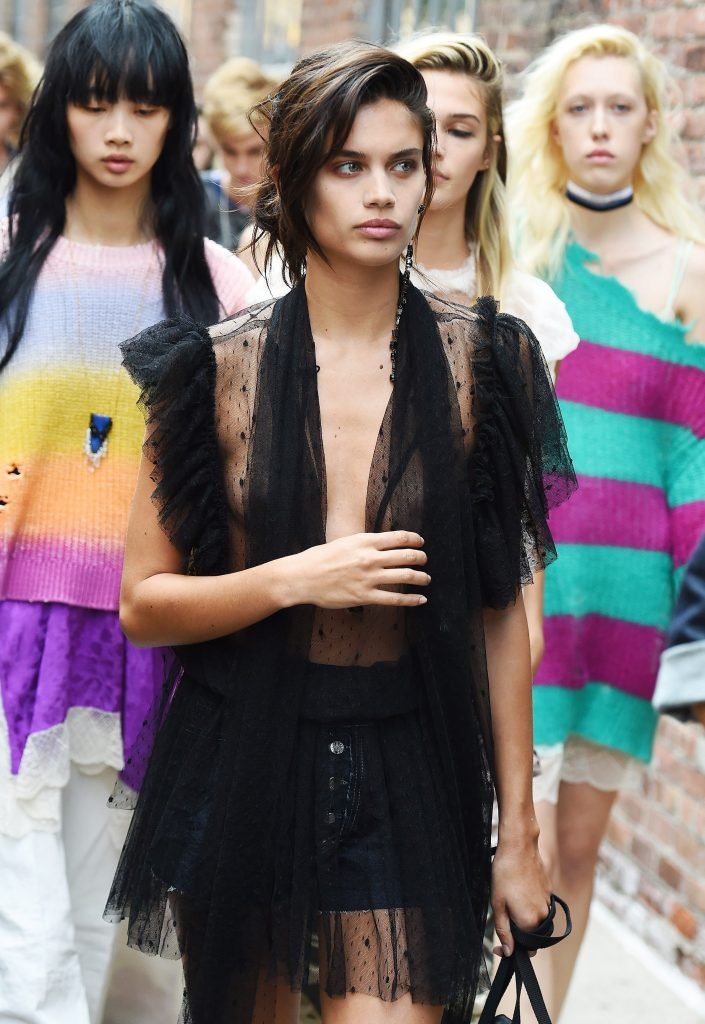 Le mannequin Sara Sampaio porte une robe noire transparente au défilé Zadig & Voltaire Printemps/Été 2018 lors de la Fashion Week de New York, 11/09/2017.