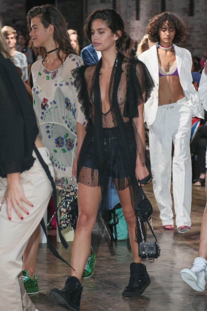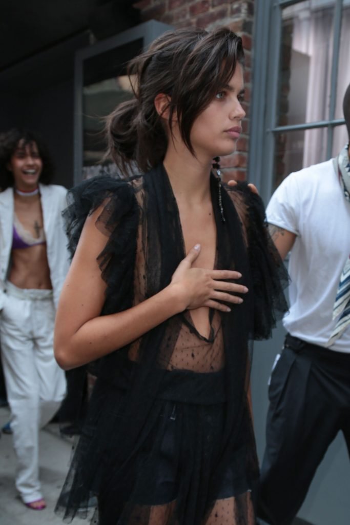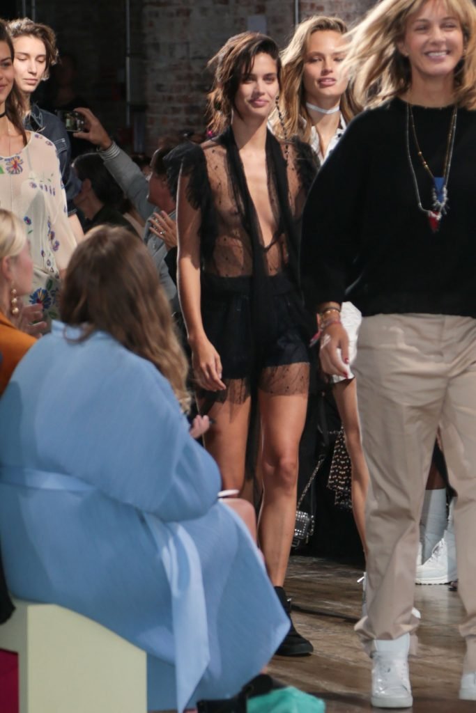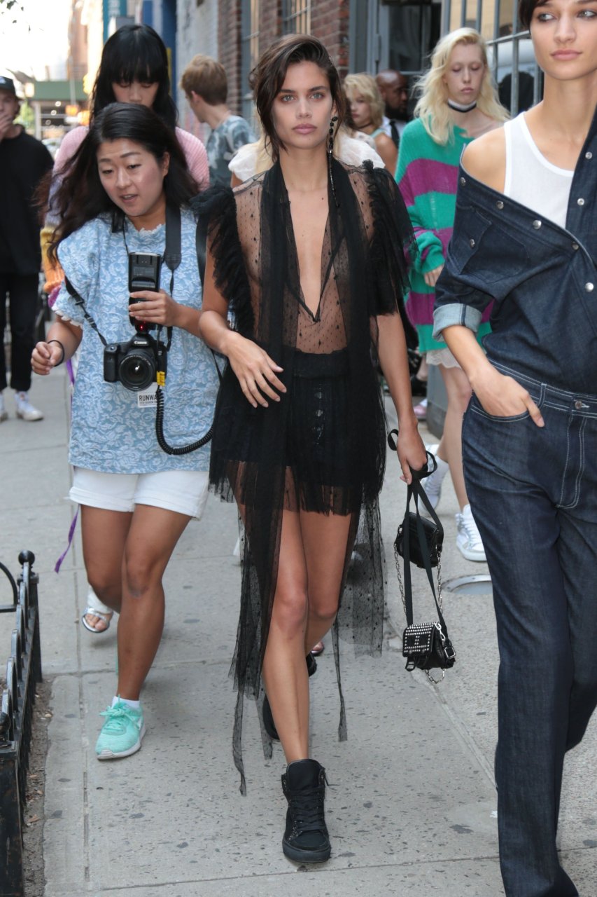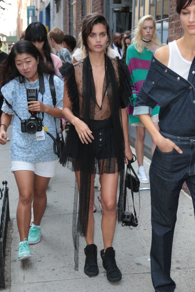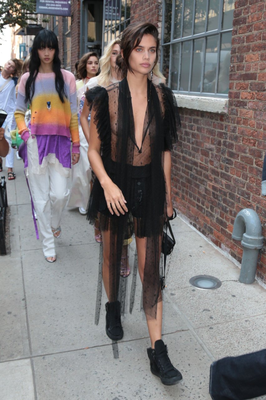 Le mannequin Sara Sampaio porte une robe noire transparente au défilé Zadig & Voltaire Printemps/Été 2018 lors de la Fashion Week de New York, 11/09/2017.