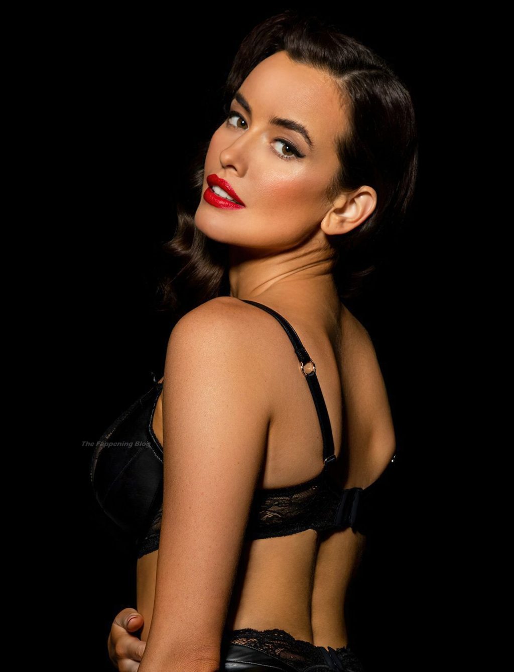 Le mannequin Sarah Stephens affiche sa silhouette élégante en posant en lingerie noire lors d’une séance photo promotionnelle pour Honey Birdette (2021).