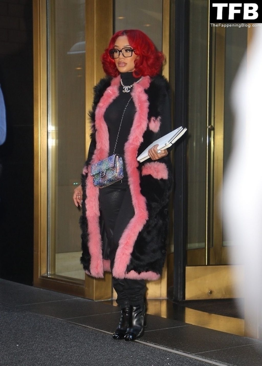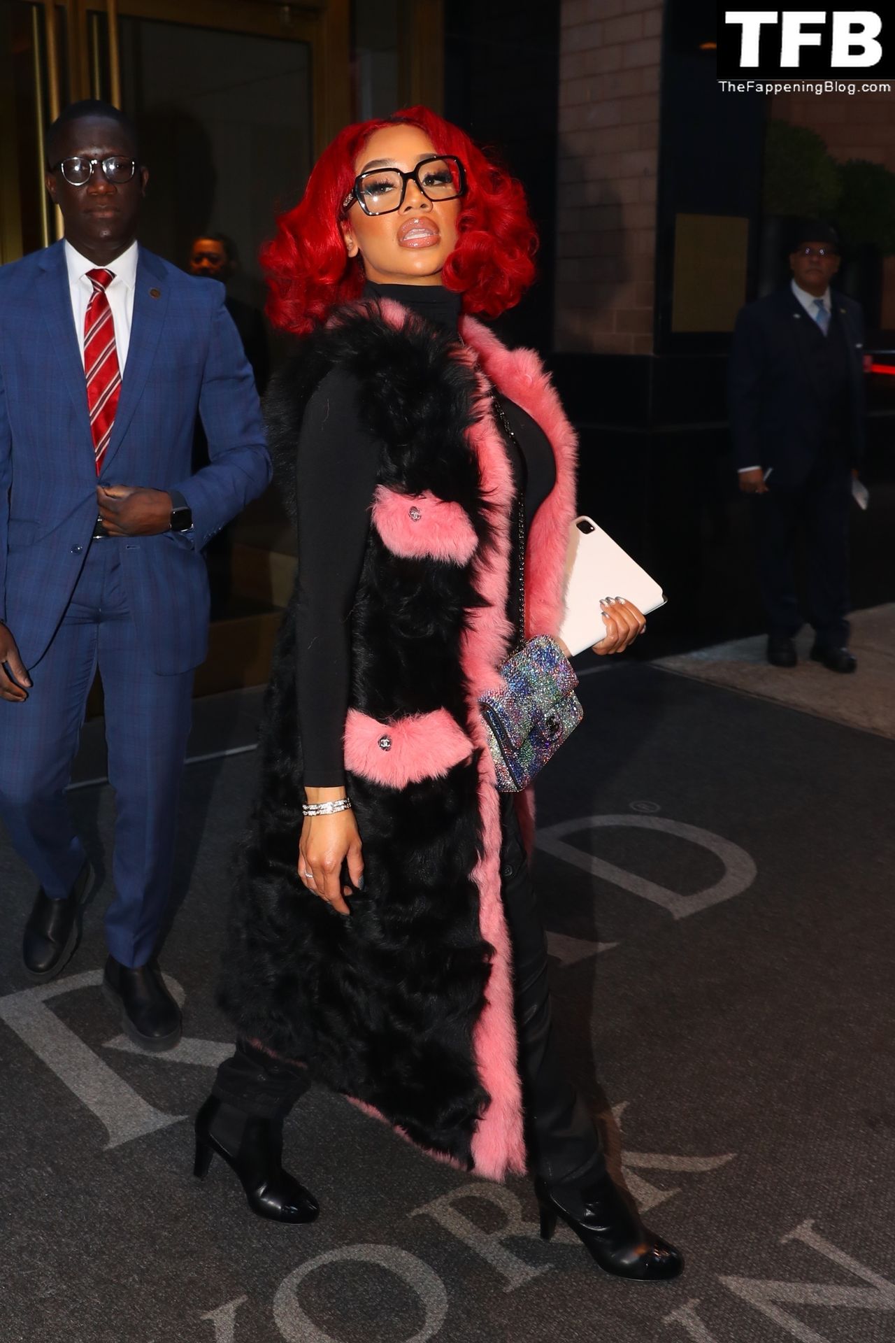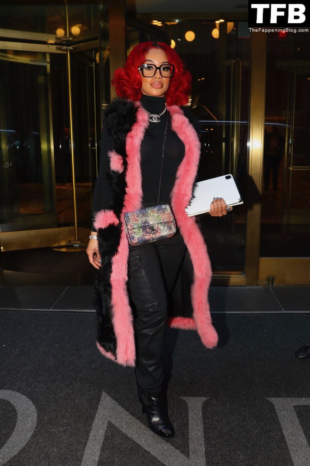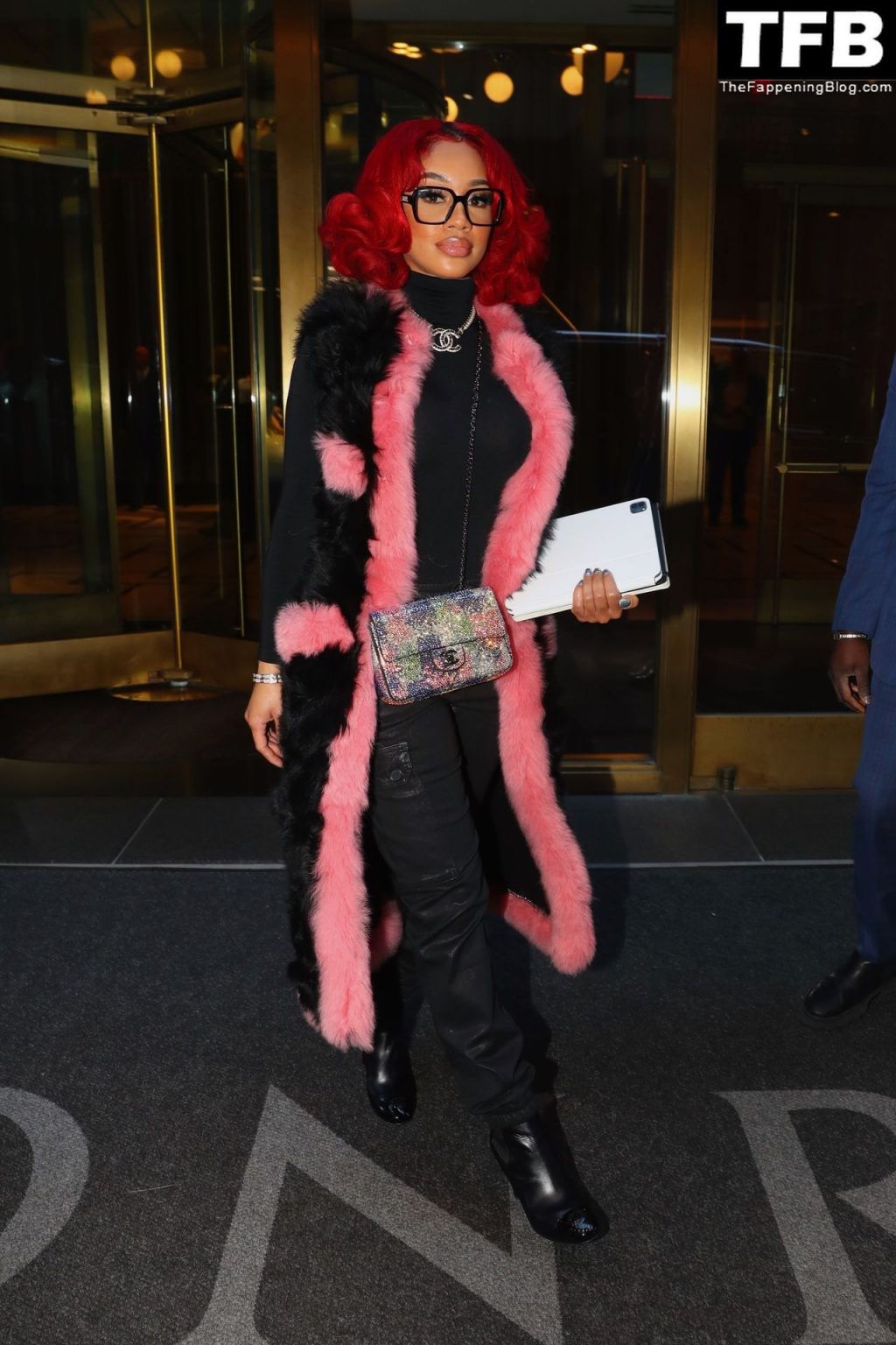 Le rappeur Saweetie est vu quittant son hôtel alors qu’elle se dirige vers NBC pour les répétitions de SNL à New York, le 18/11/2021.