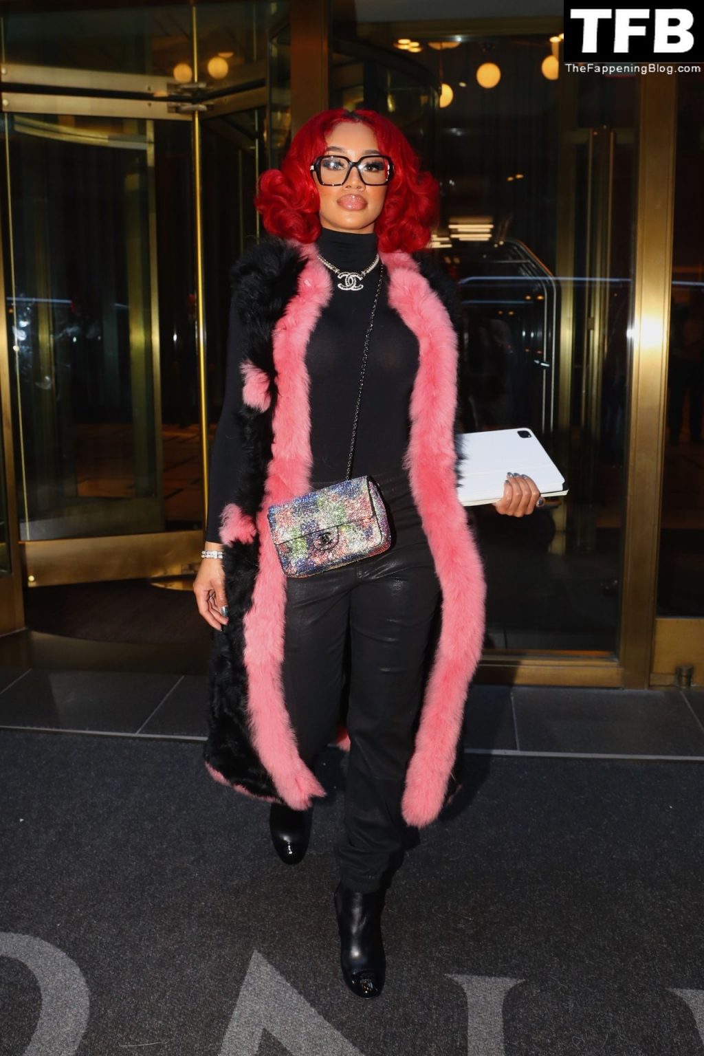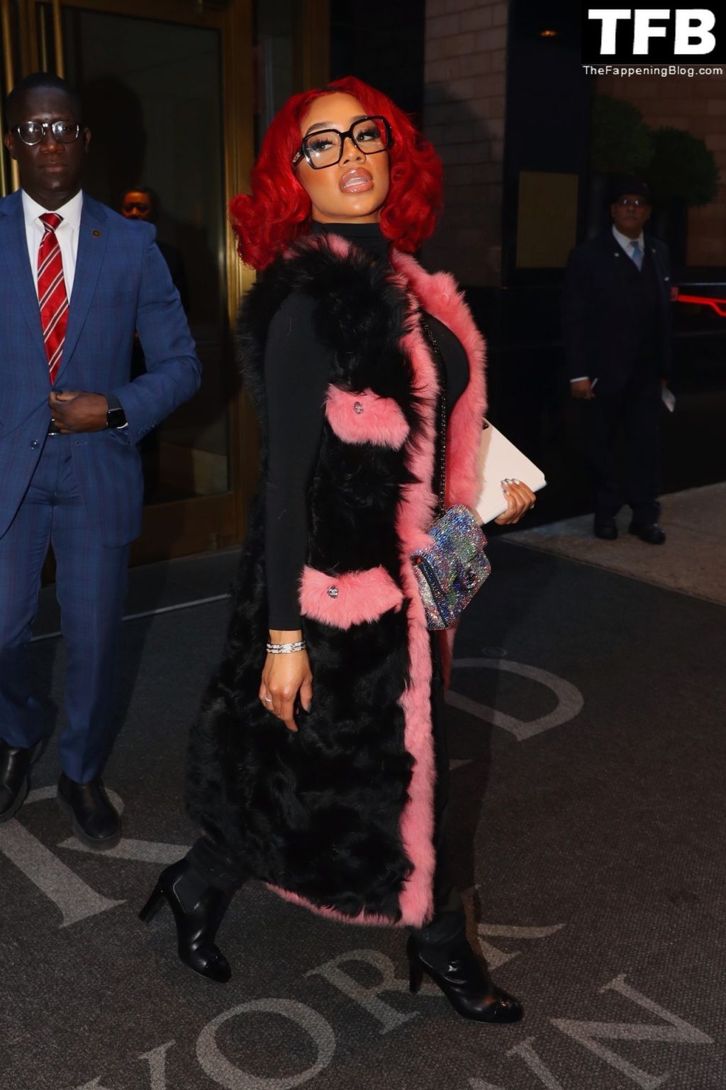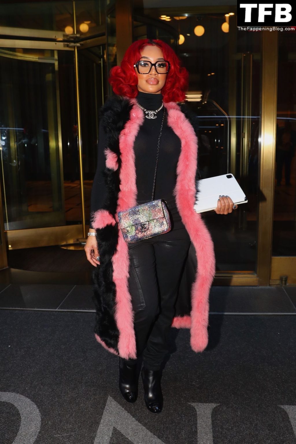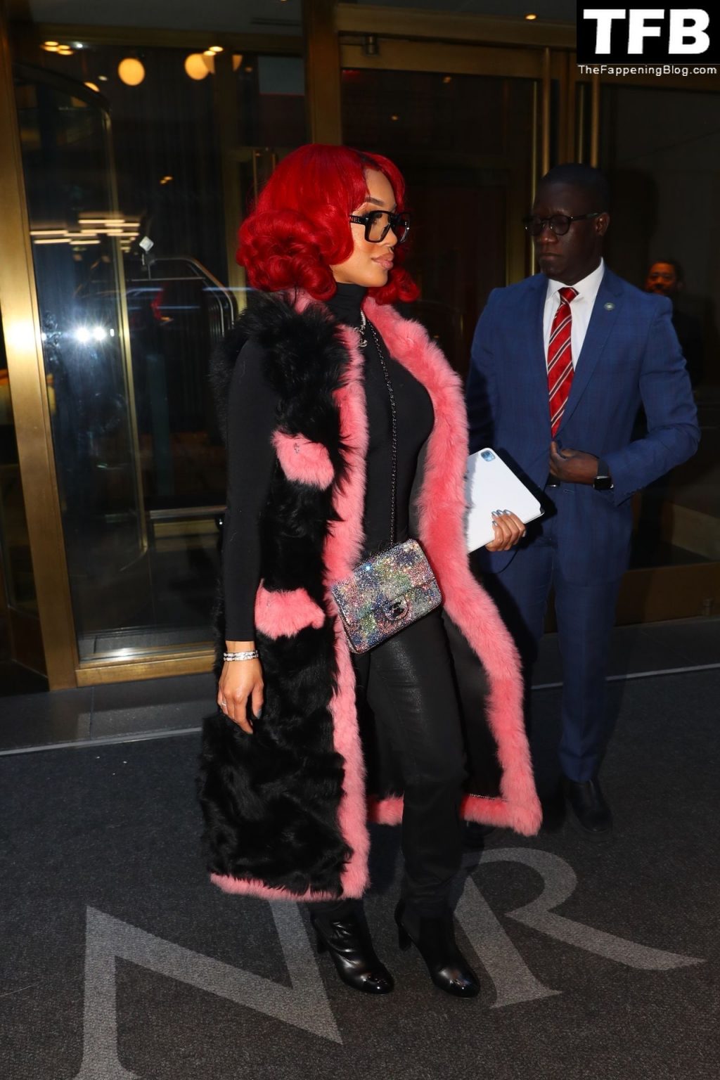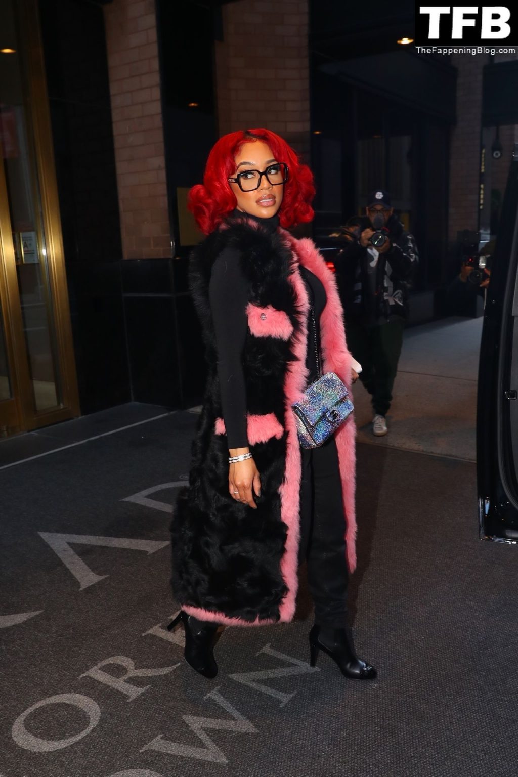 Le rappeur Saweetie est vu quittant son hôtel alors qu’elle se dirige vers NBC pour les répétitions de SNL à New York, le 18/11/2021.