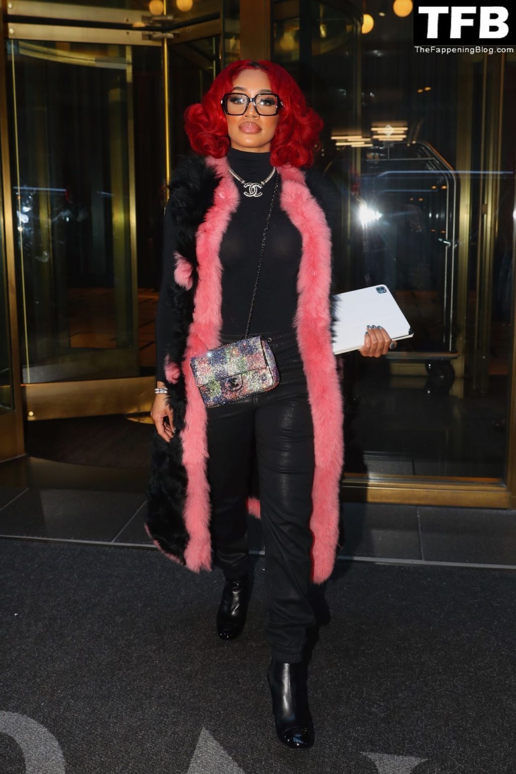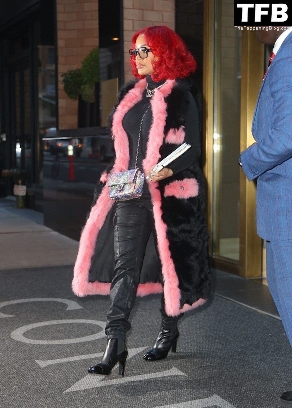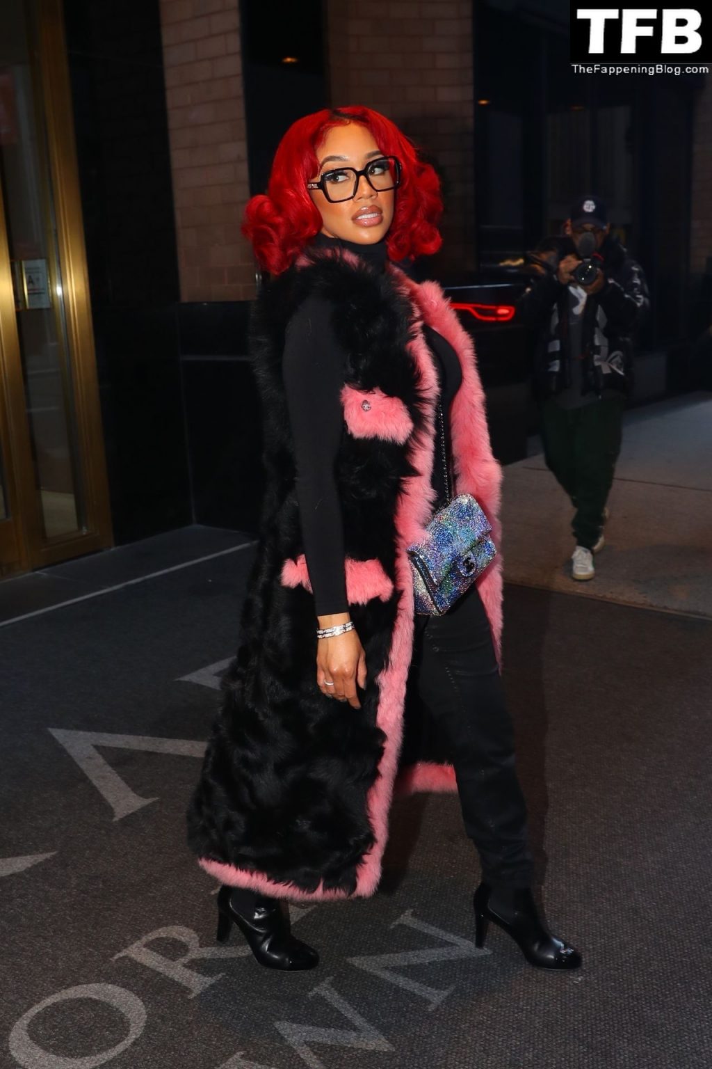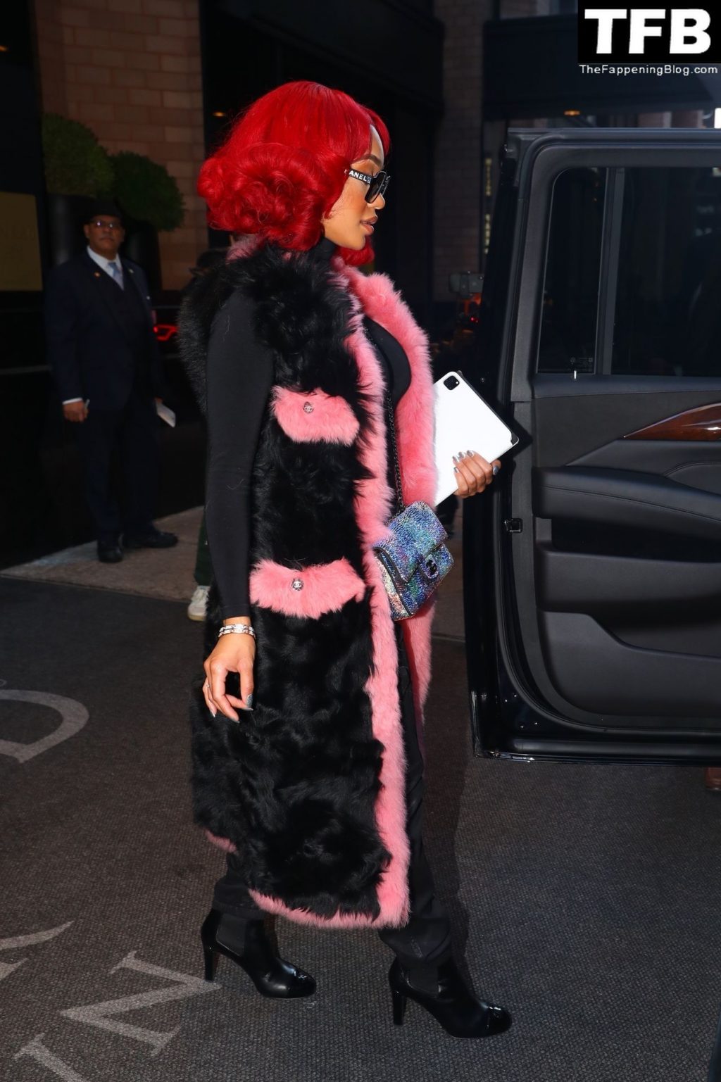 Le rappeur Saweetie est vu quittant son hôtel alors qu’elle se dirige vers NBC pour les répétitions de SNL à New York, le 18/11/2021.