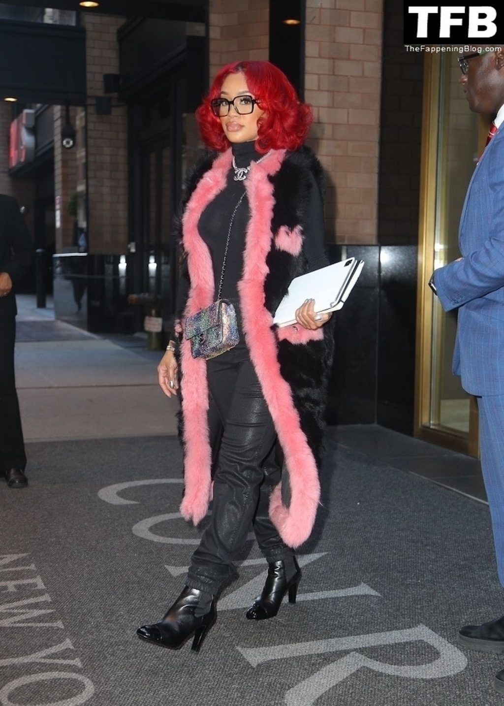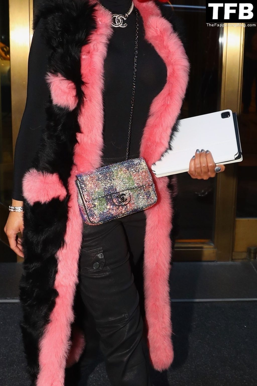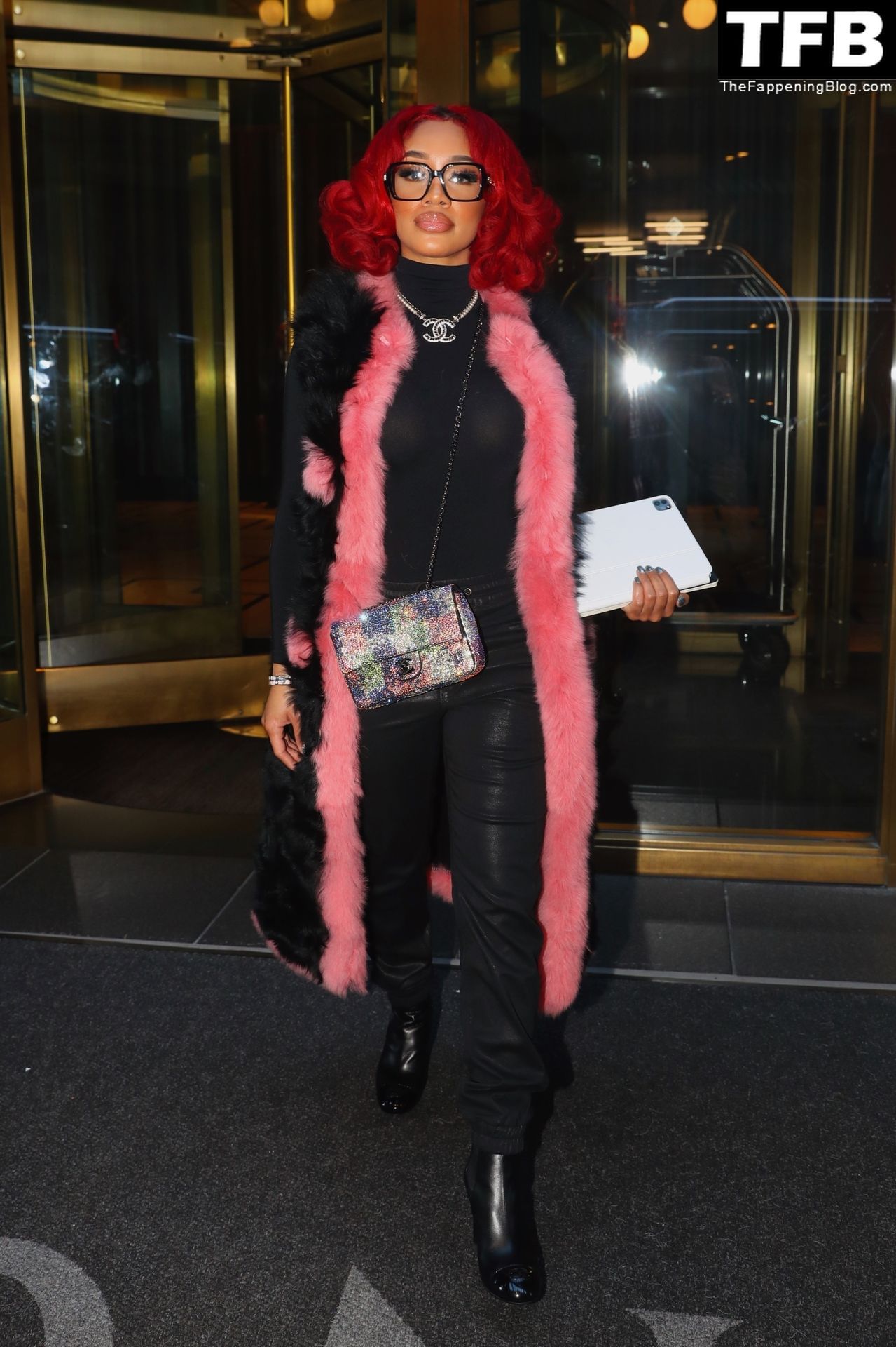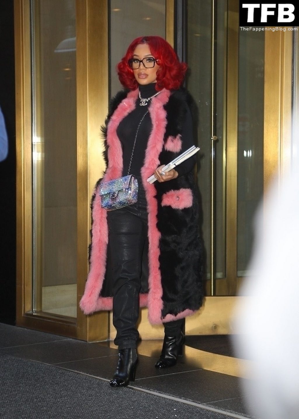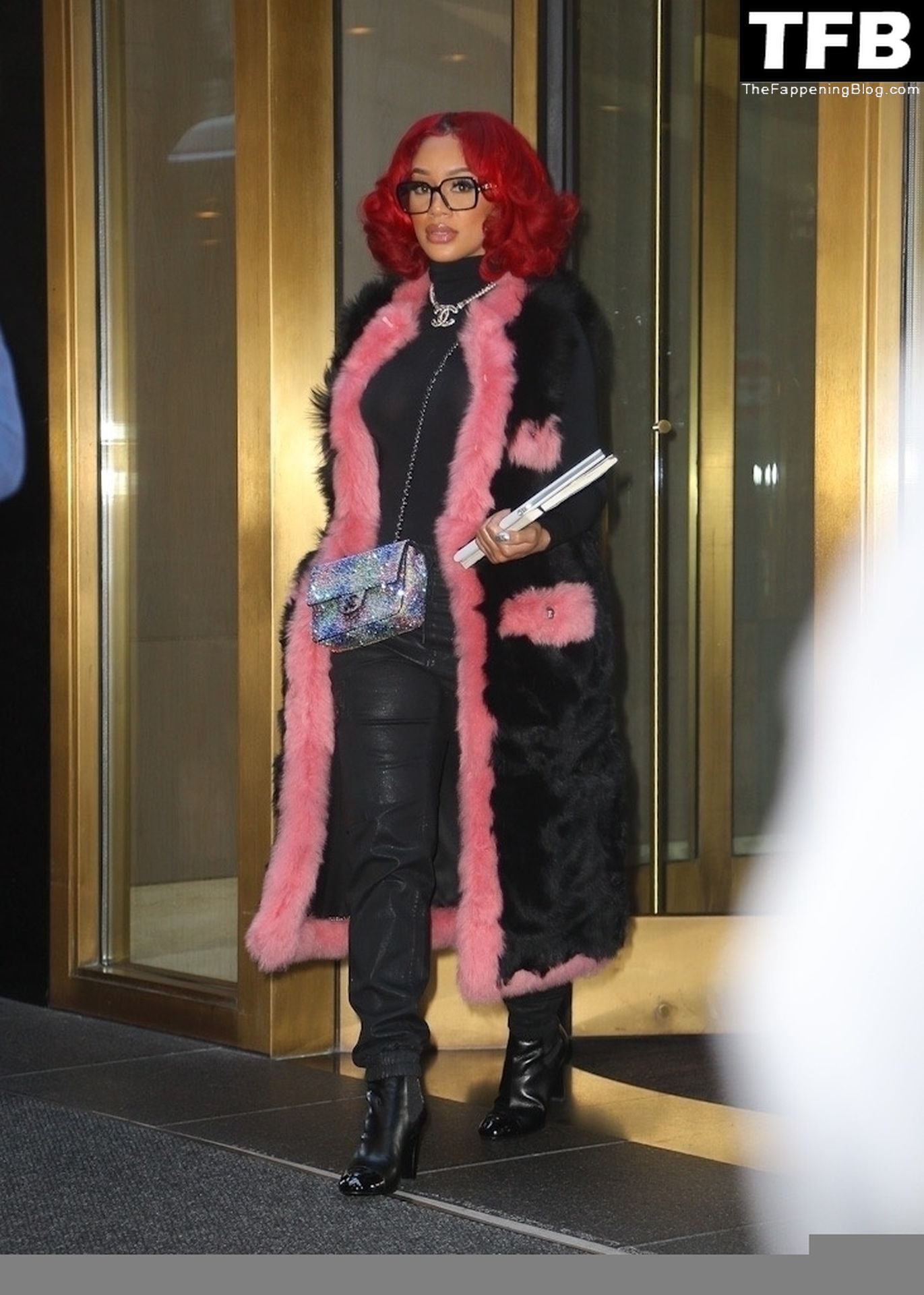 Le rappeur Saweetie est vu quittant son hôtel alors qu’elle se dirige vers NBC pour les répétitions de SNL à New York, le 18/11/2021.