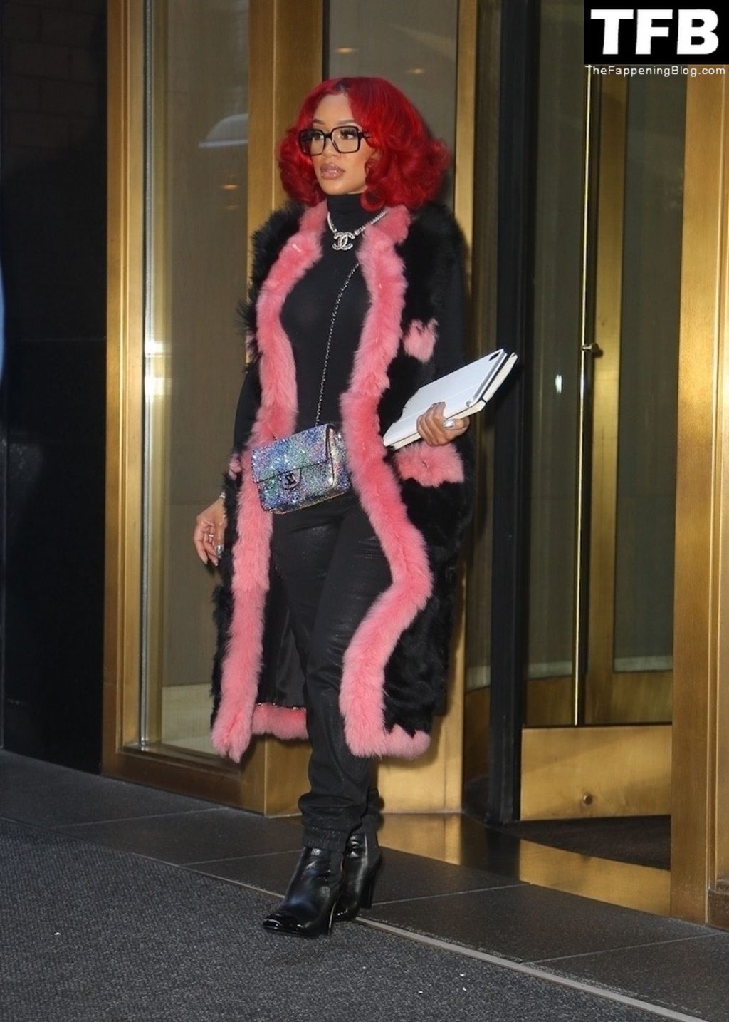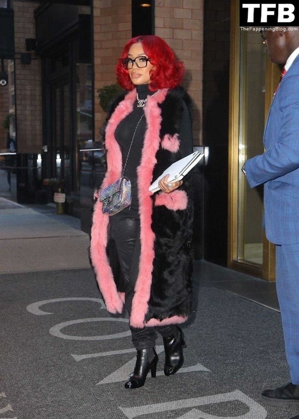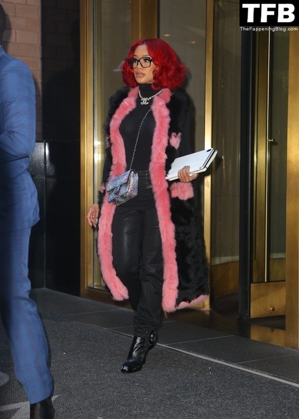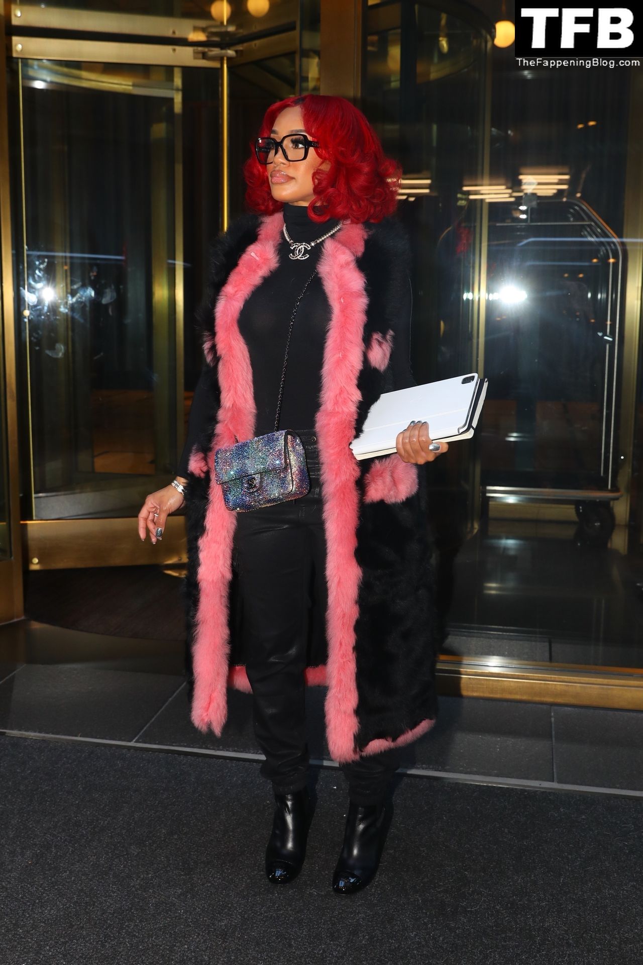 Le rappeur Saweetie est vu quittant son hôtel alors qu’elle se dirige vers NBC pour les répétitions de SNL à New York, le 18/11/2021.